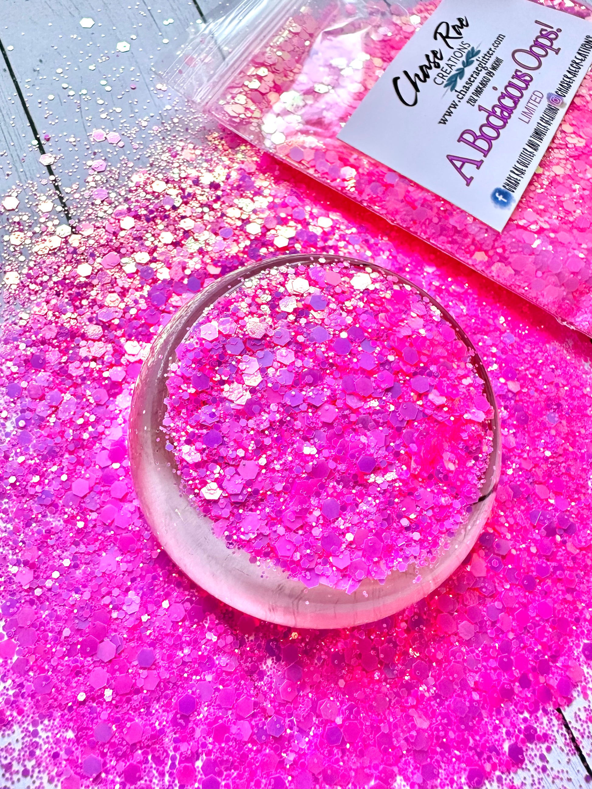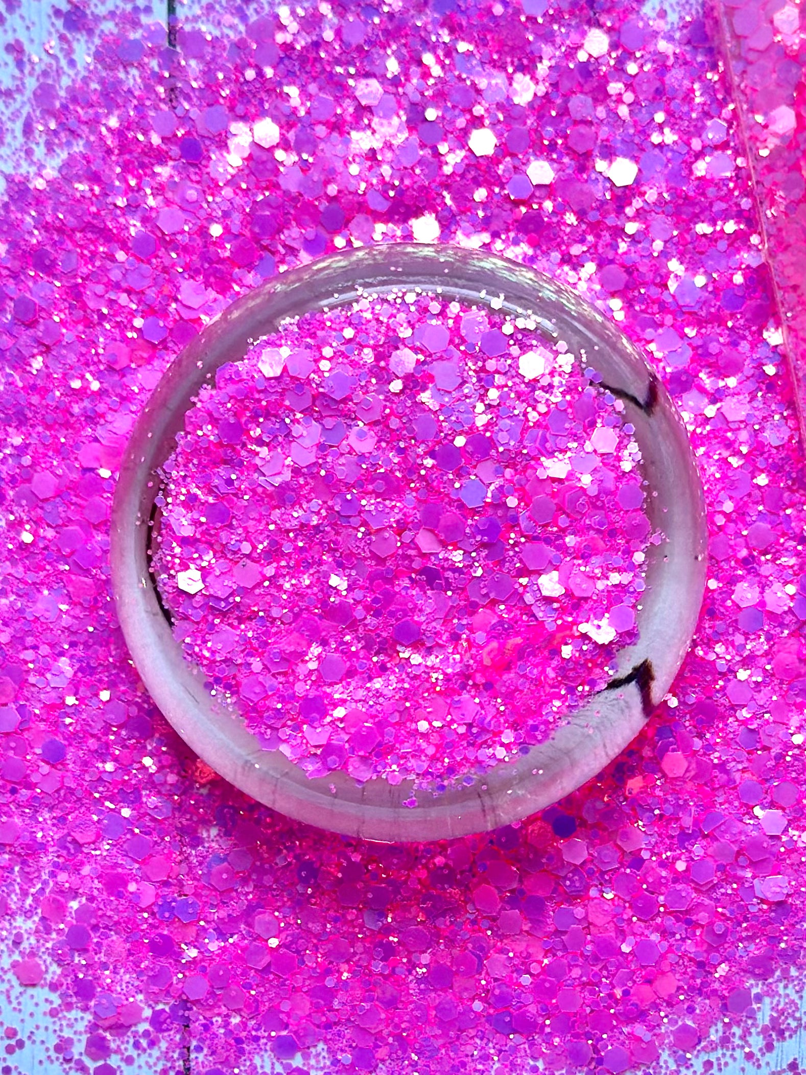 Bodacious is an amazing iridescent pink. A Bright and fun neon glitter!