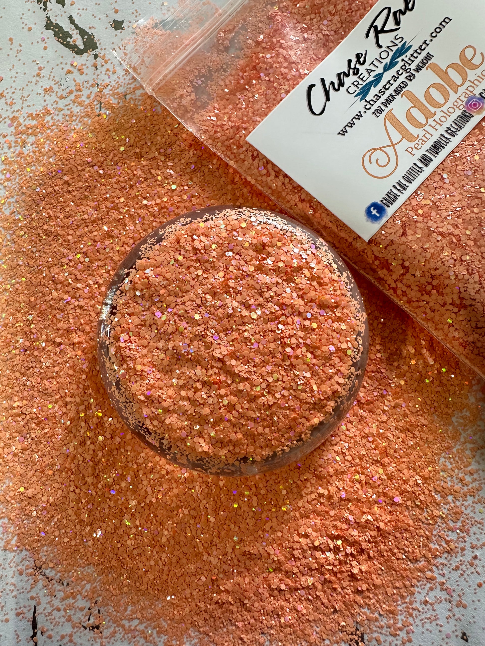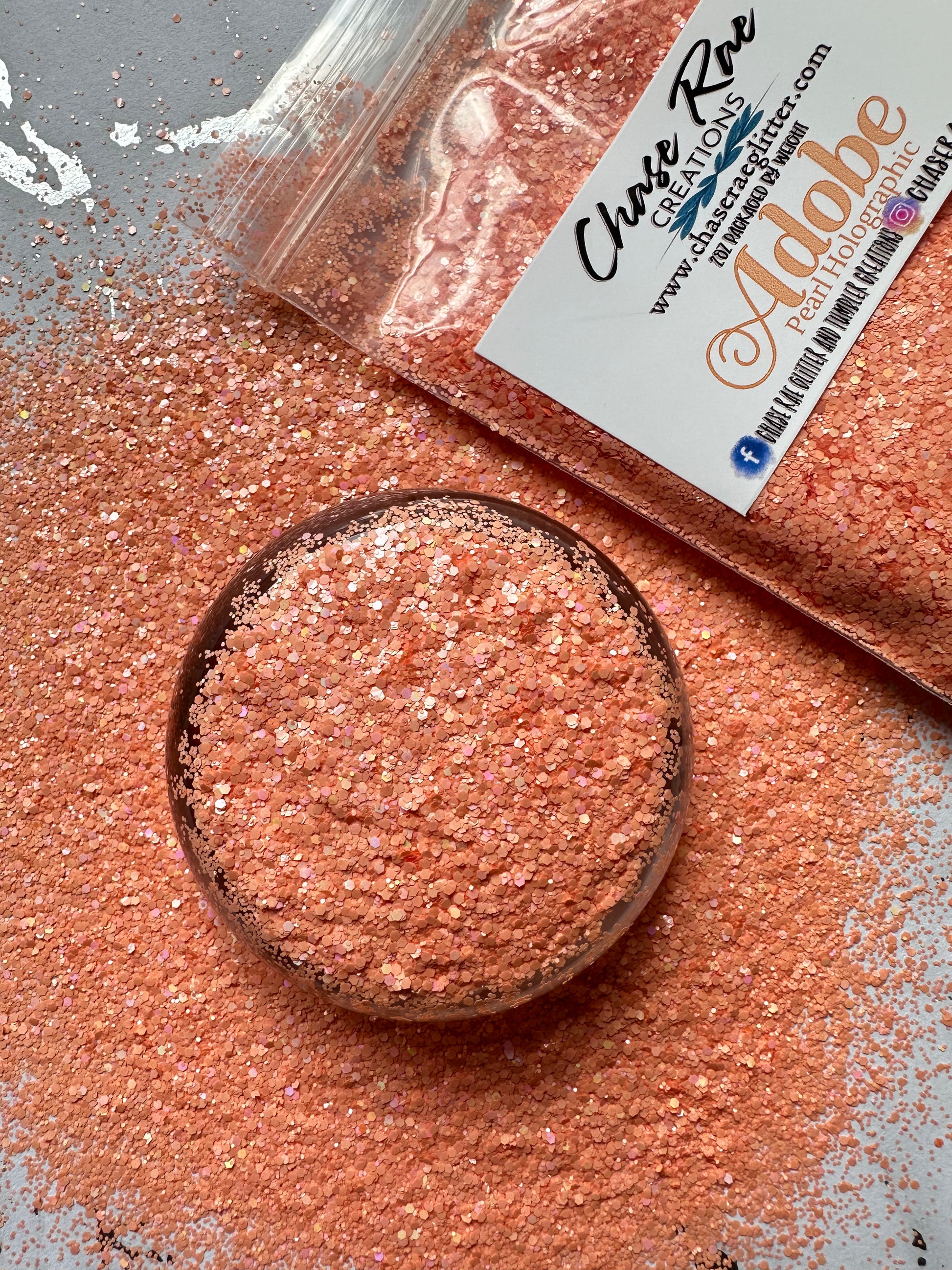 Adobe is a beautiful, holographic pearl glitter. Completely opaque with no translucency.