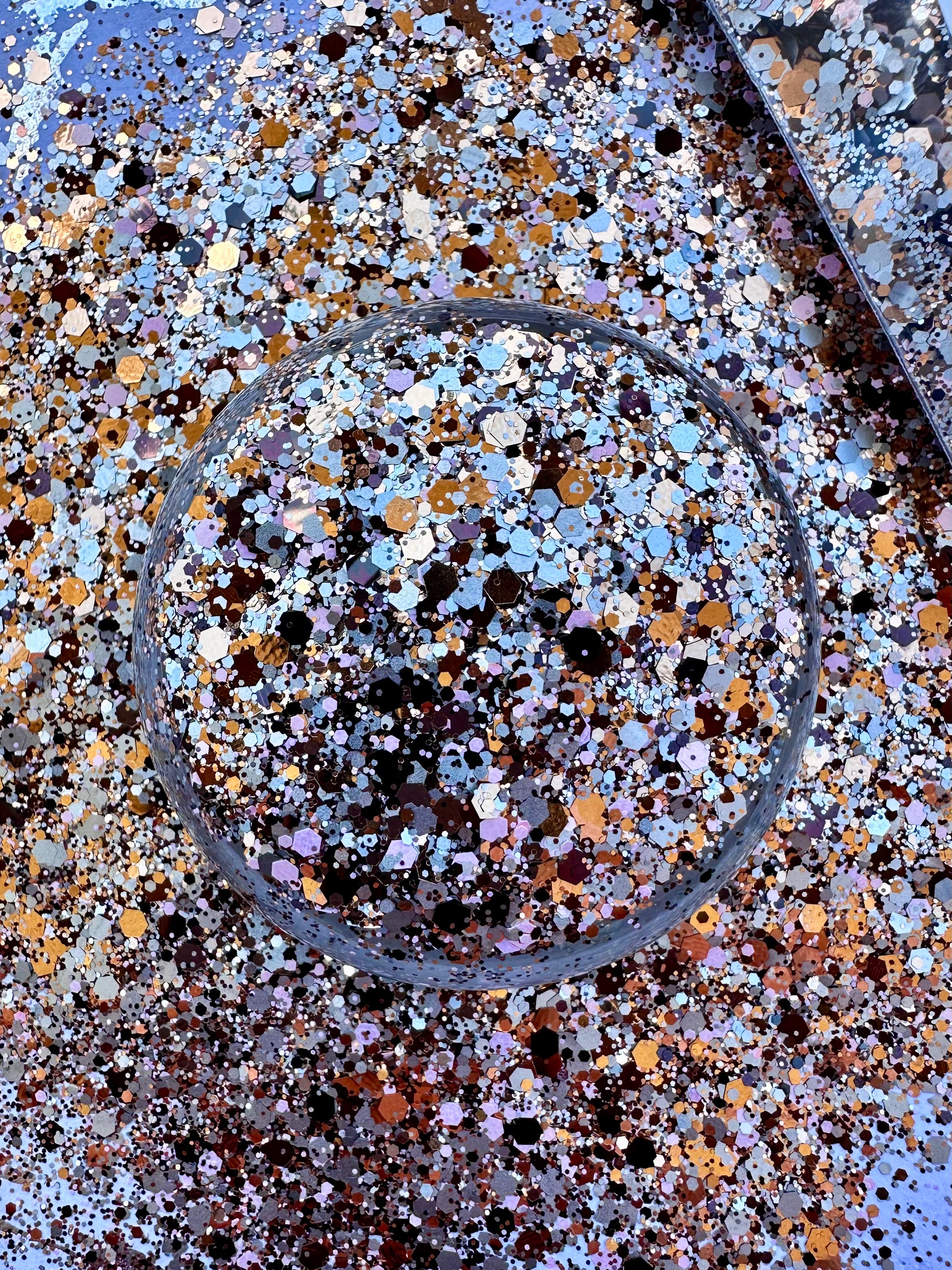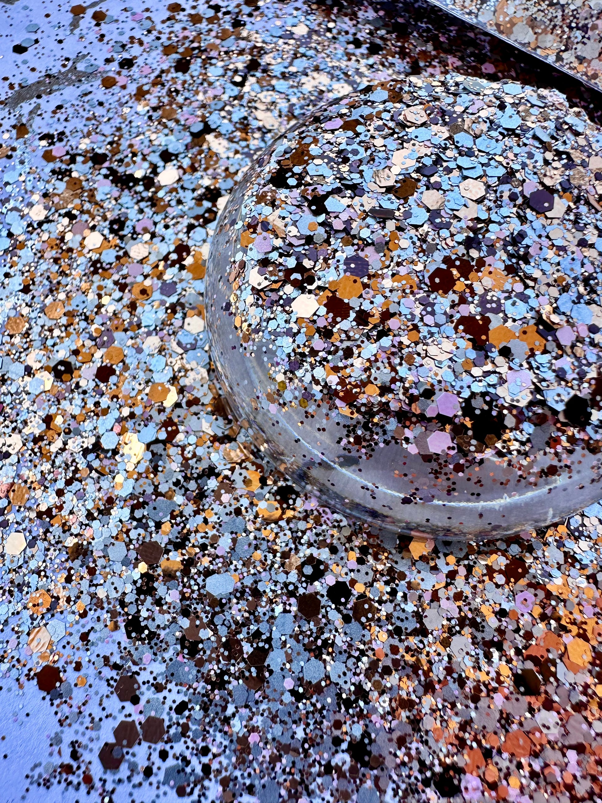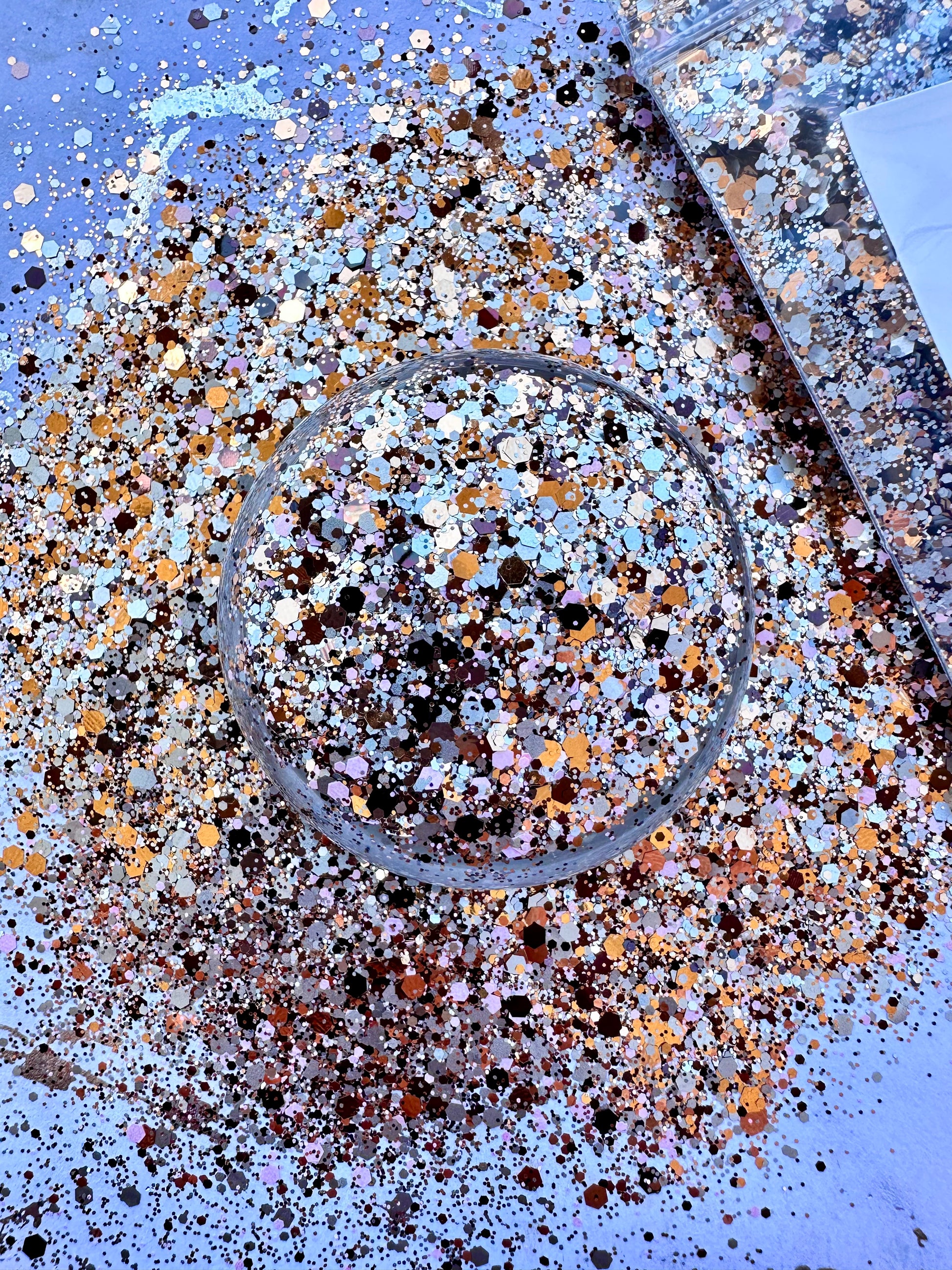 Farm House is a beautiful chunky mixed glitter with golden brown, dark brown, silver, and soft pink.