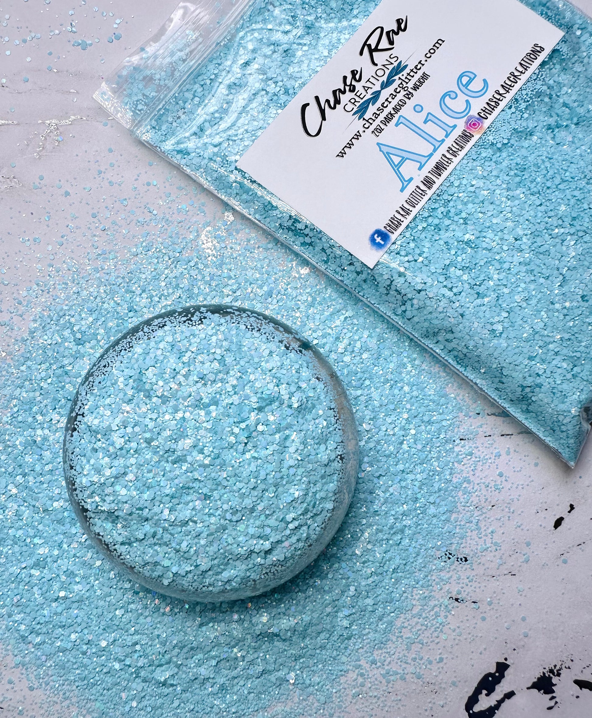 Alice is a beautiful, holographic pearl glitter. Completely opaque with no translucency.