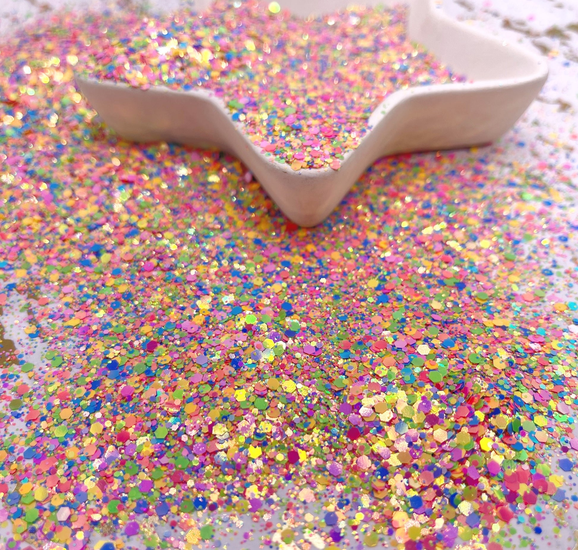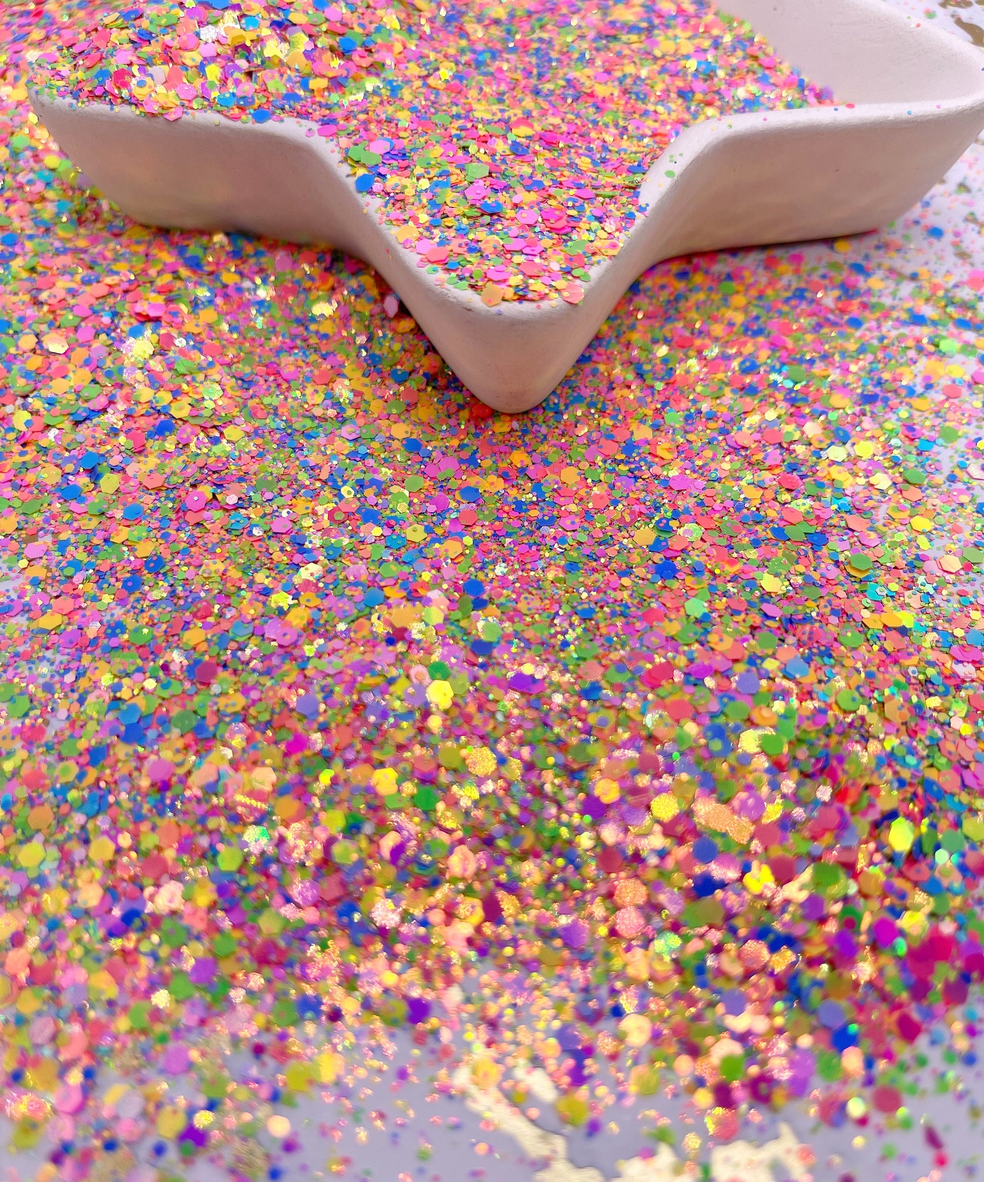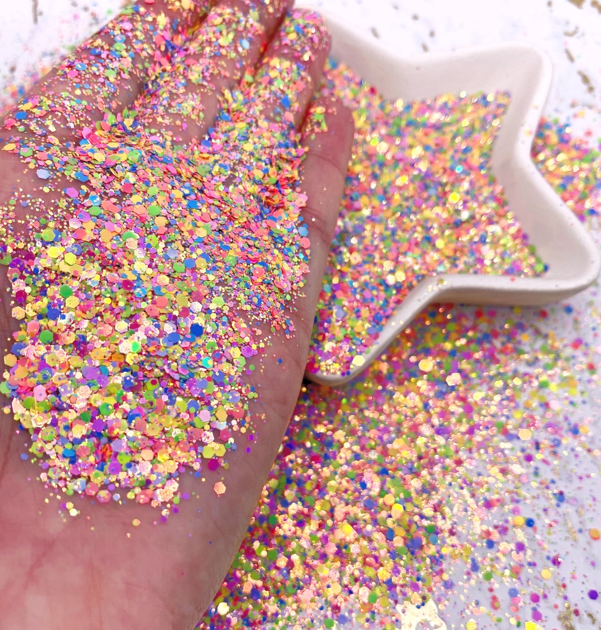 All That is a pretty radical glitter mix! Bright neon and iridescent pieces make this mix pop!