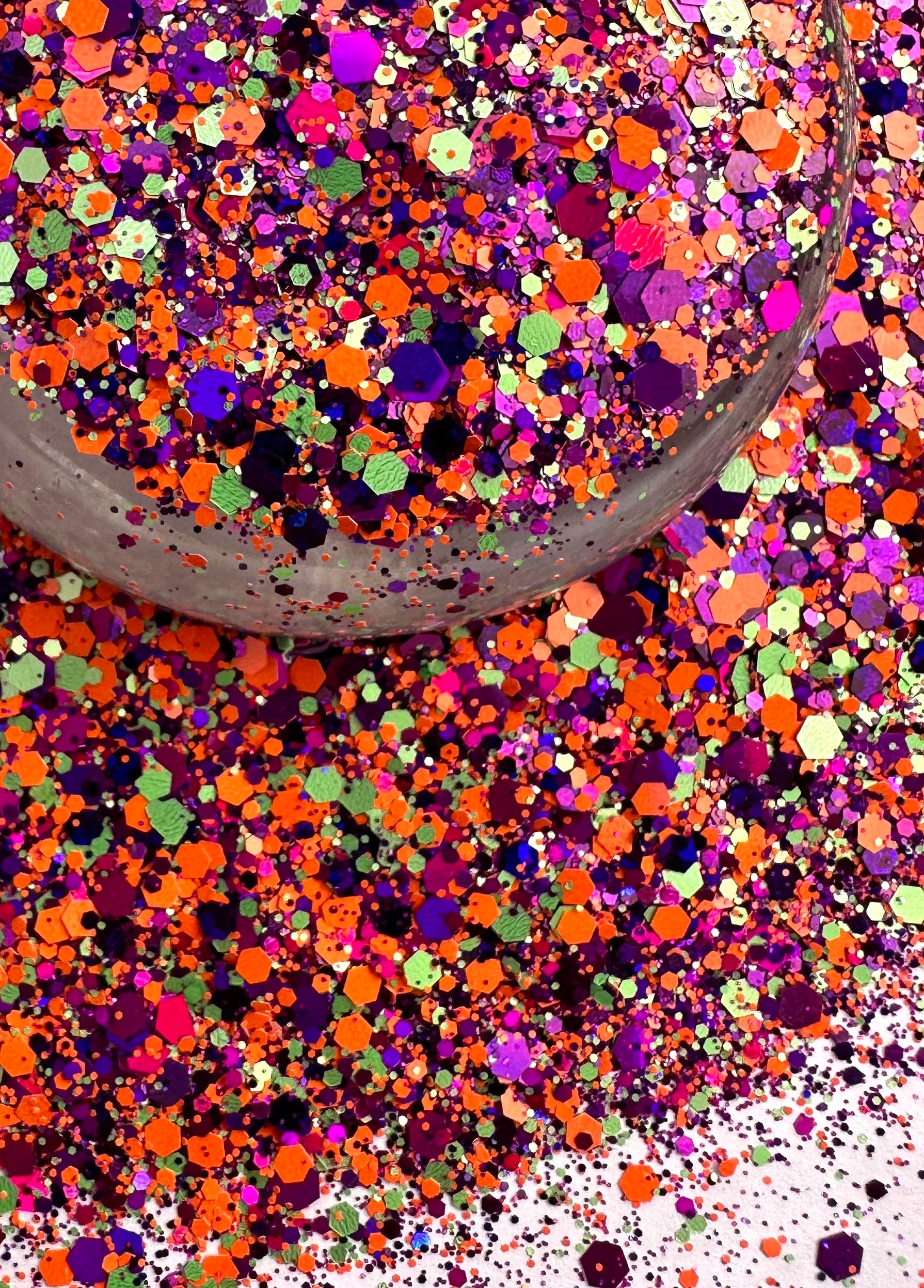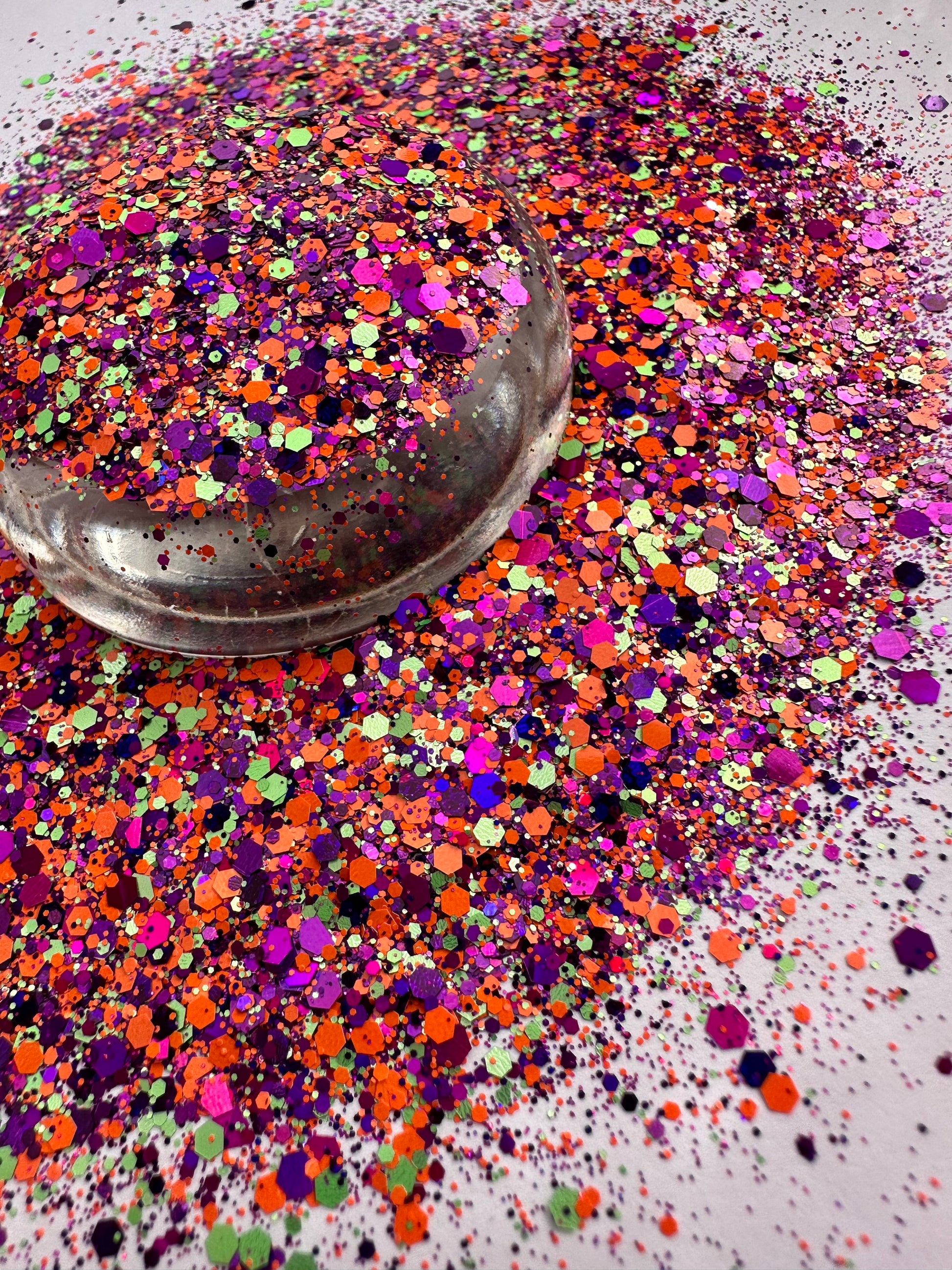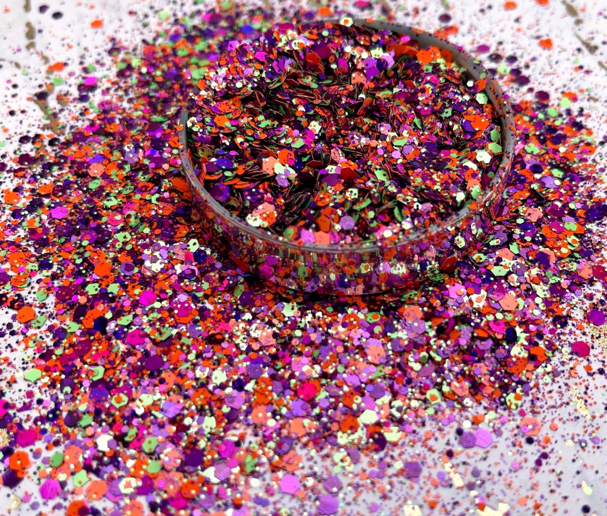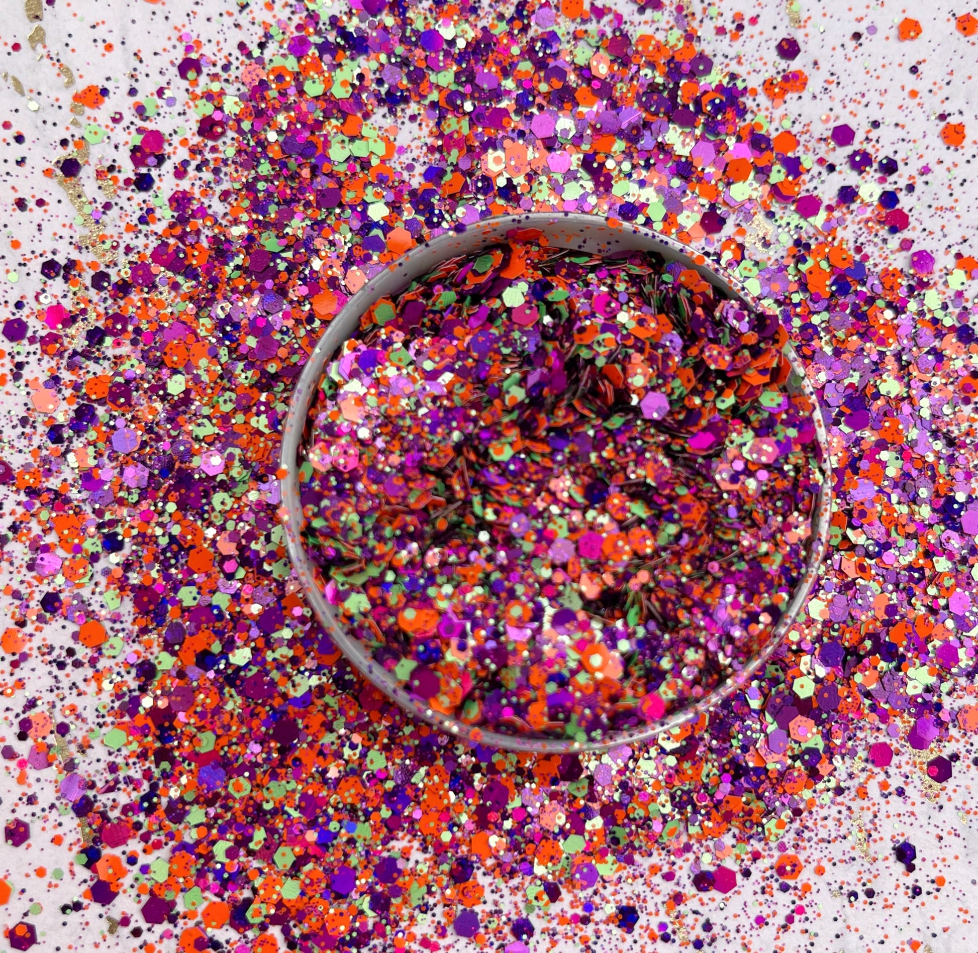 Amuck will be your new favorite Halloween glitter mix! With orange, green, pink and purple pieces, it will make any craft pop!