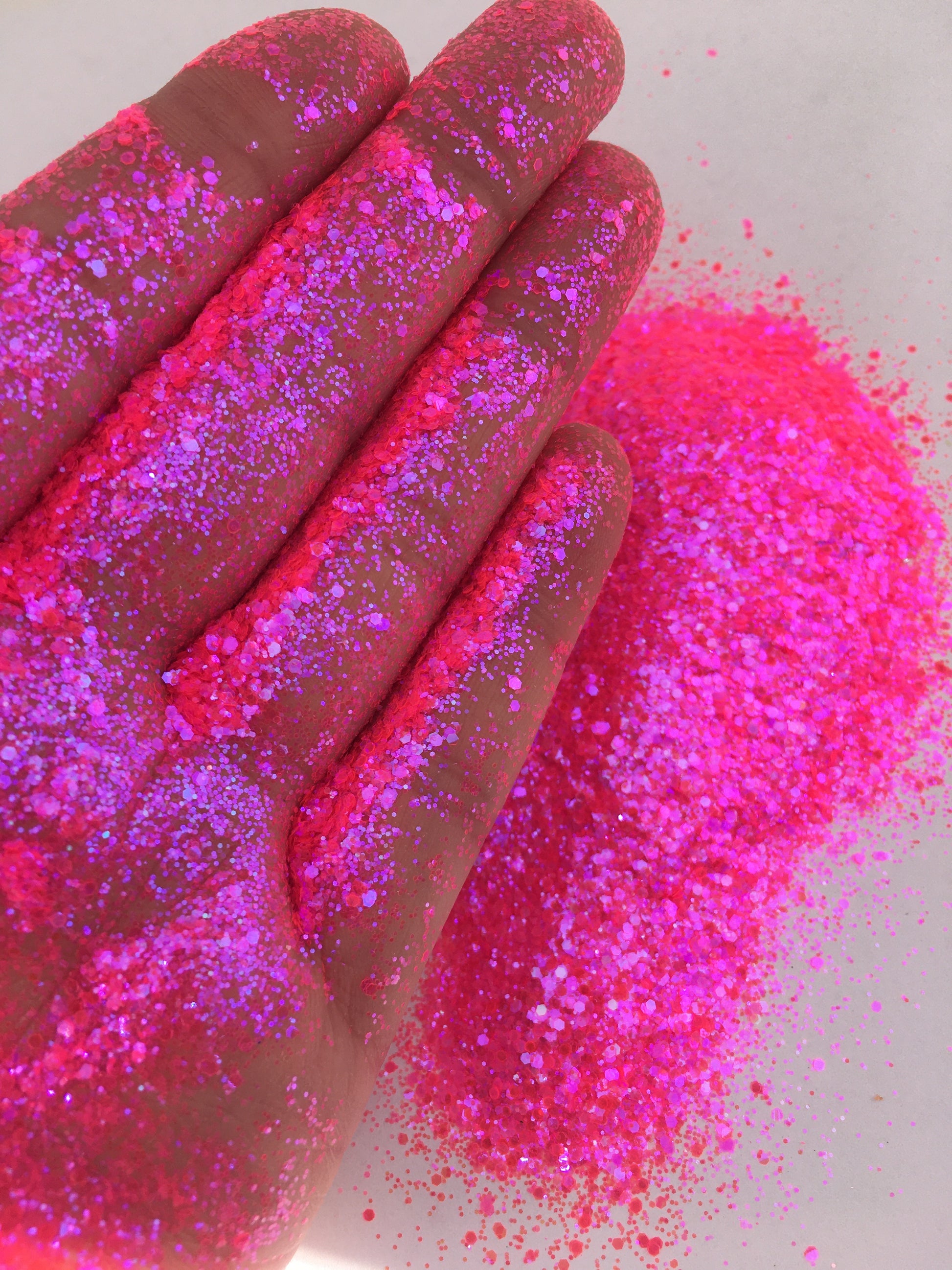 As If is a hot pink, semi-translucent glitter that shifts to purple over dark bases. She is a stunner!!
