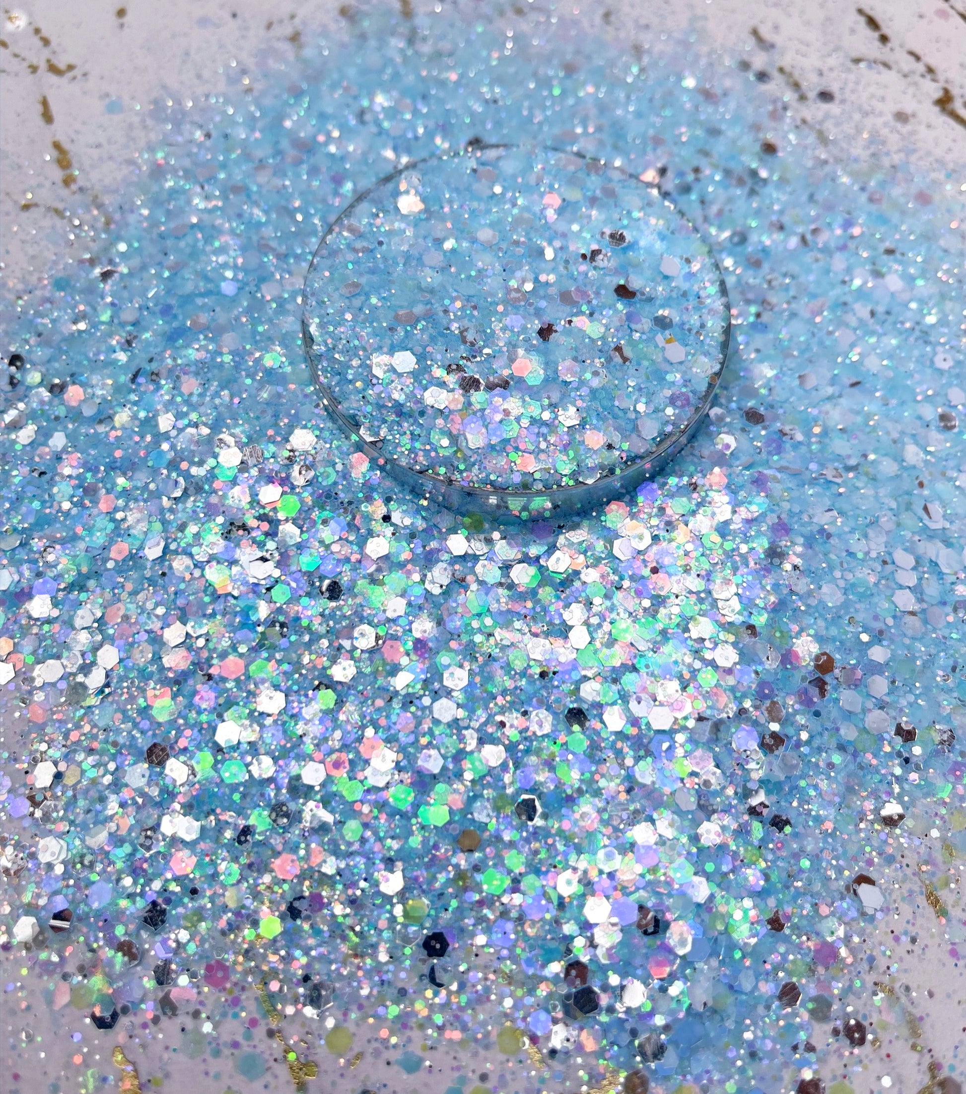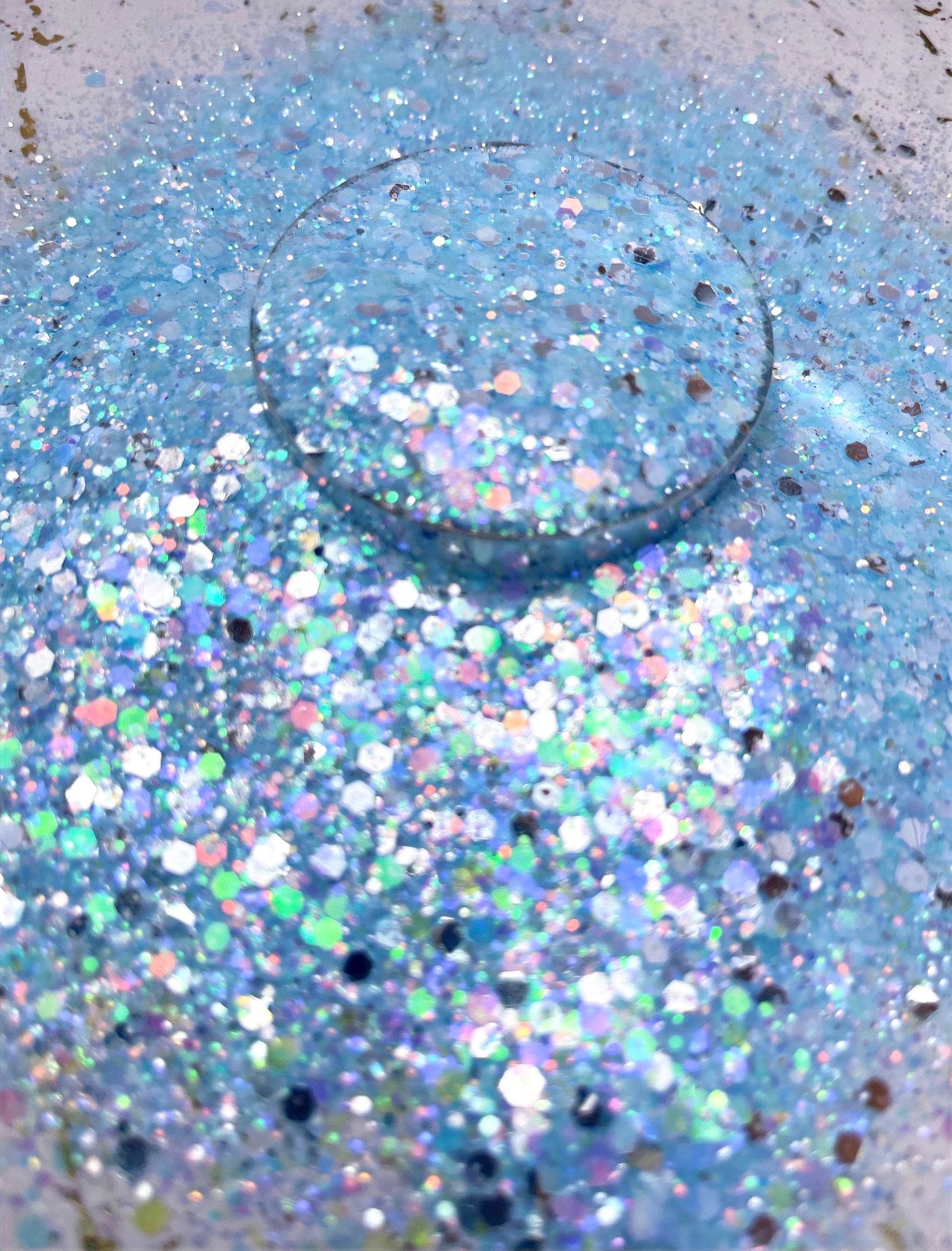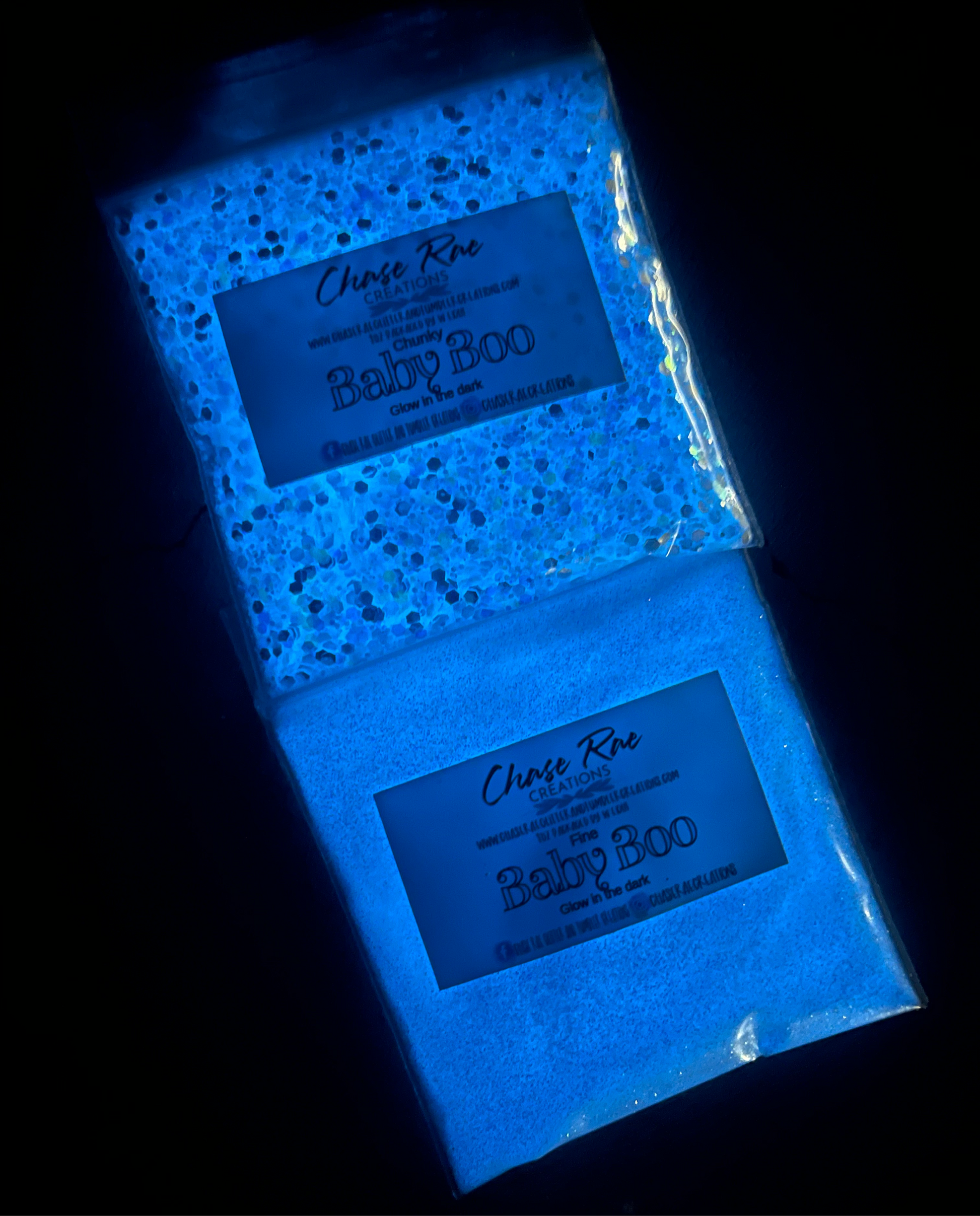 Baby Boo is a gorgeous glow in the dark Chunky mix. High sparkle with semi-translucent and mirror pieces.