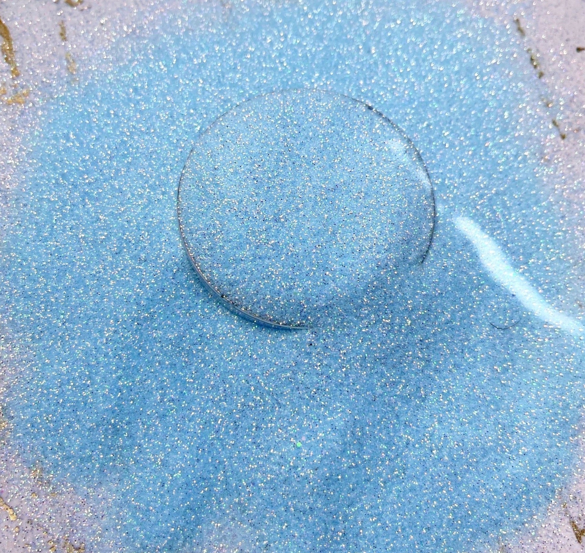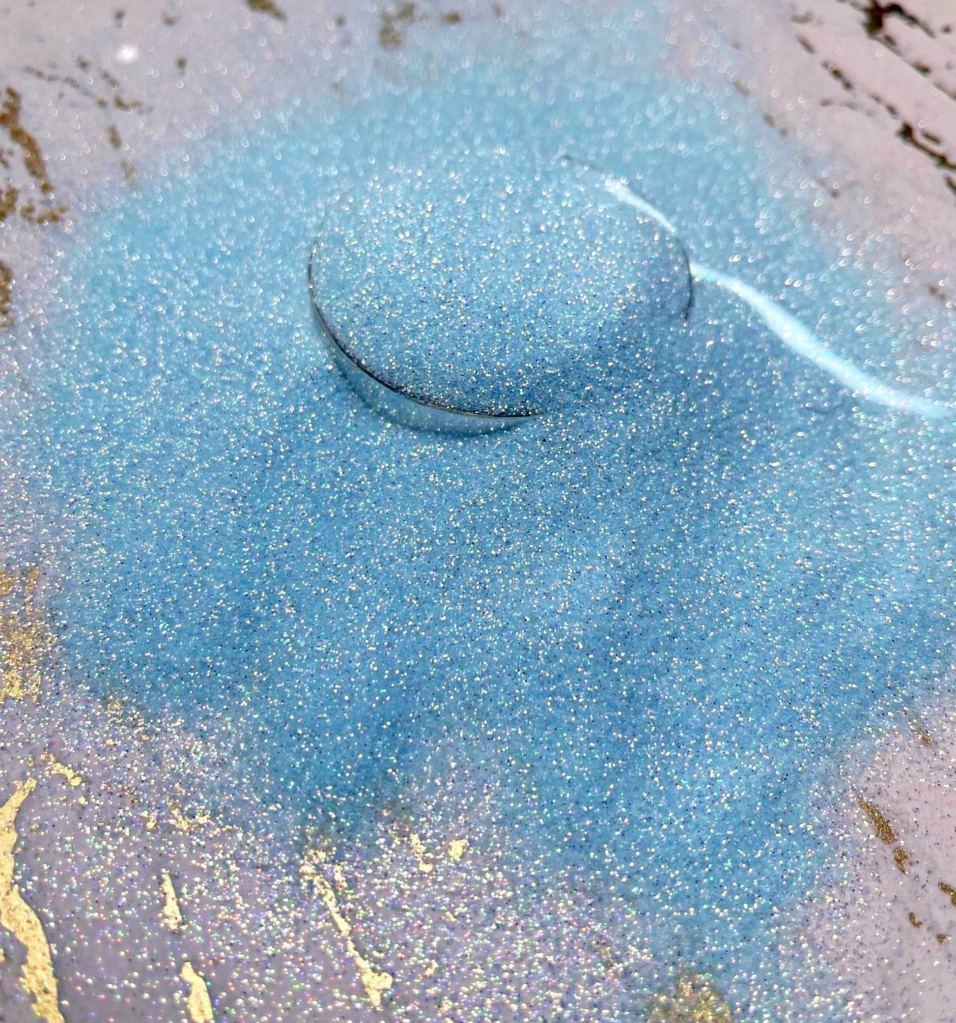 Baby Boo is a beautiful pastel blue glitter that glows in the dark! It also has a rainbow sparkle to it.