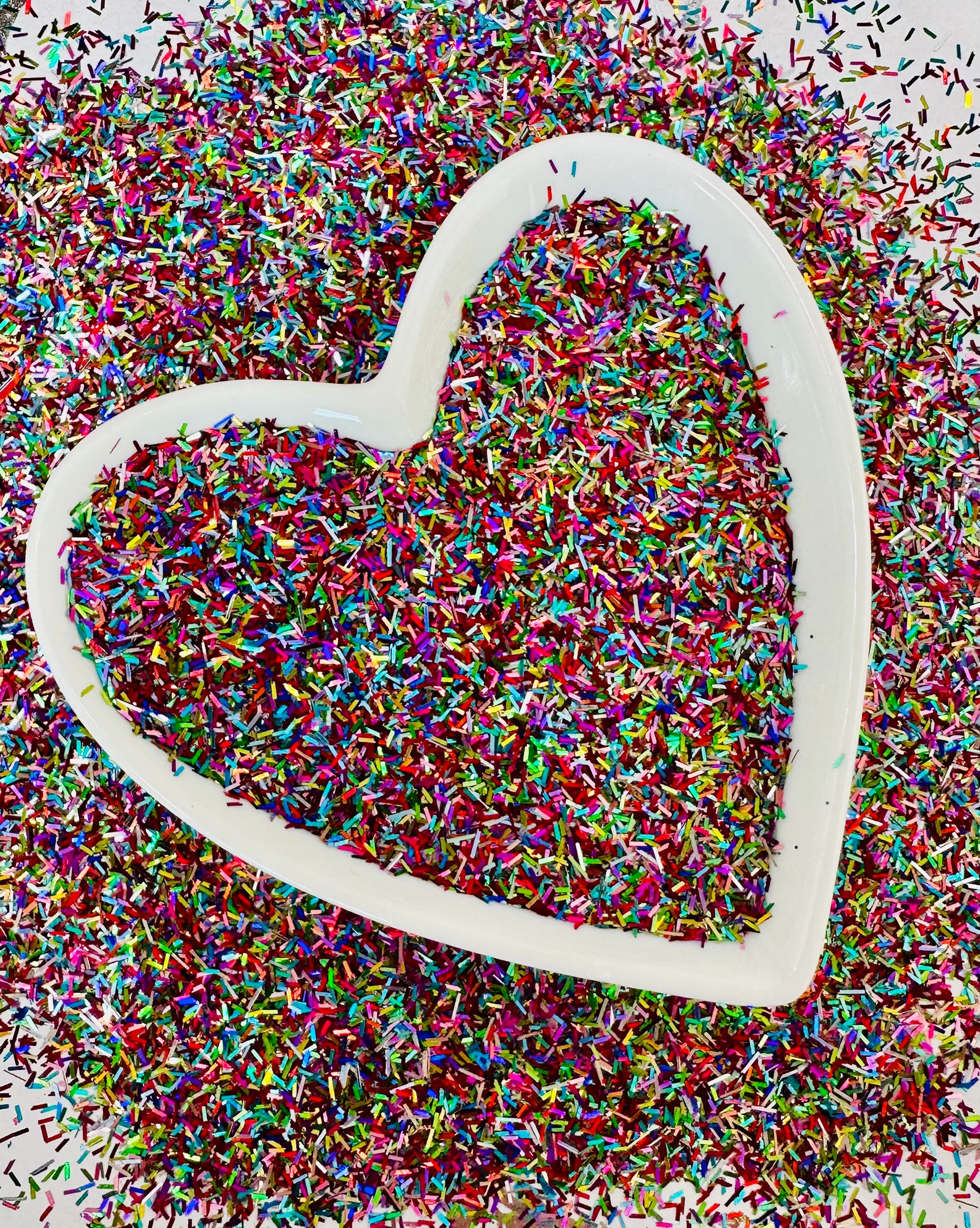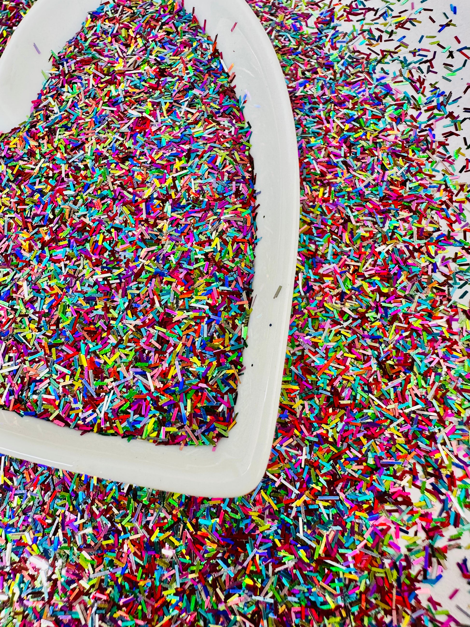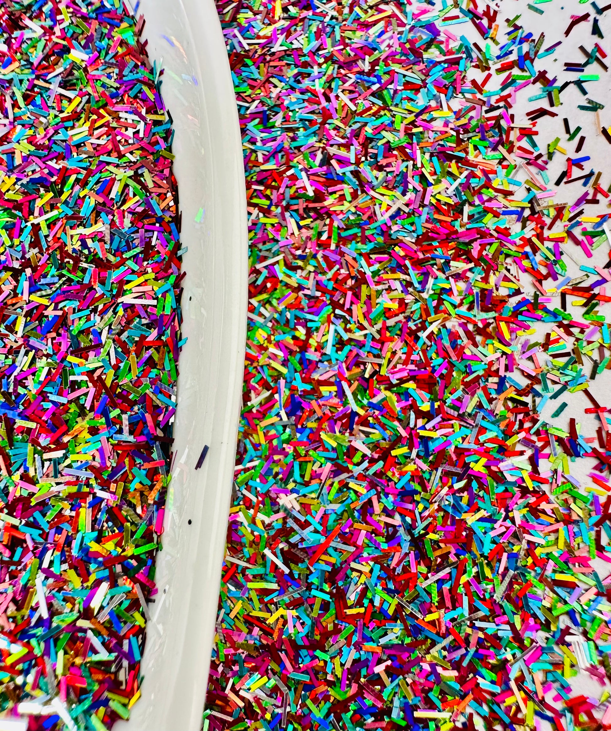Birthday Bash is a fun mix of colors. Confetti/tinsel shaped.