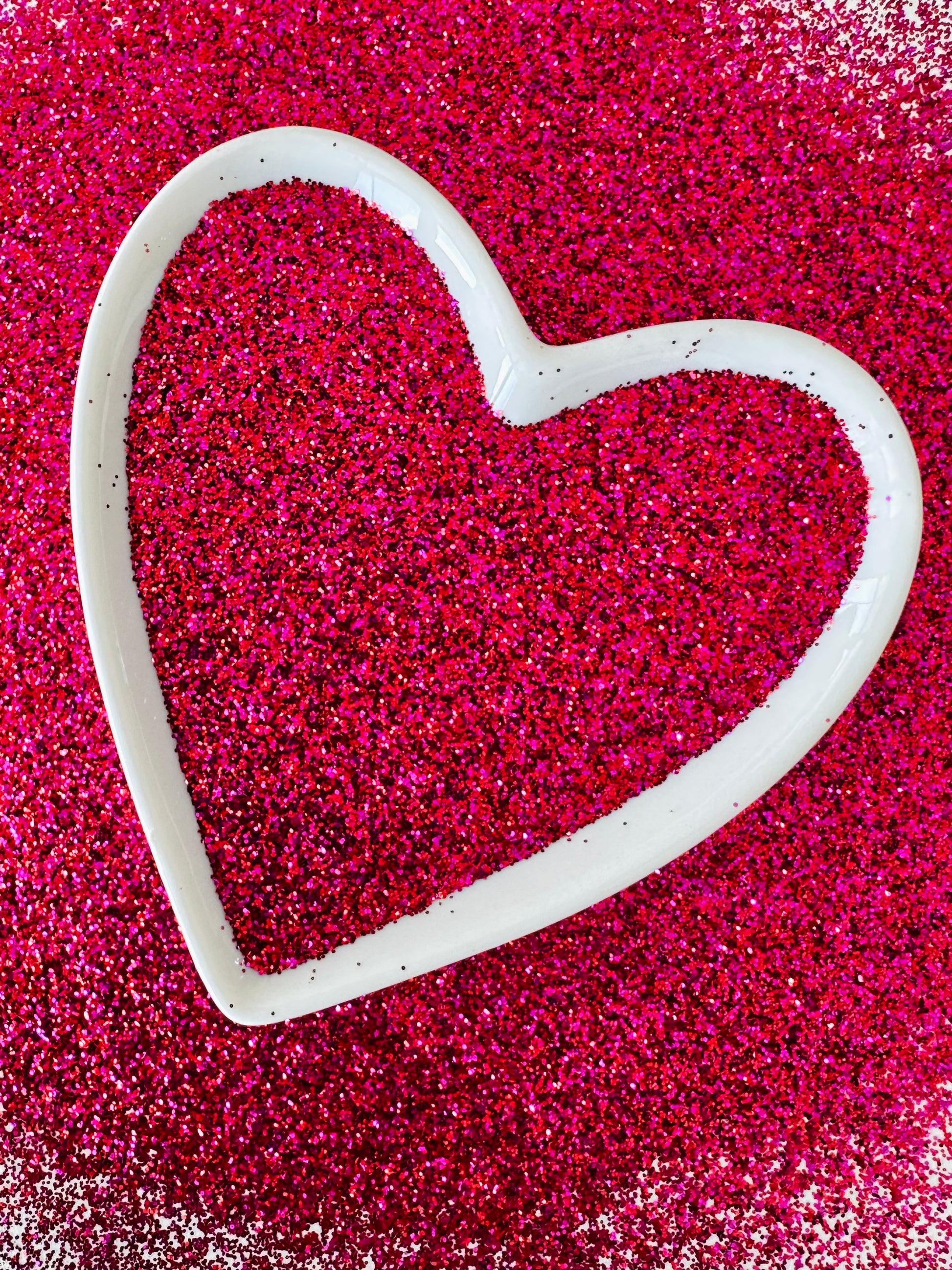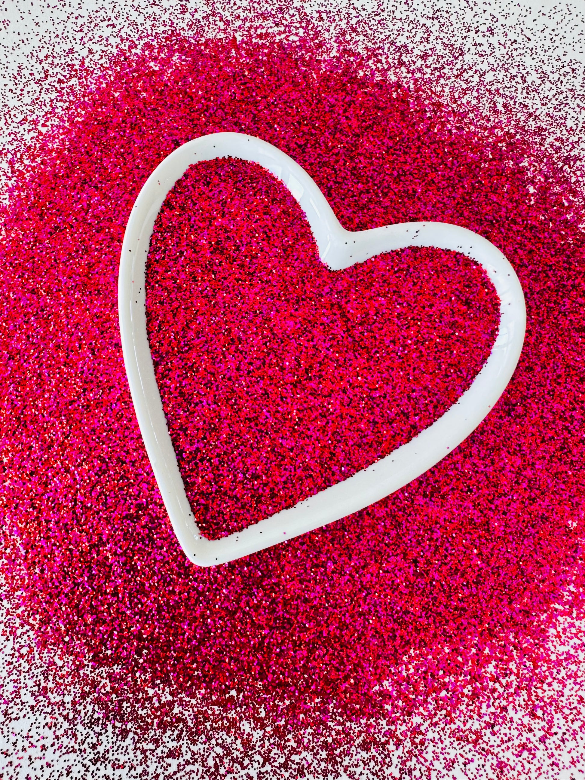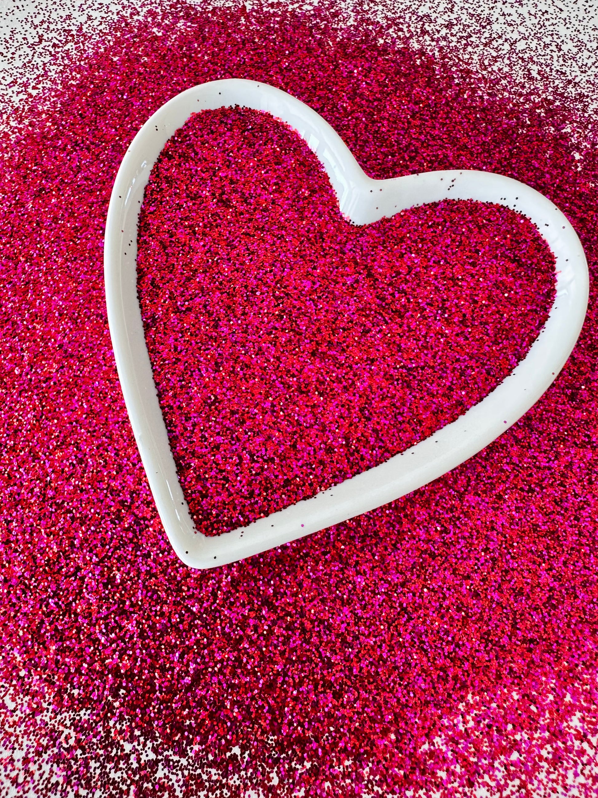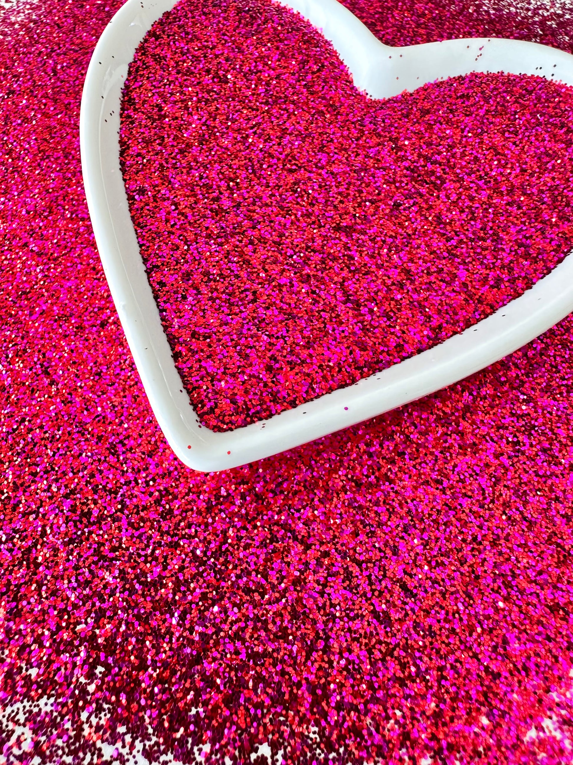Bitten is a deep, pink to red metallic glitter. Deep magenta.