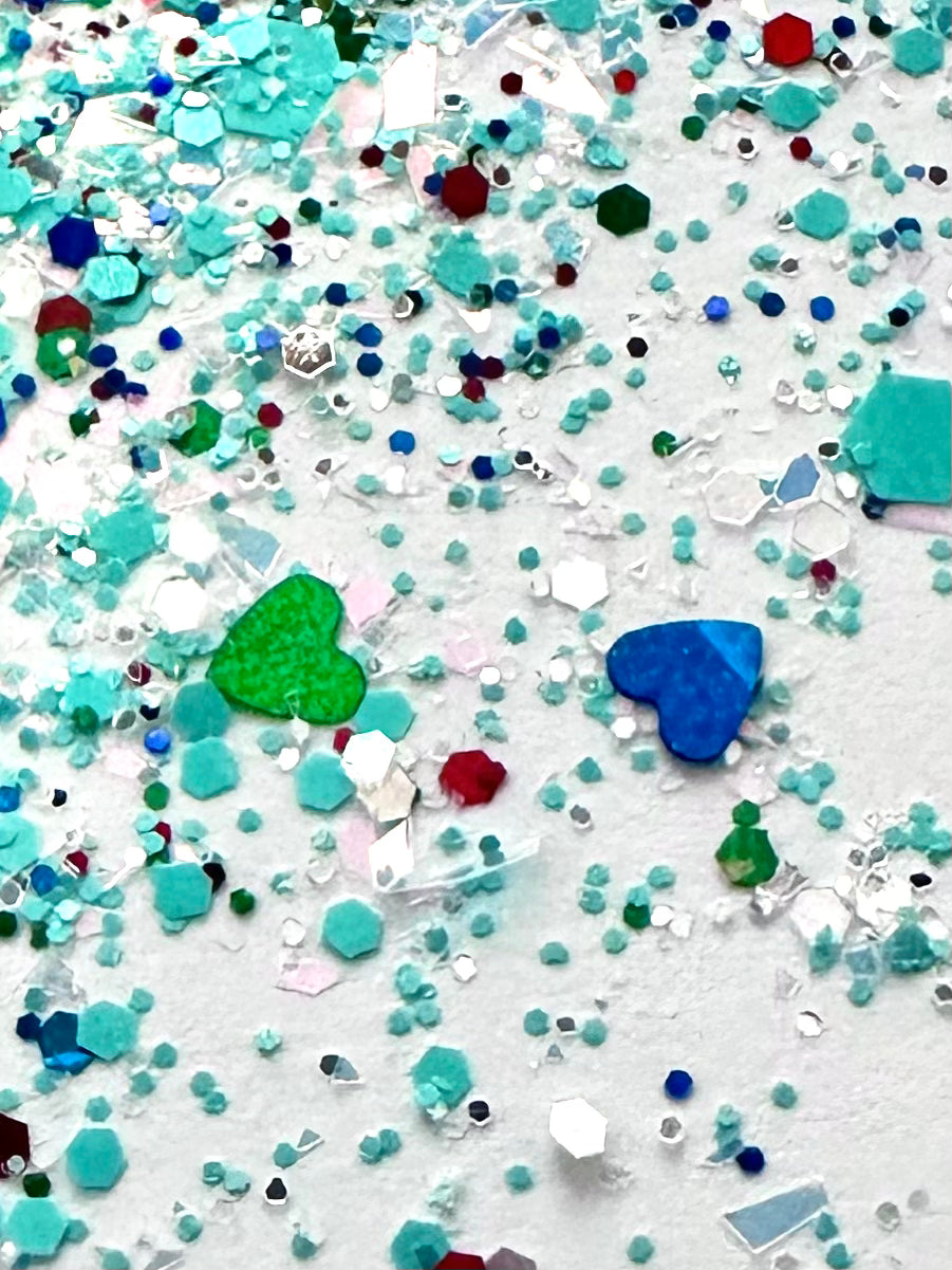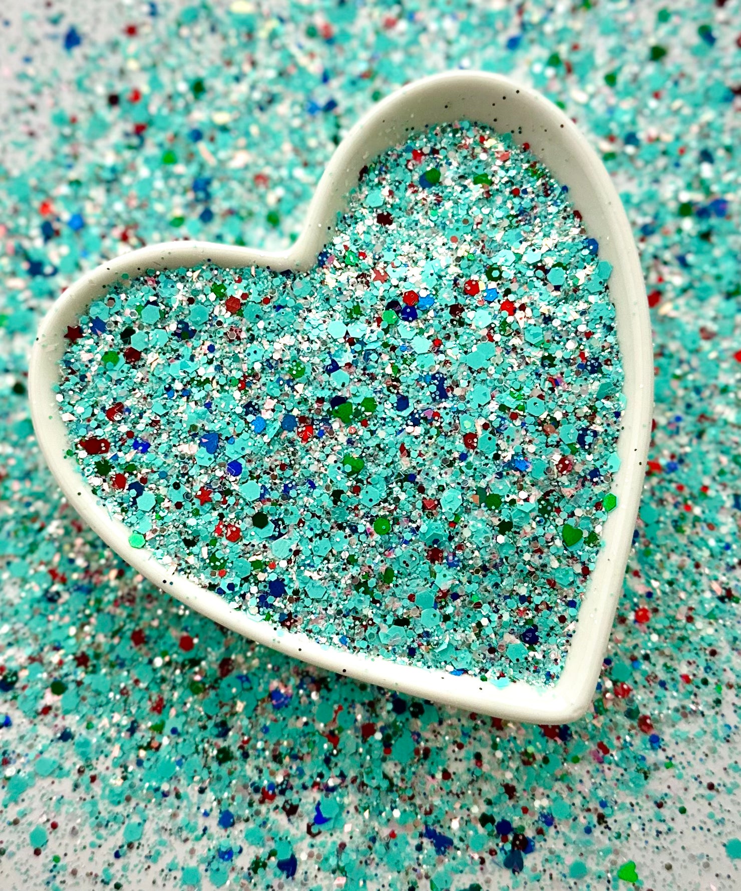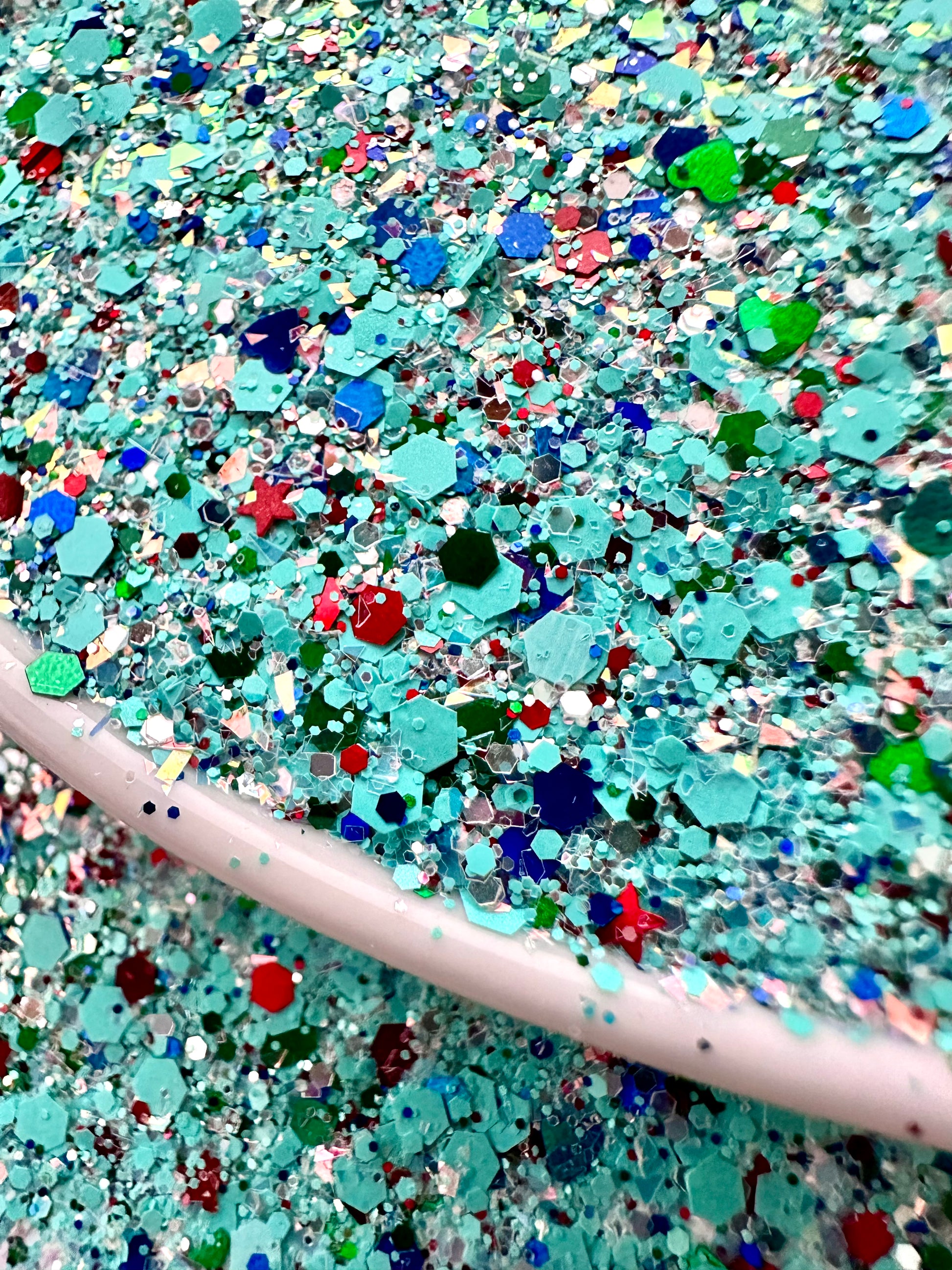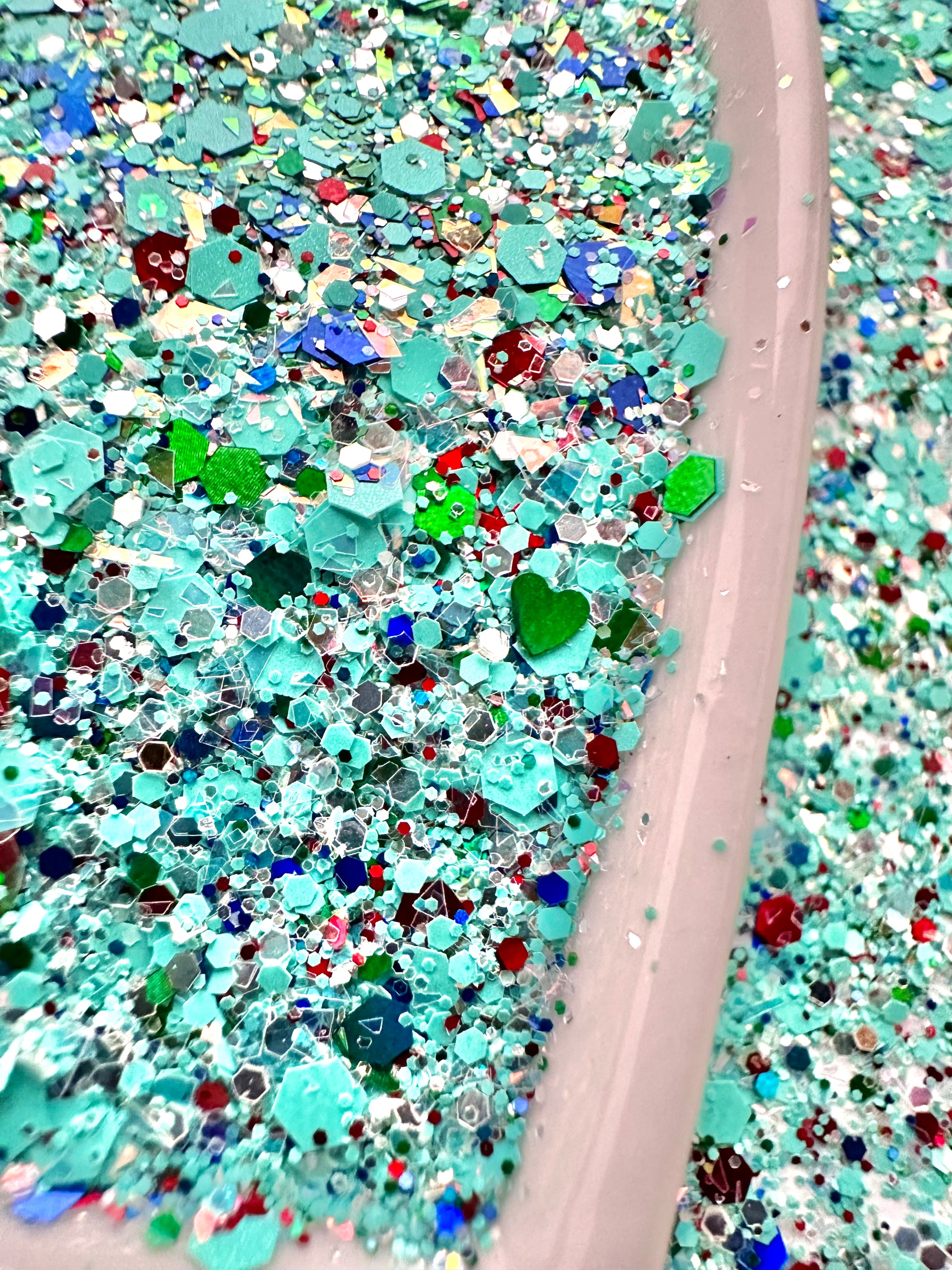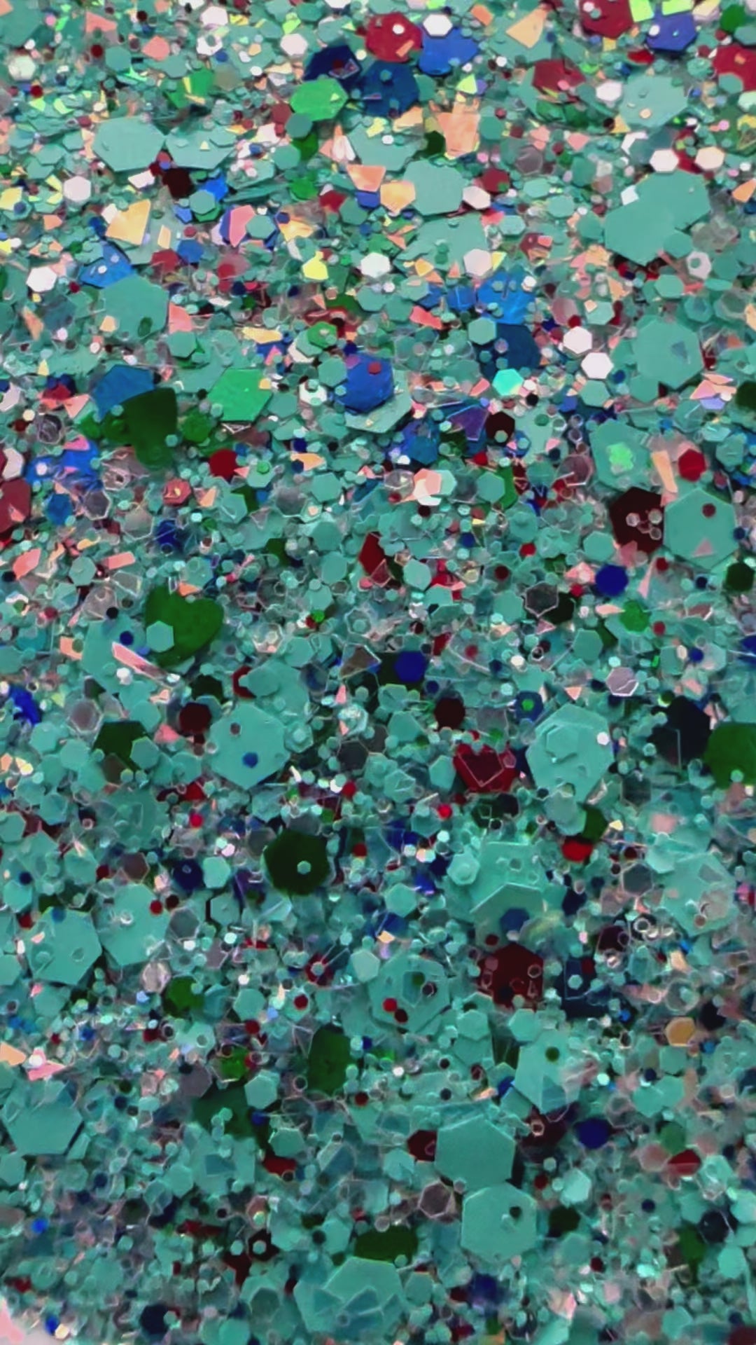 Blitzen is a beautiful mix of teal, red, green, blue and a bit of silver.