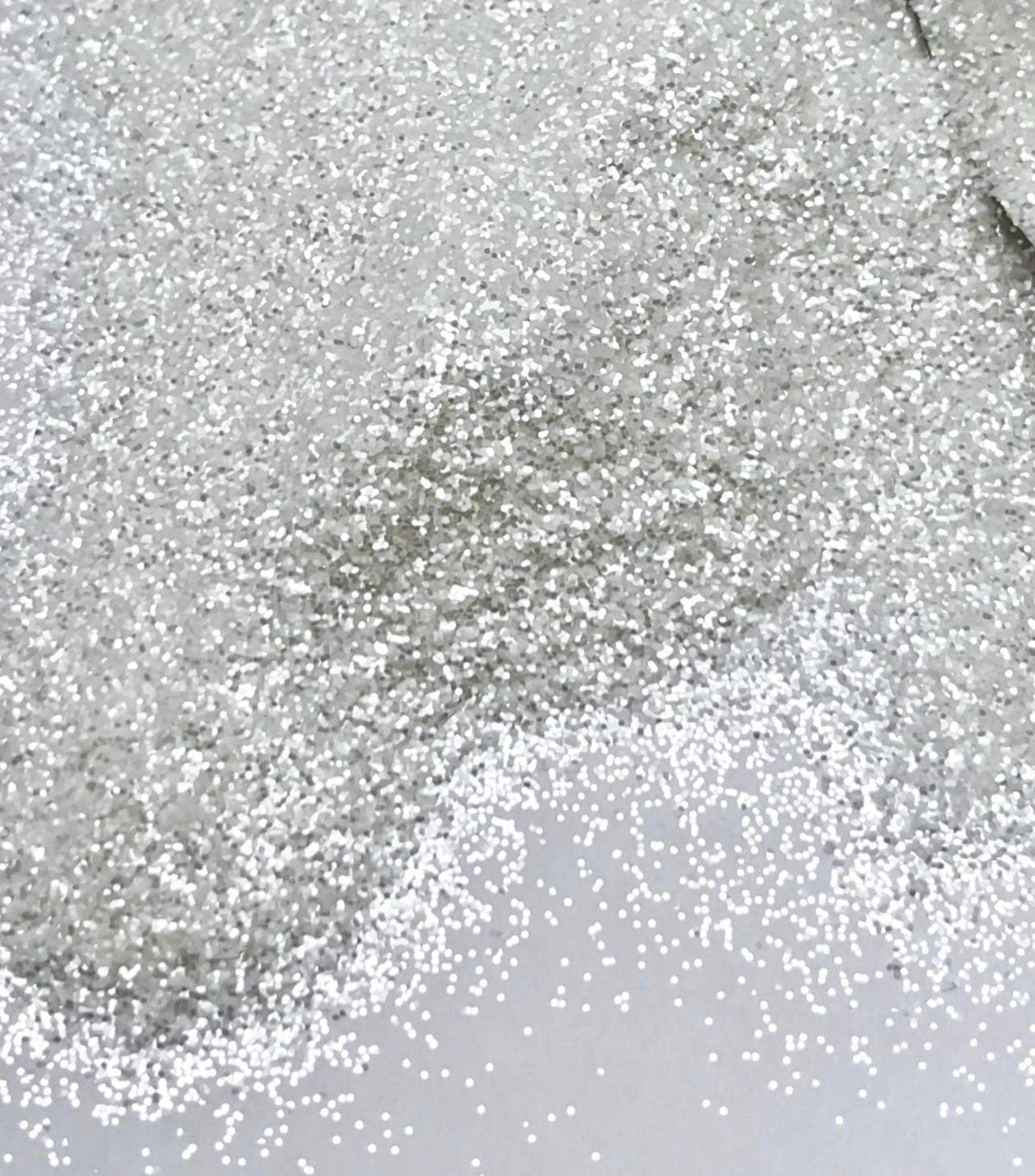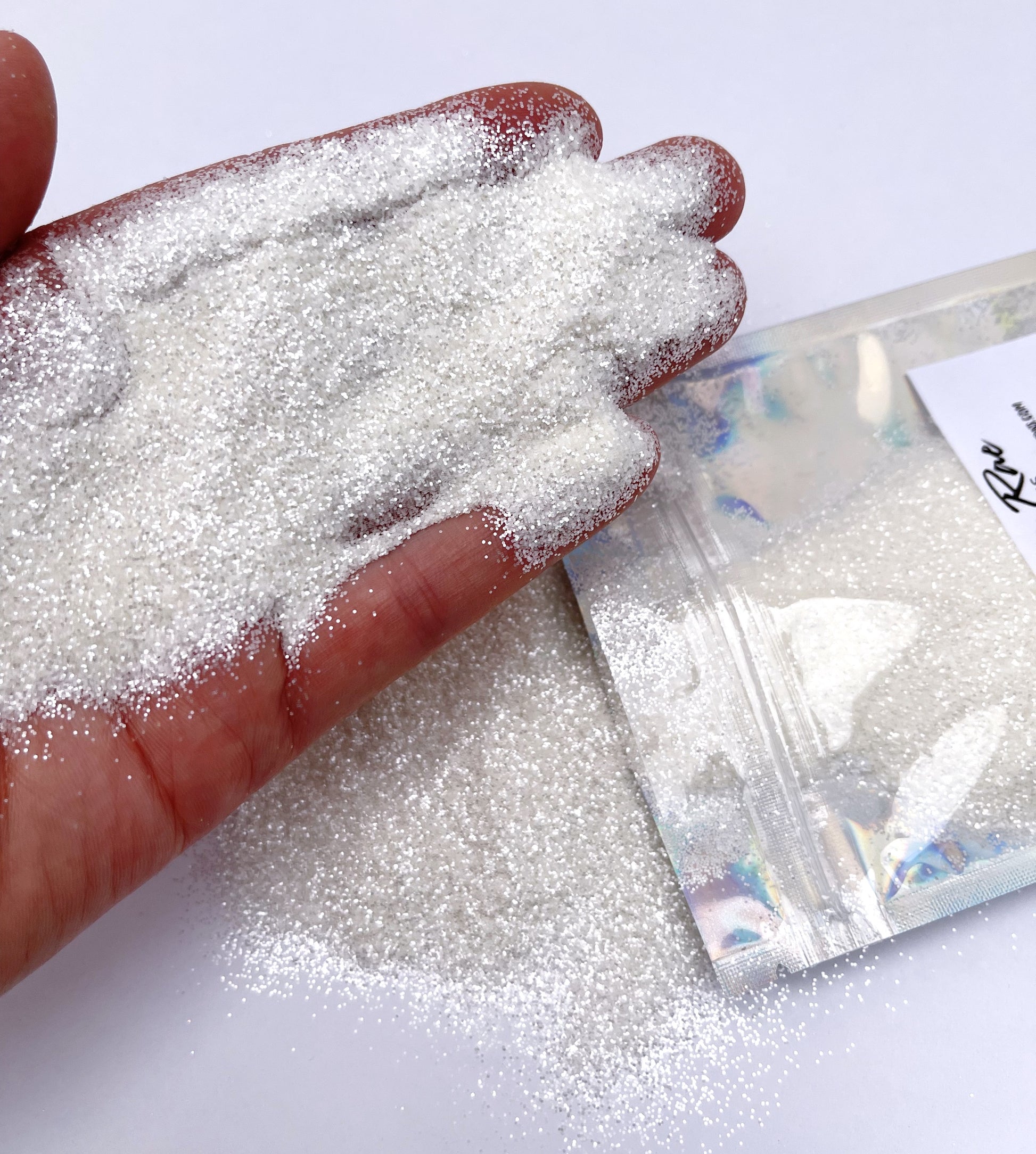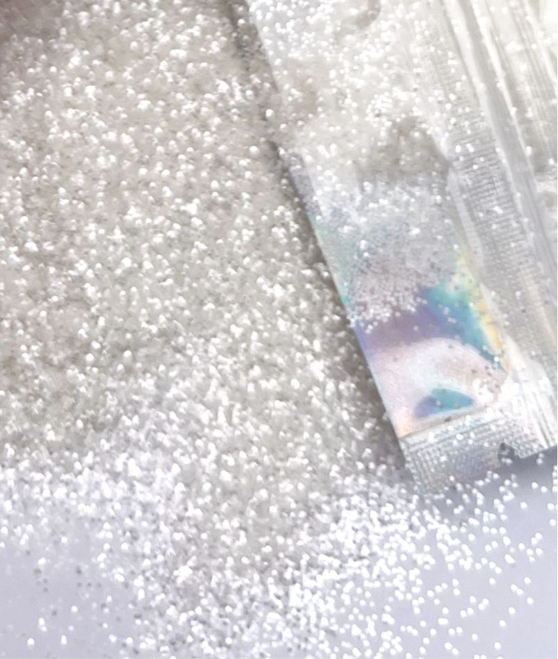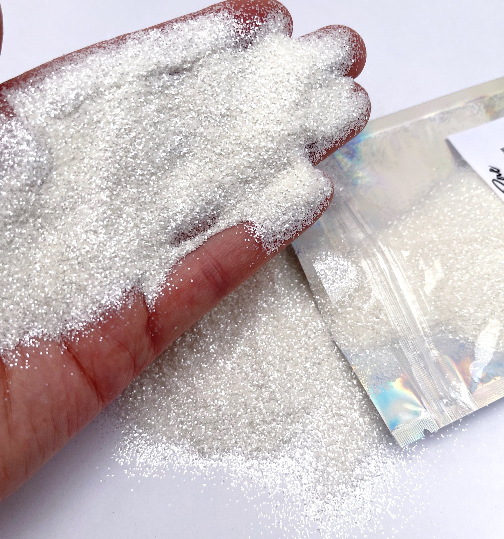 Blizzard is a solid white opaque glitter. It has a pearl shimmer.