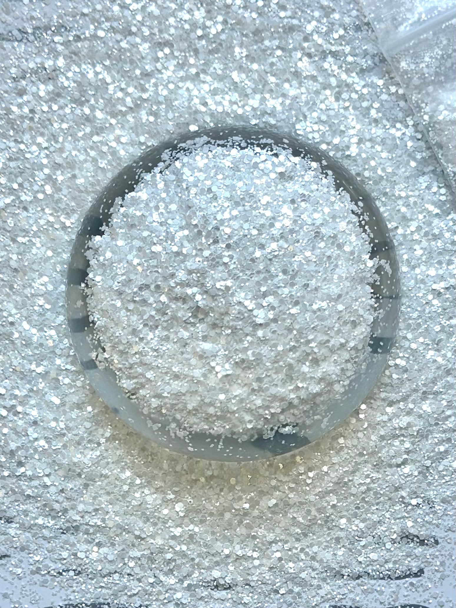 Blizzard 2.0 is a solid white mini chunky mix glitter. It has a gorgeous, pearl sheen to it. Non-translucent.