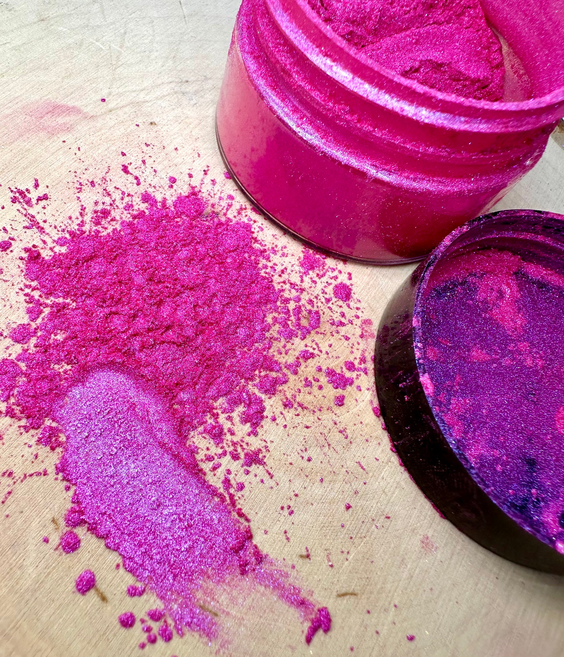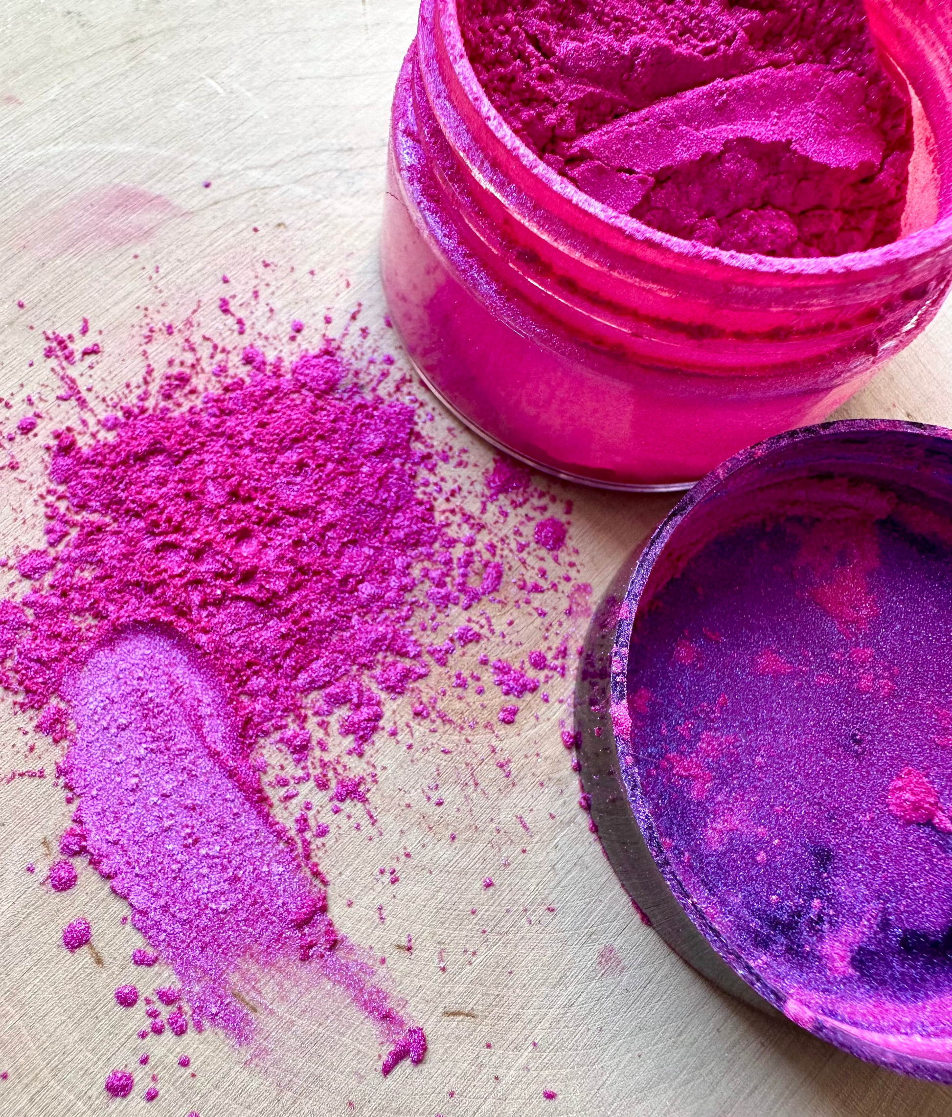 Bordeaux is a gorgeous, fuchsia pearl mica powder with a pull to purple over a black base.