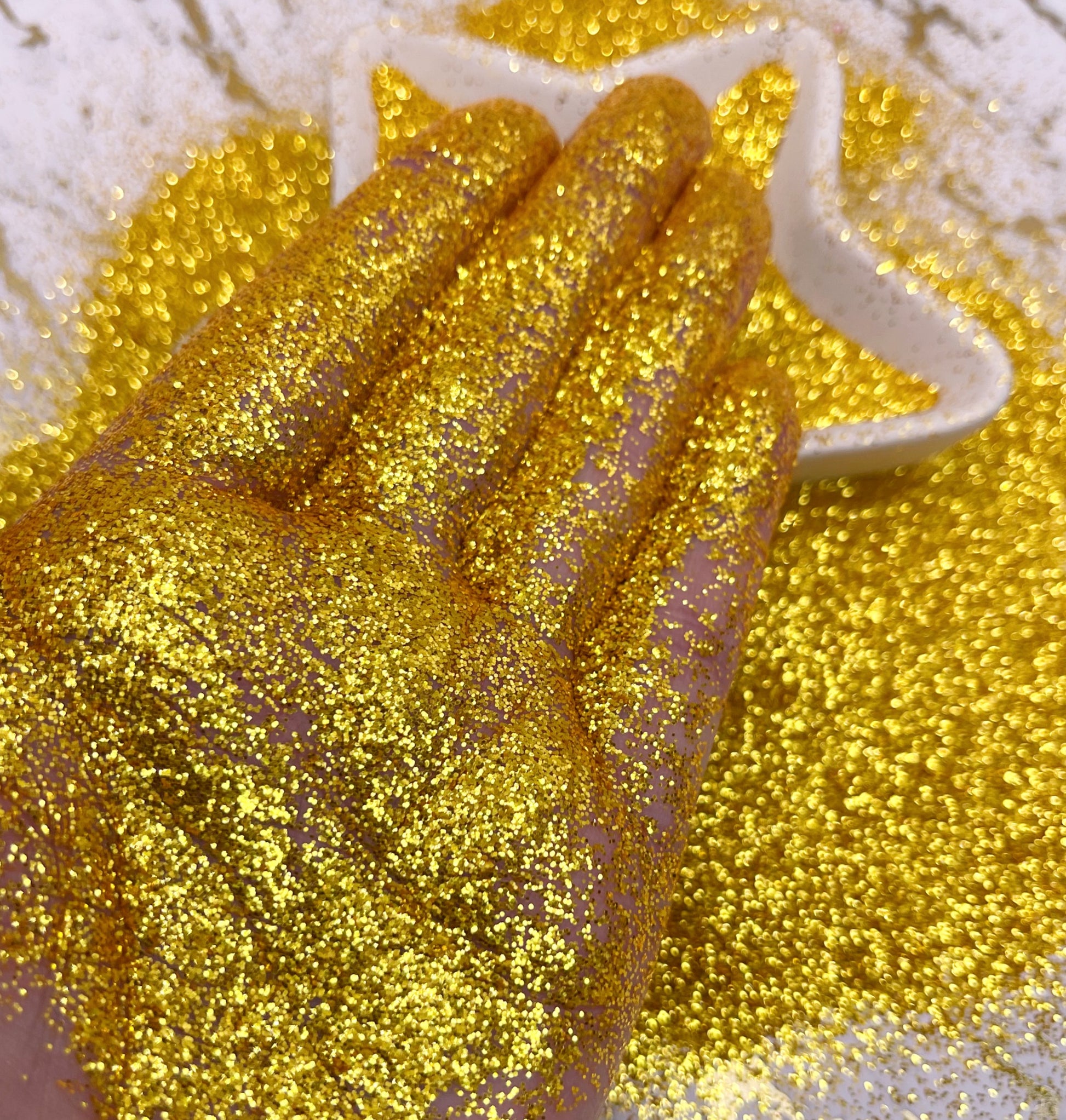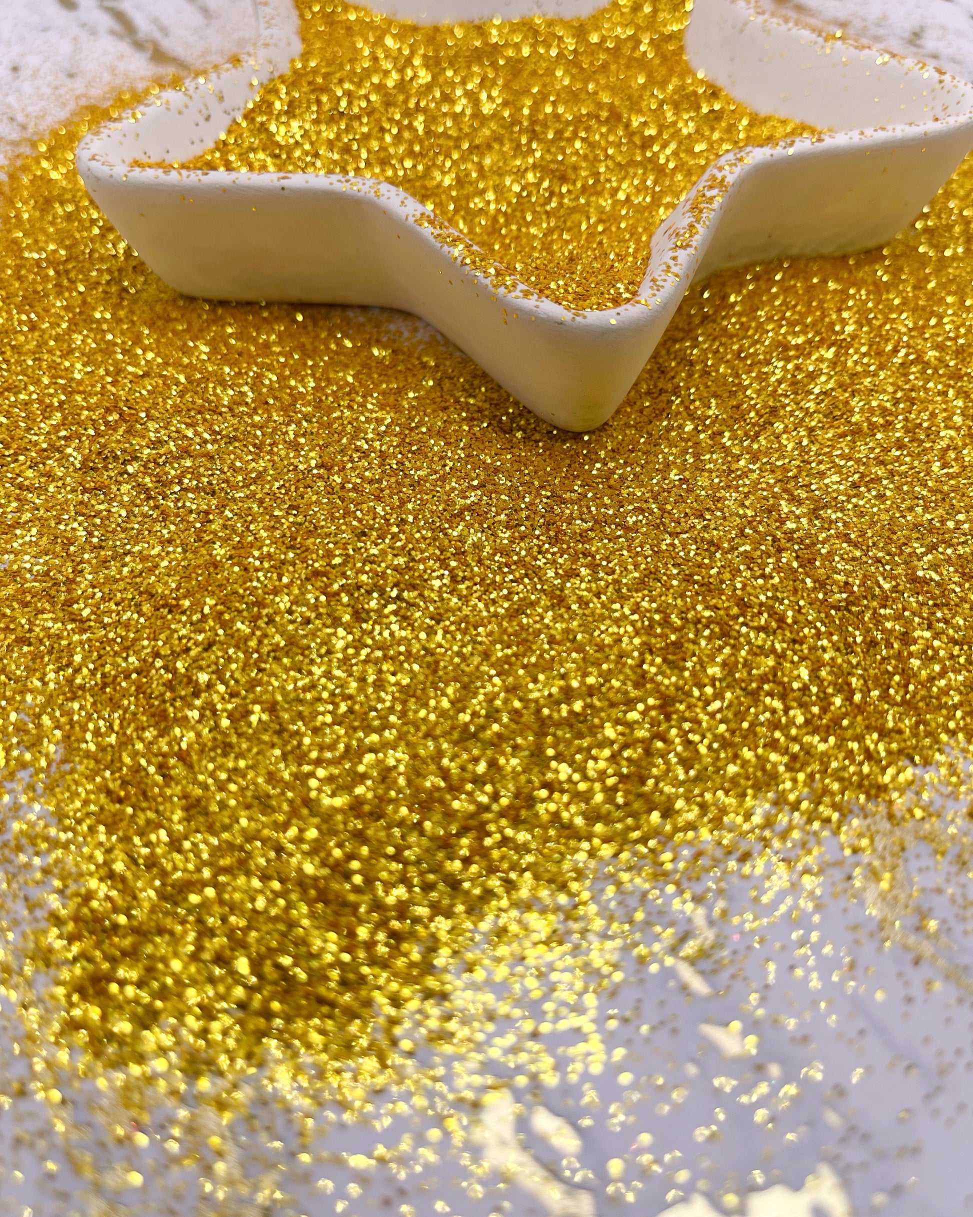 Bumble is a solid color metallic glitter. Somewhere in between gold and yellow.