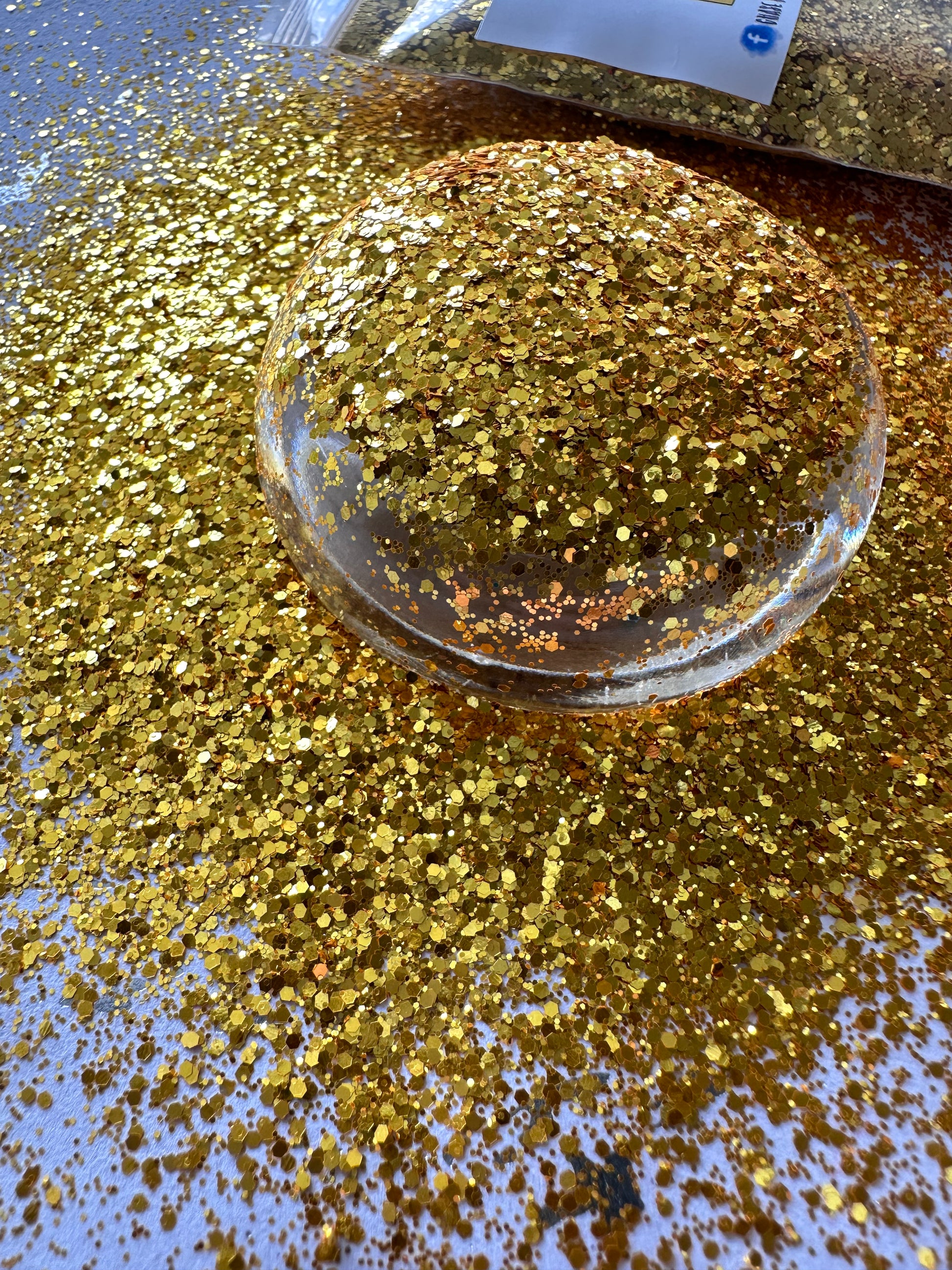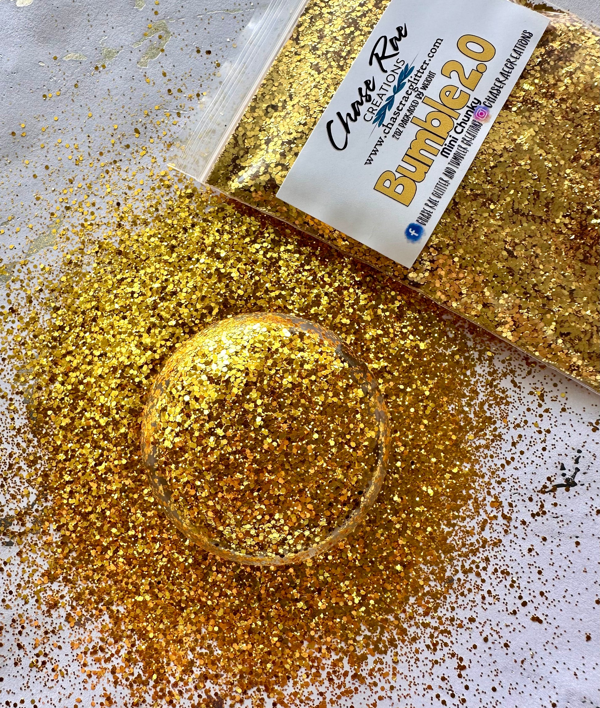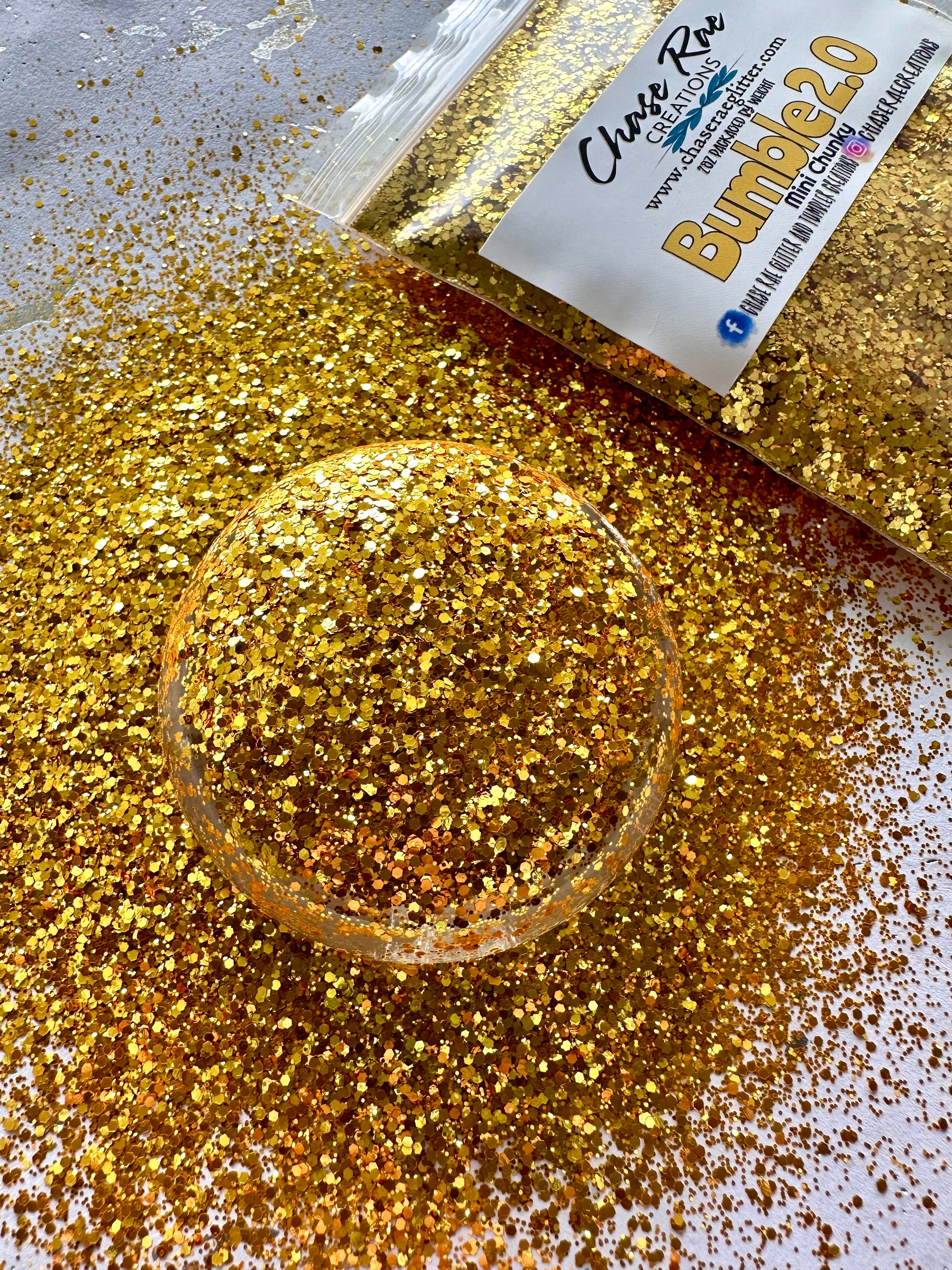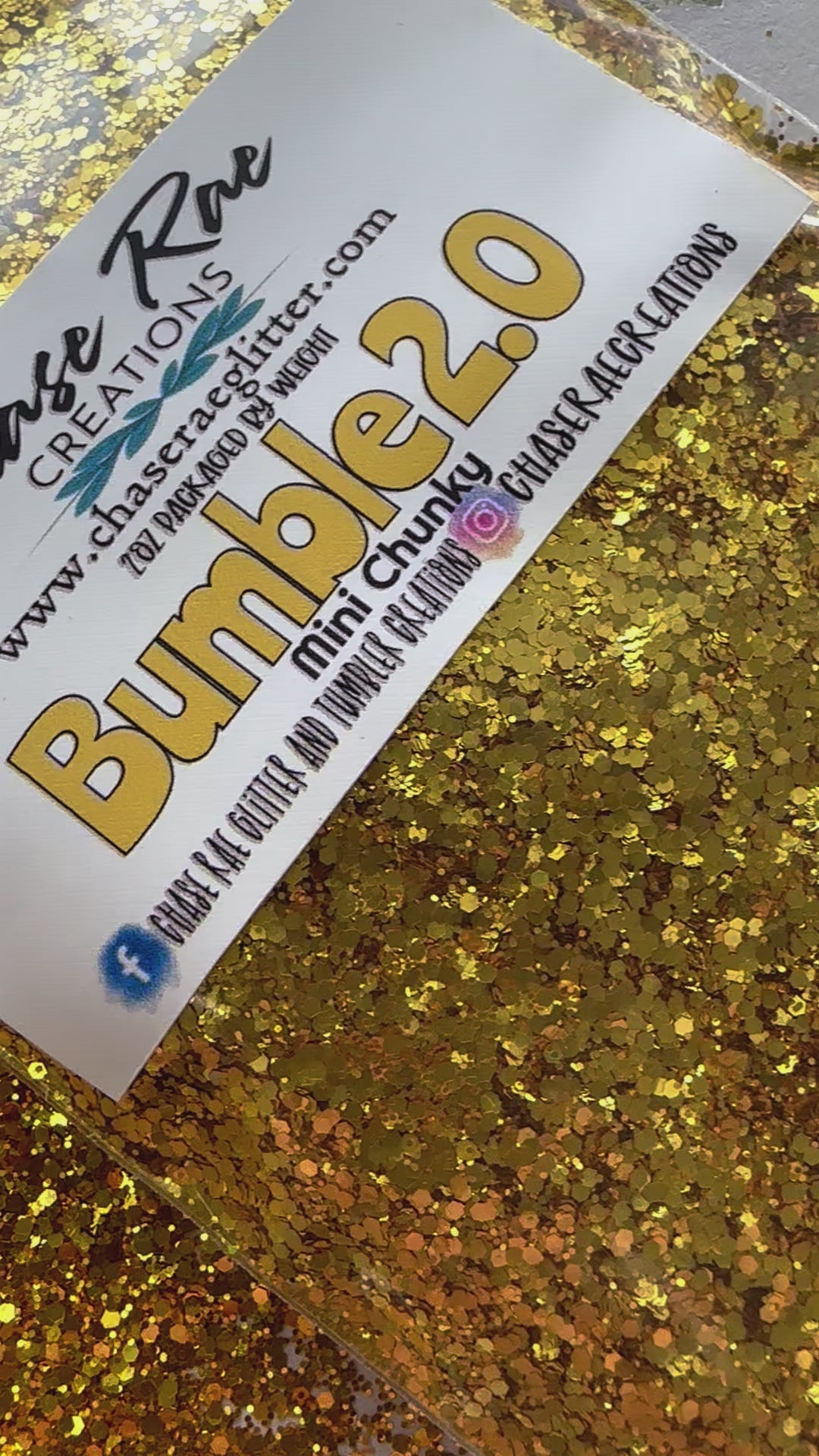 Bumble 2.0 is a solid color metallic glitter. Somewhere in between gold and yellow.