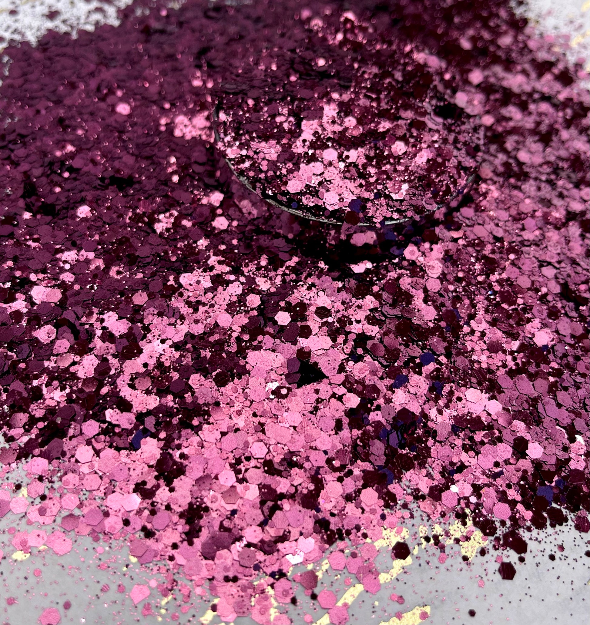 Cabernet is a deep burgandy / wine colored chunky mix. Solid color Metallic.