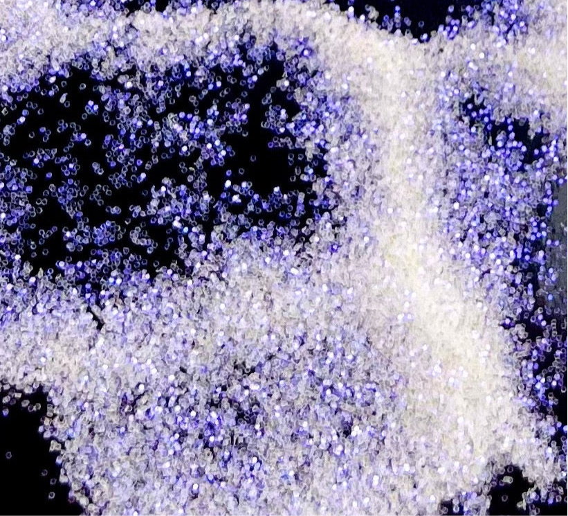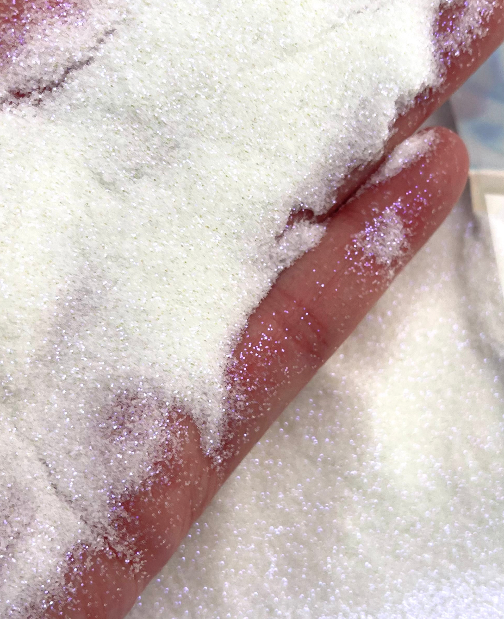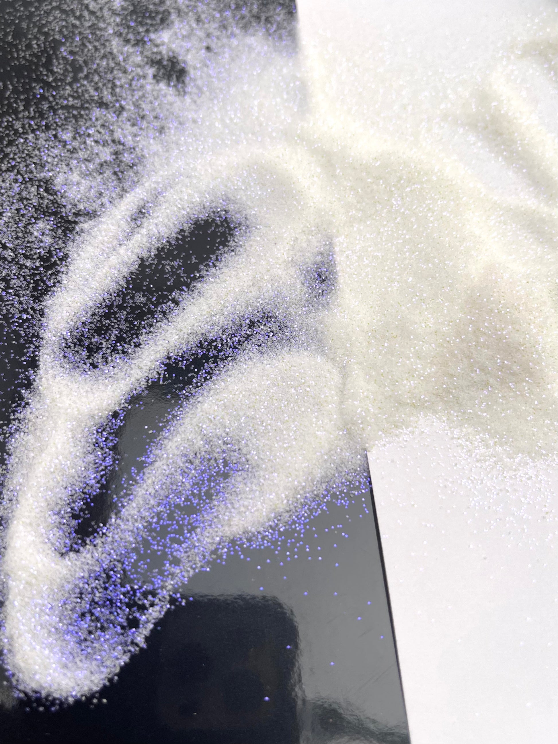 Calypso is a semi-transparent glitter. Looks white, until it hits a dark surface. Then BAM!! Magic! Has a beautiful purple shift.