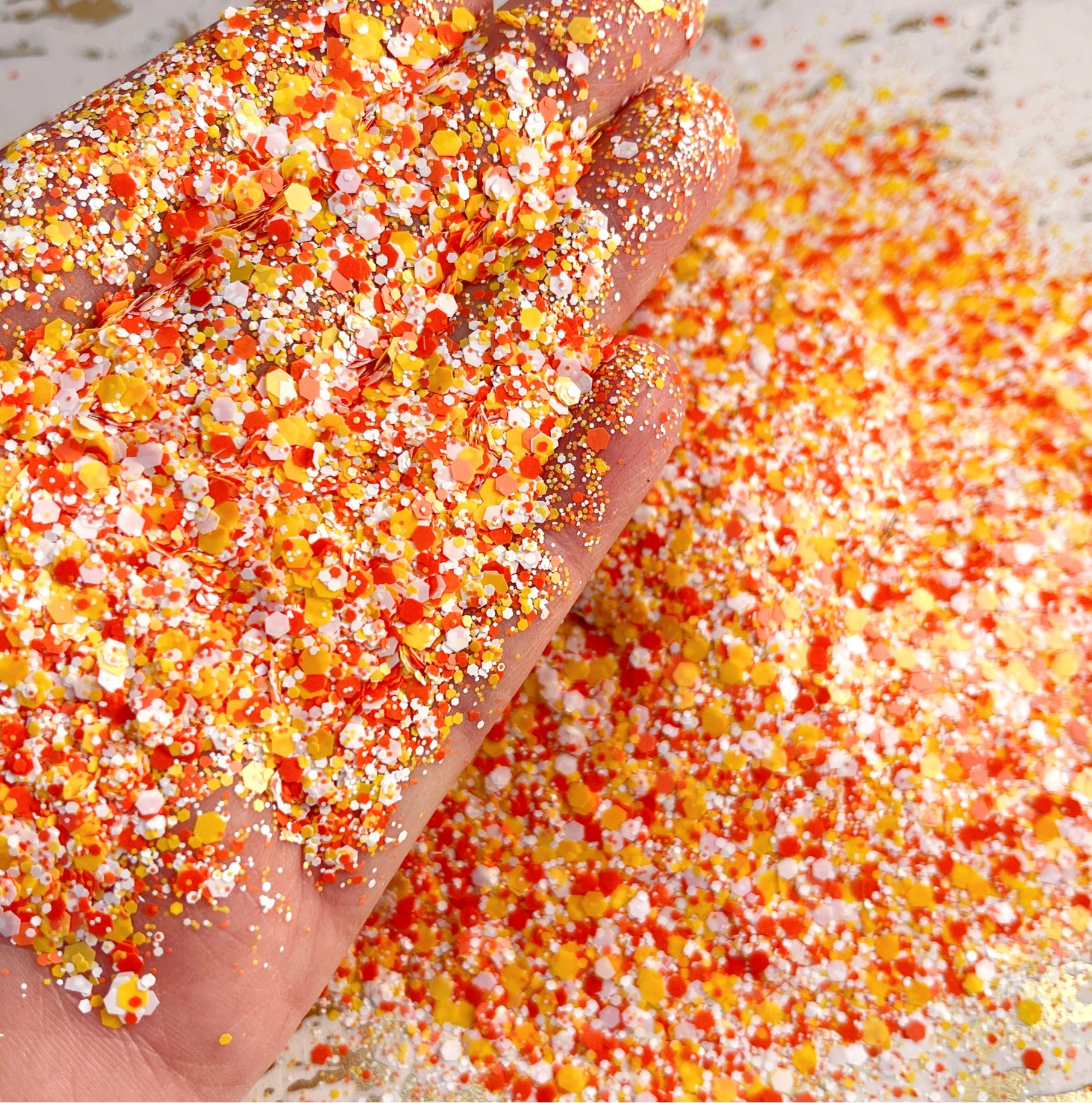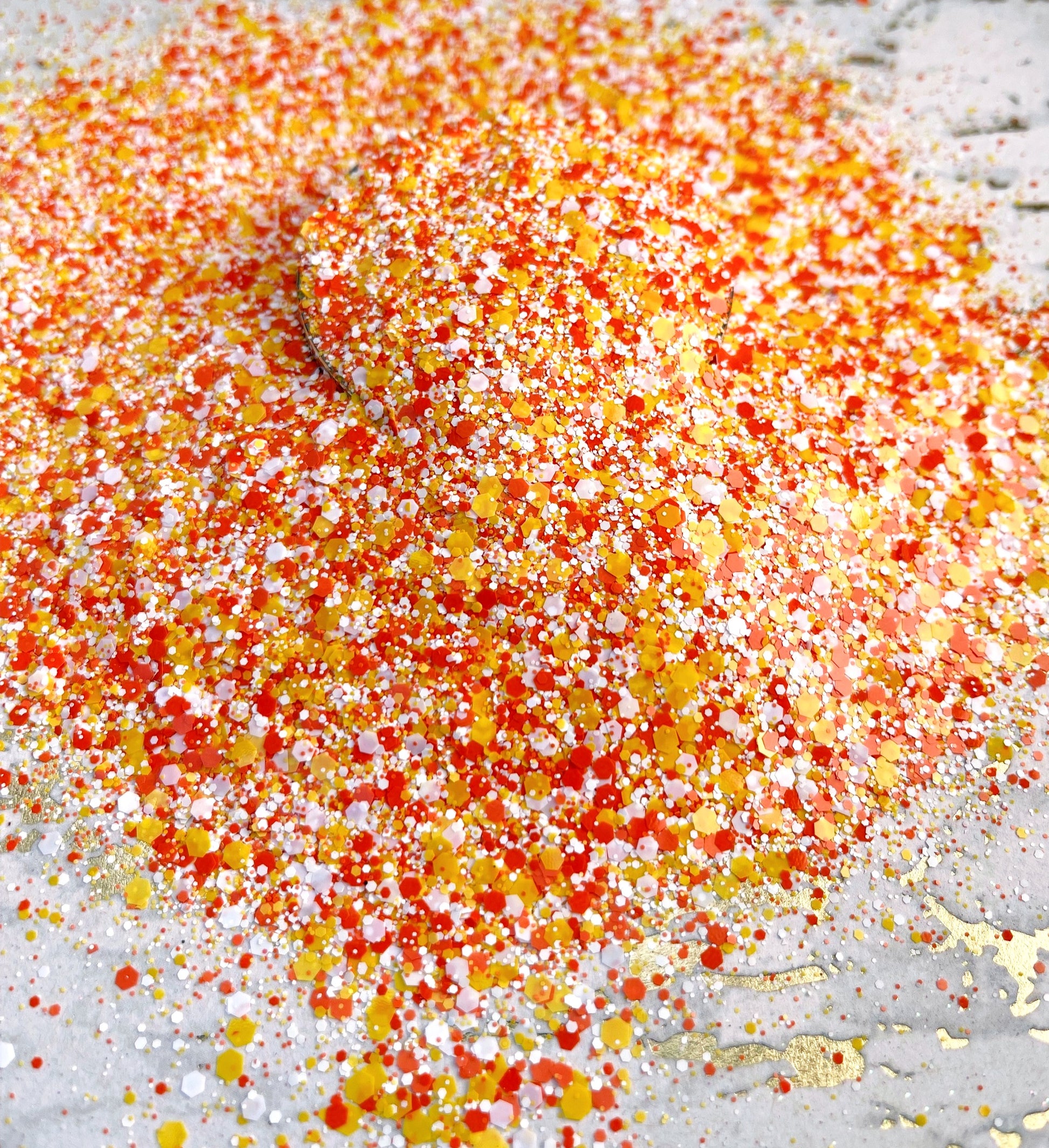 Candy Corn is the perfect chunky Halloween glitter mix with orange, yellow and white.