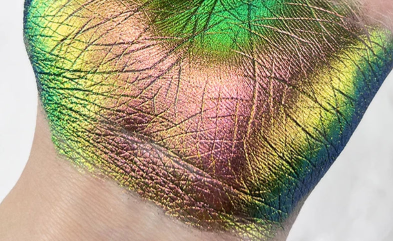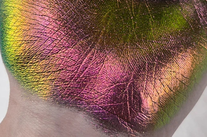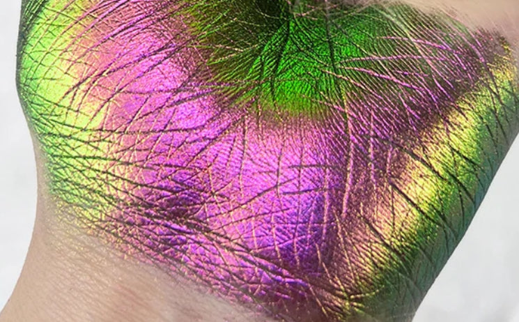 Cosmetic grade chameleon mirror powder. 12 gorgeous shifting pigment powders. Super pigmented!