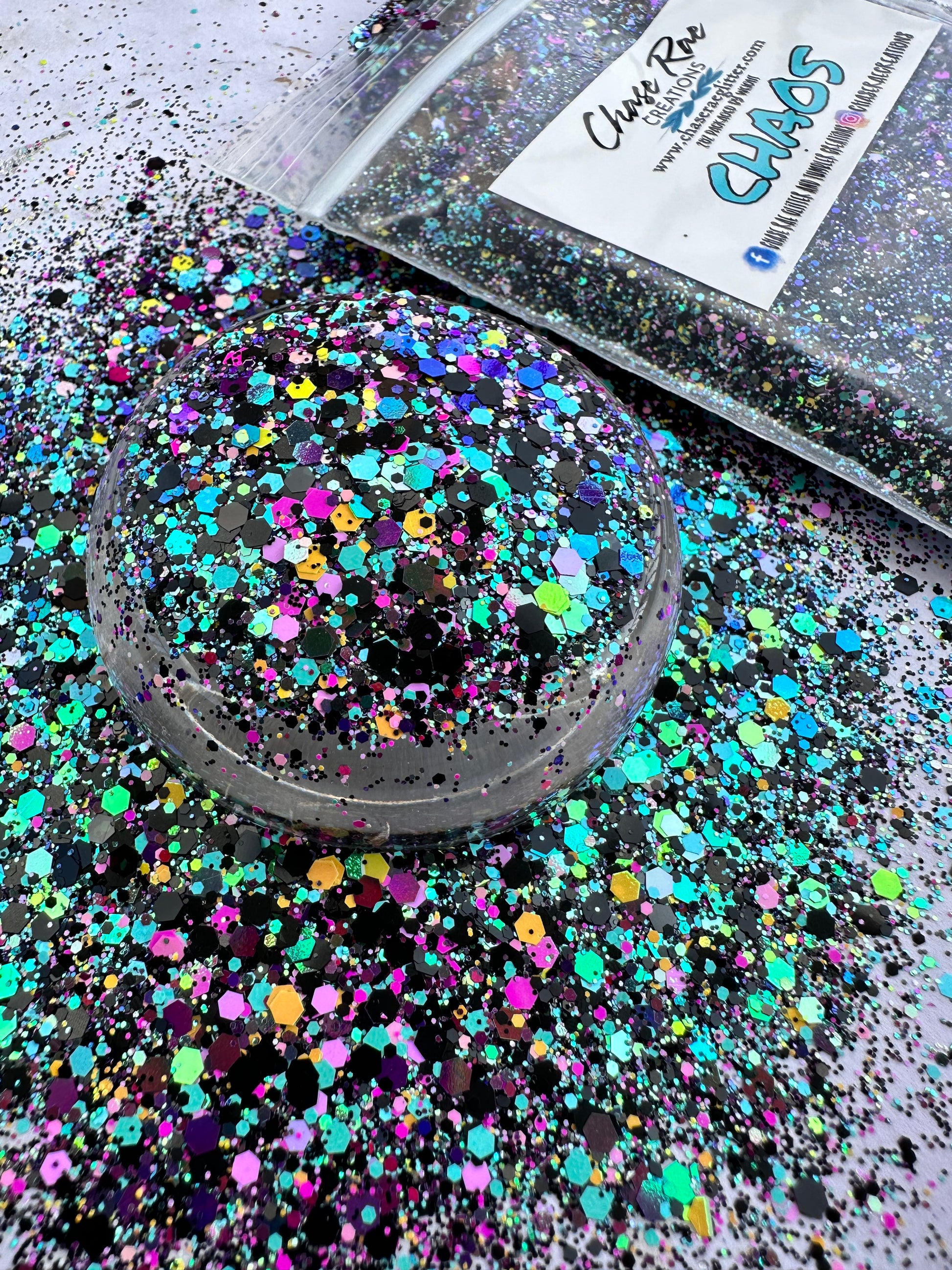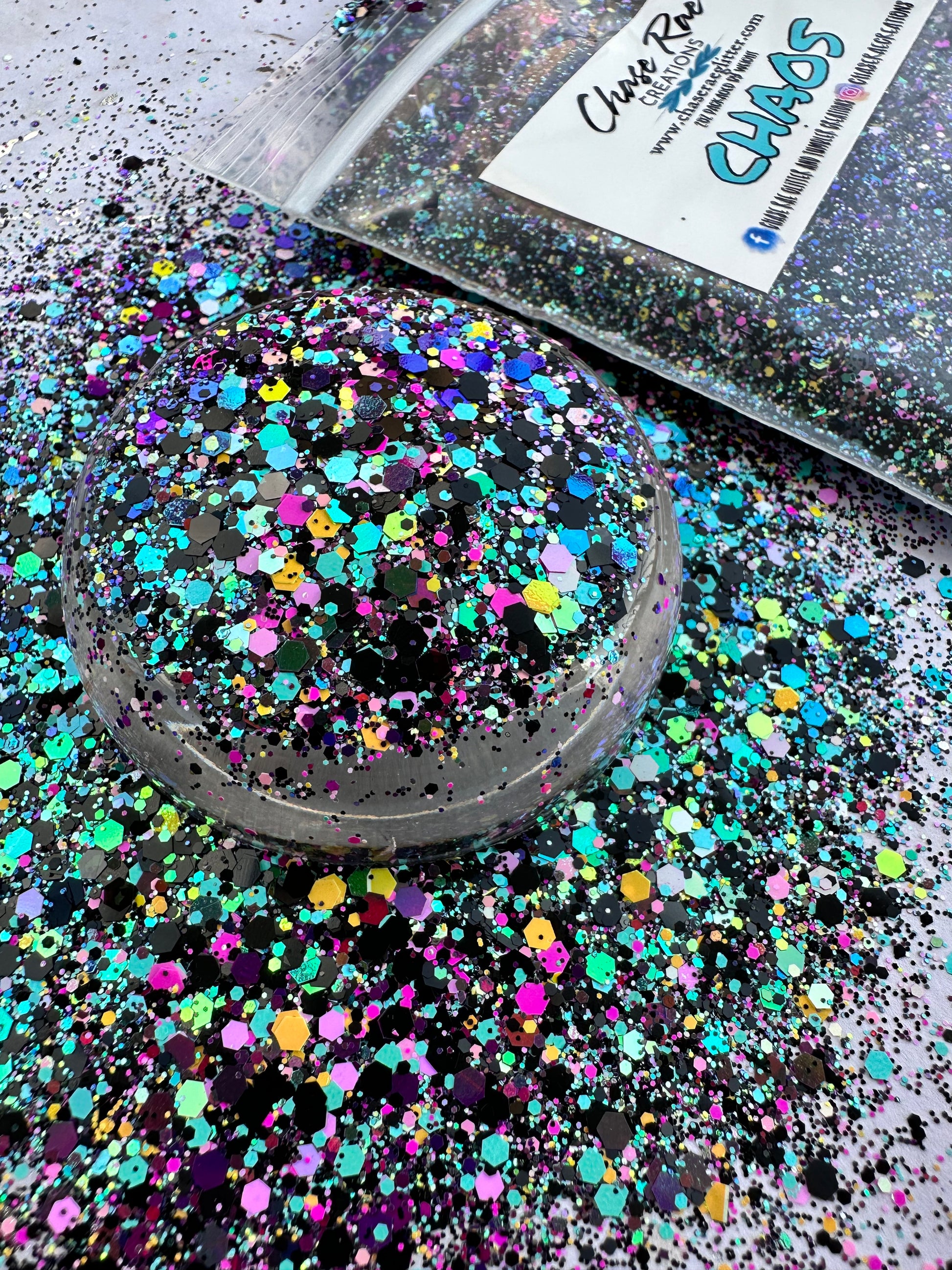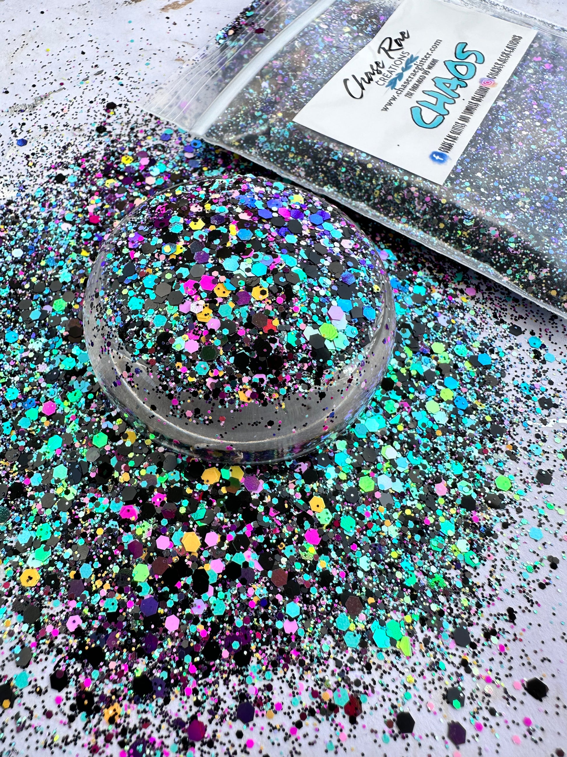 Chaos is such a fun and funky mix! Black, teal, pinks, and yellow are in this one.