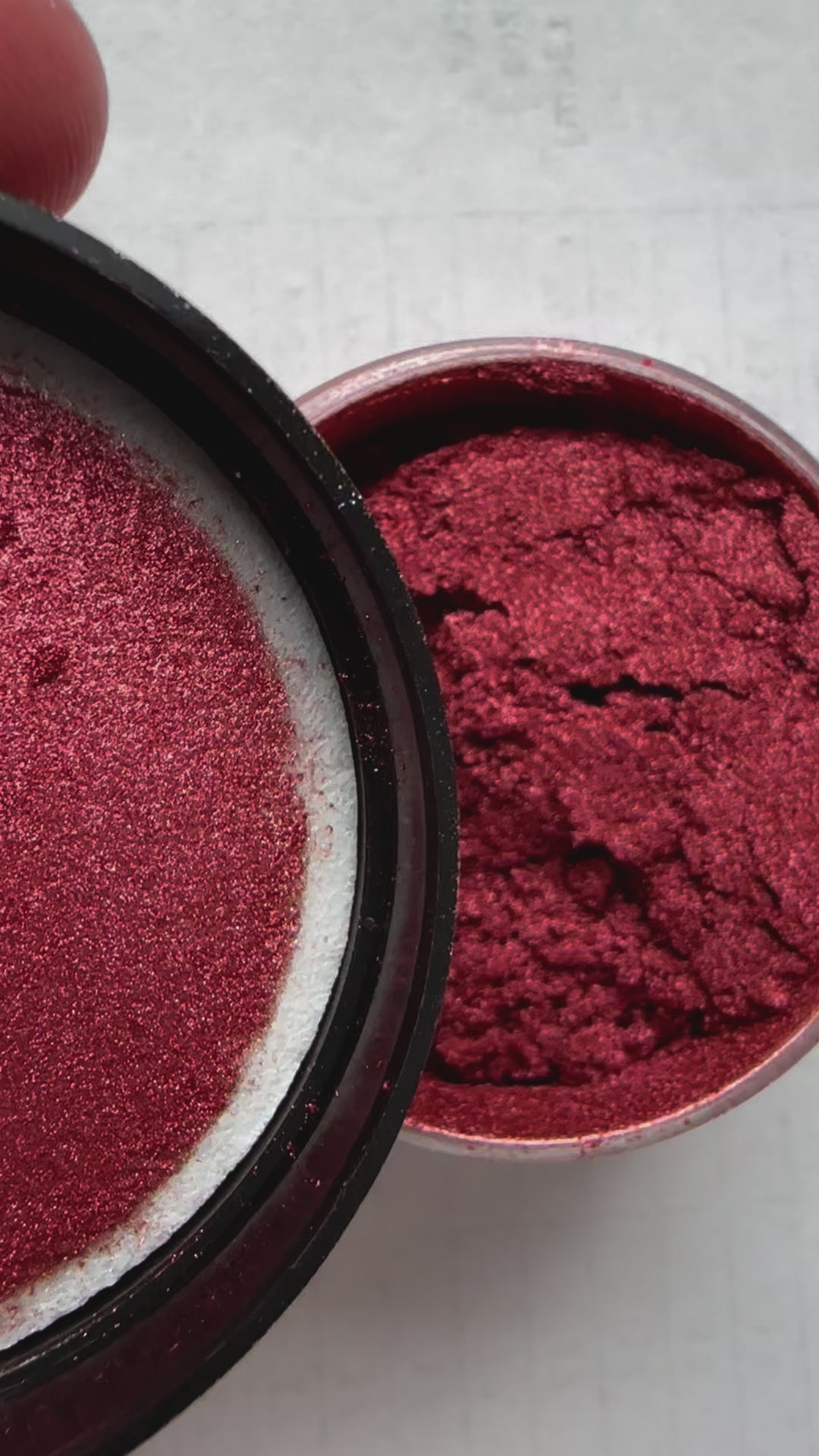 Cherry is a gorgeous, red pearl mica powder. Pearlescent shimmer.
