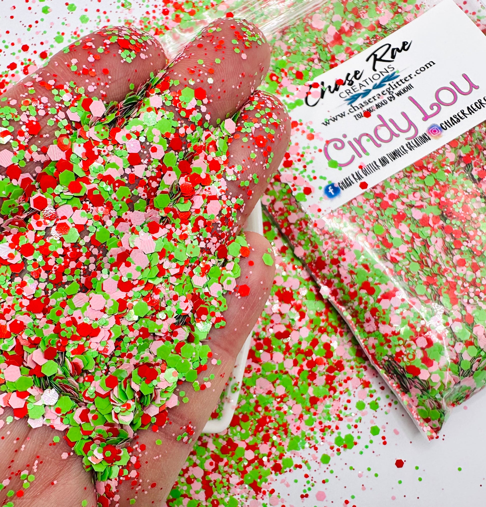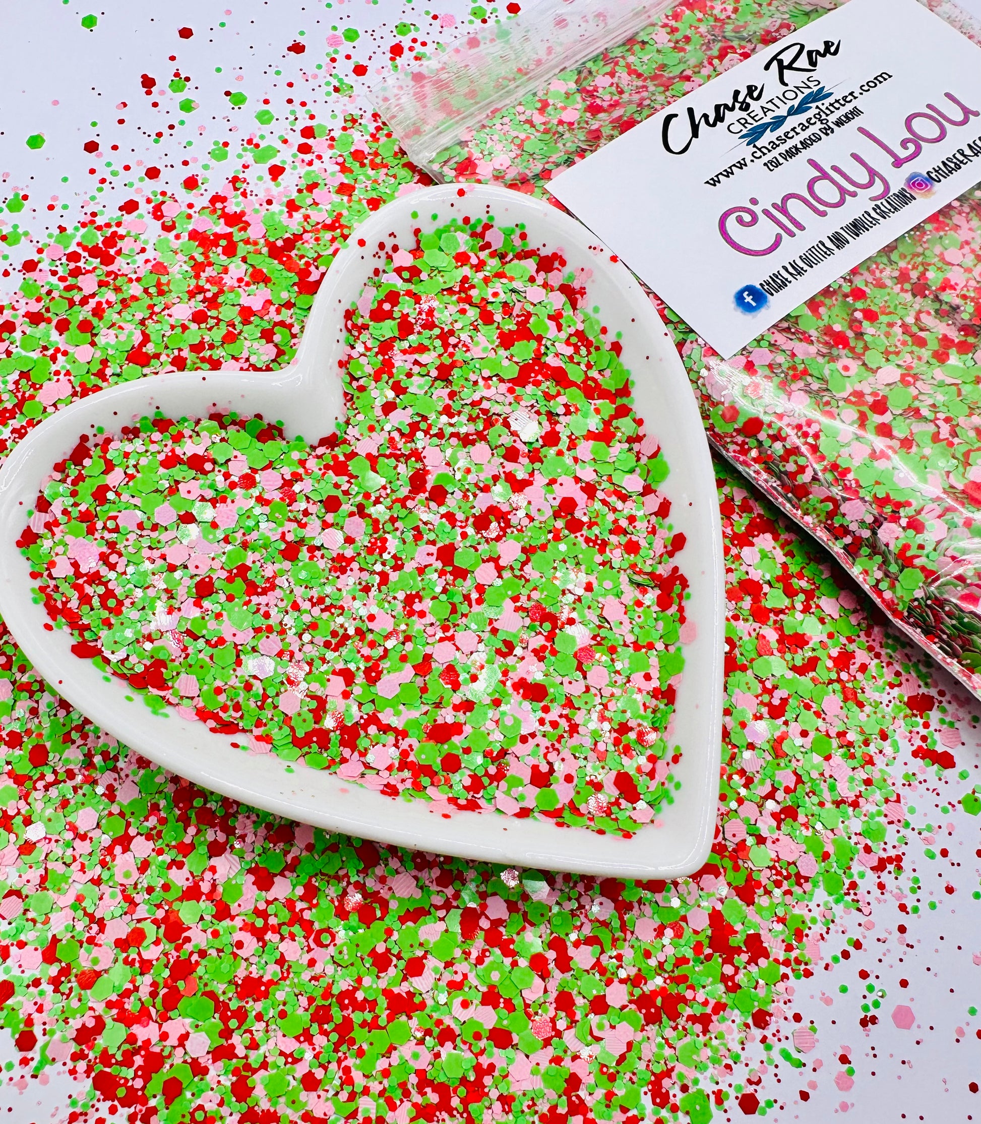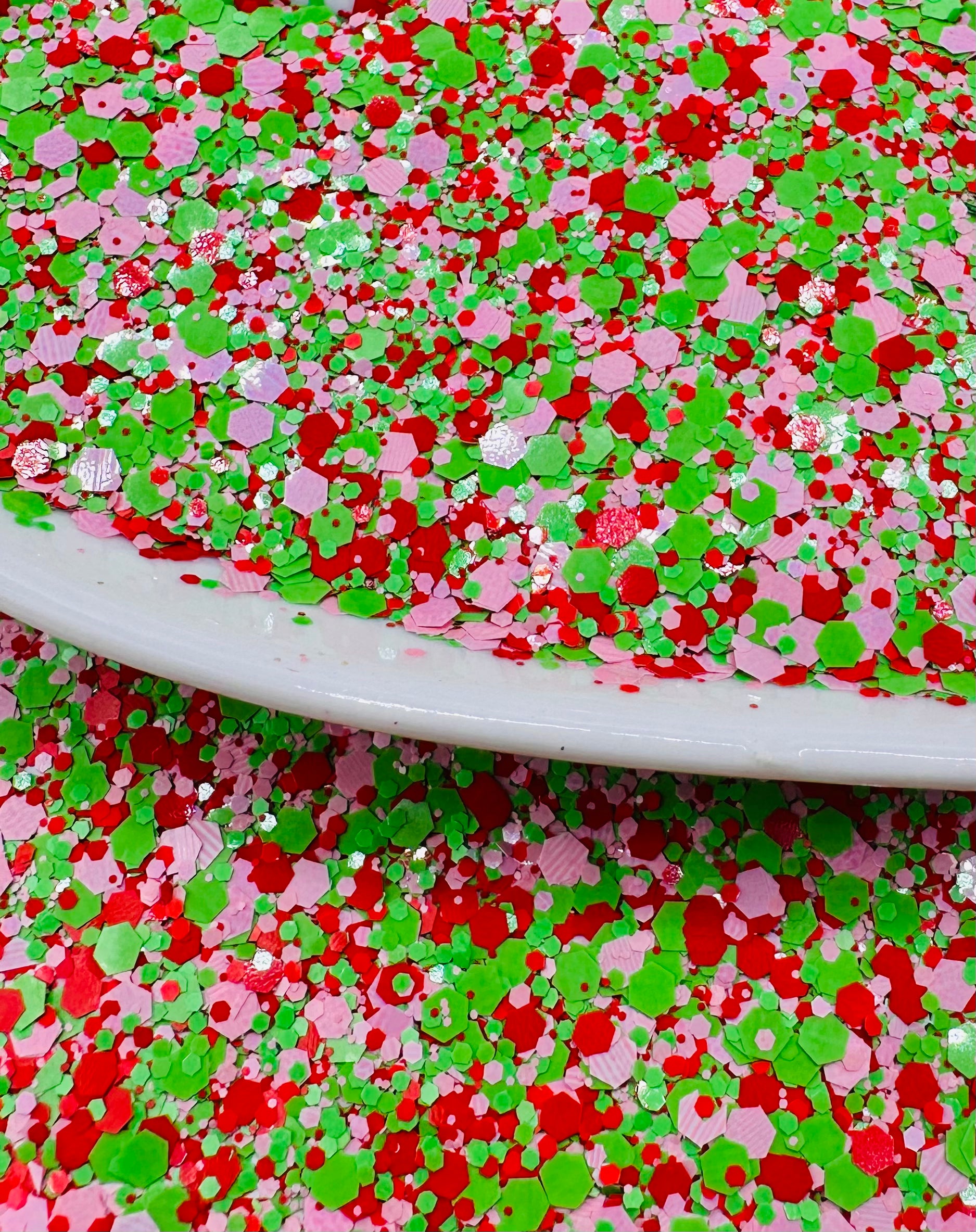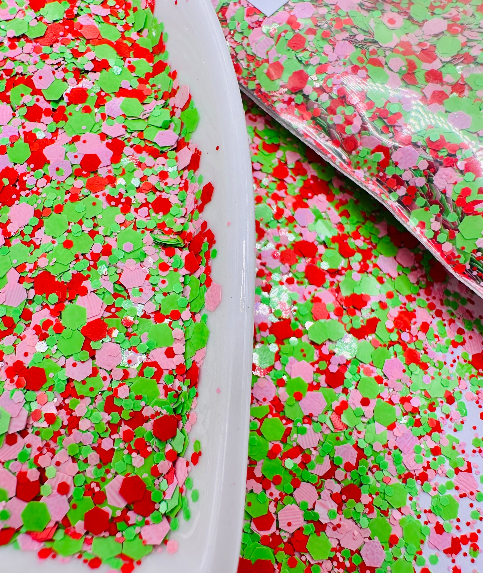 This chunky mix is perfect for any Whoville craft! Soft pink, red and green.