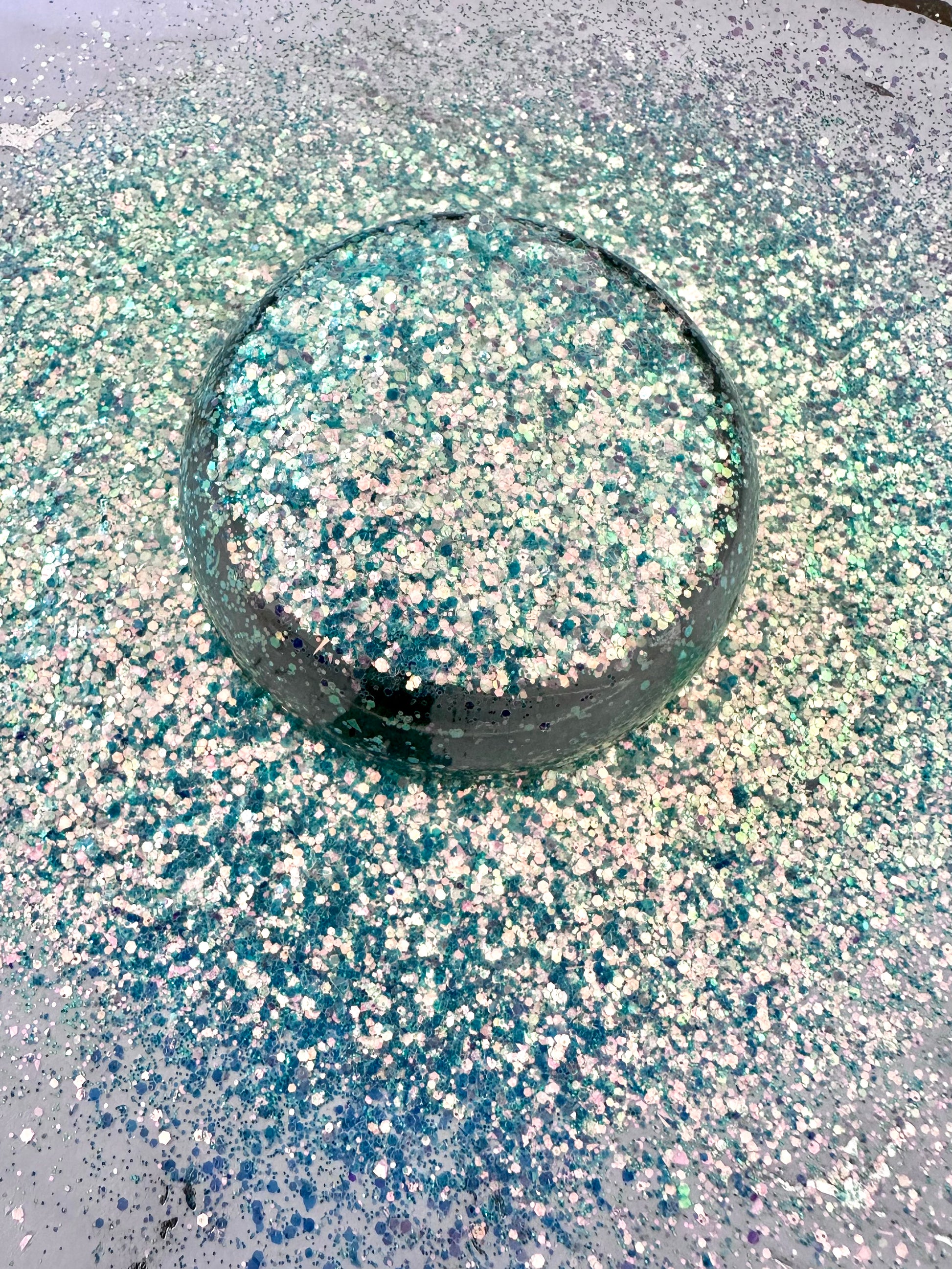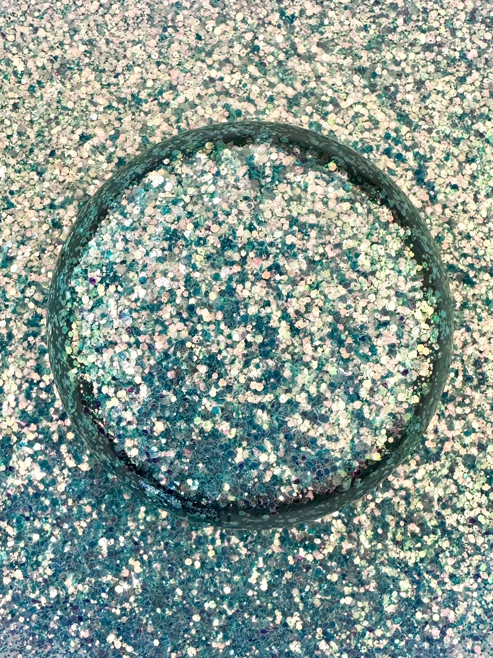 Coastal is a soft pastel teal to turquoise glitter. Opal mini chunky mix.