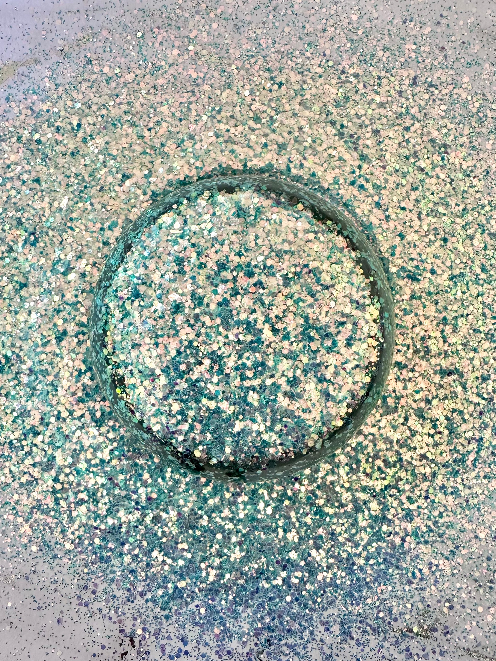 In the same glitter family as Robins Egg, Bunny Suit, and the rest of the Pastel Pack