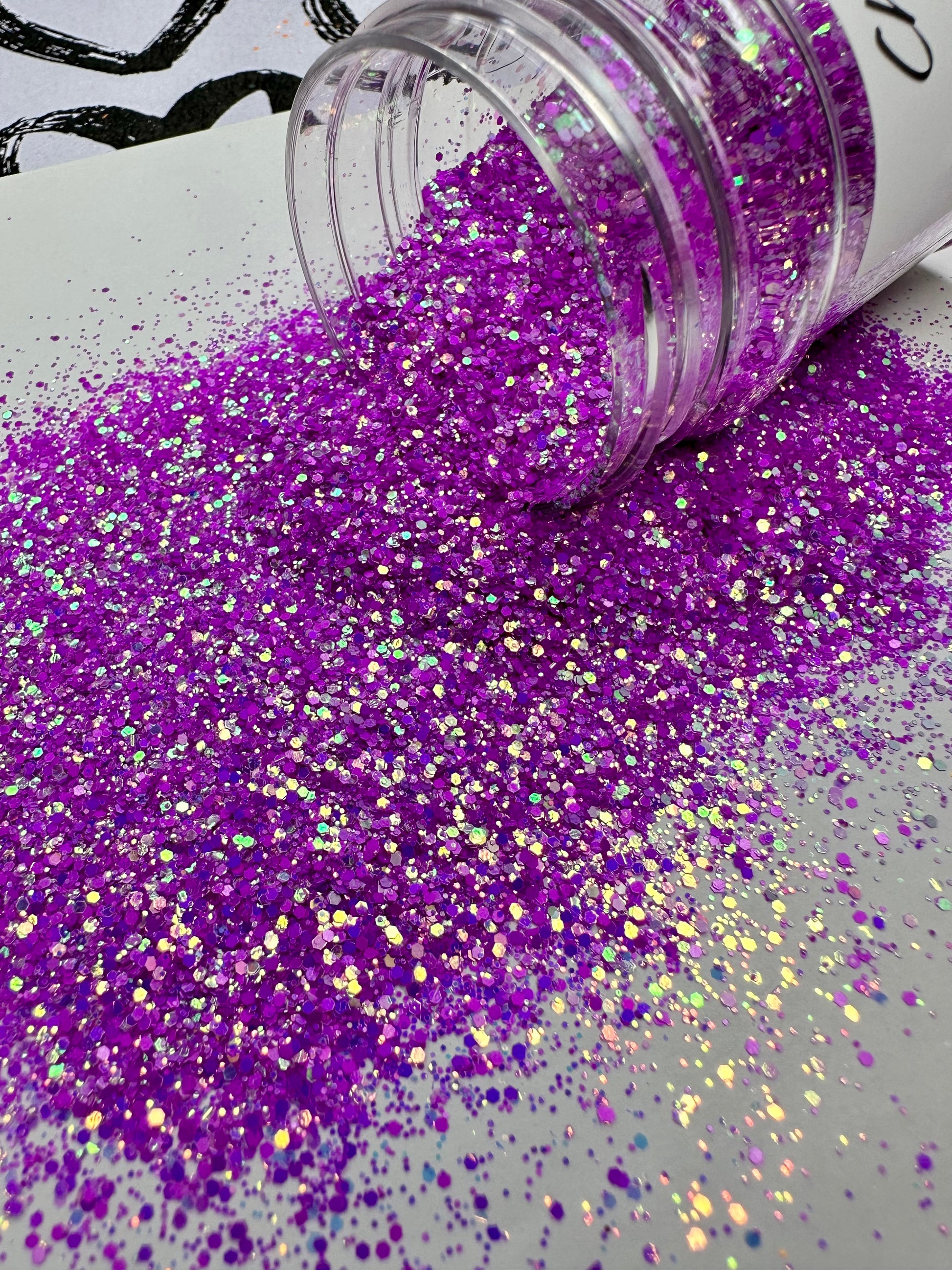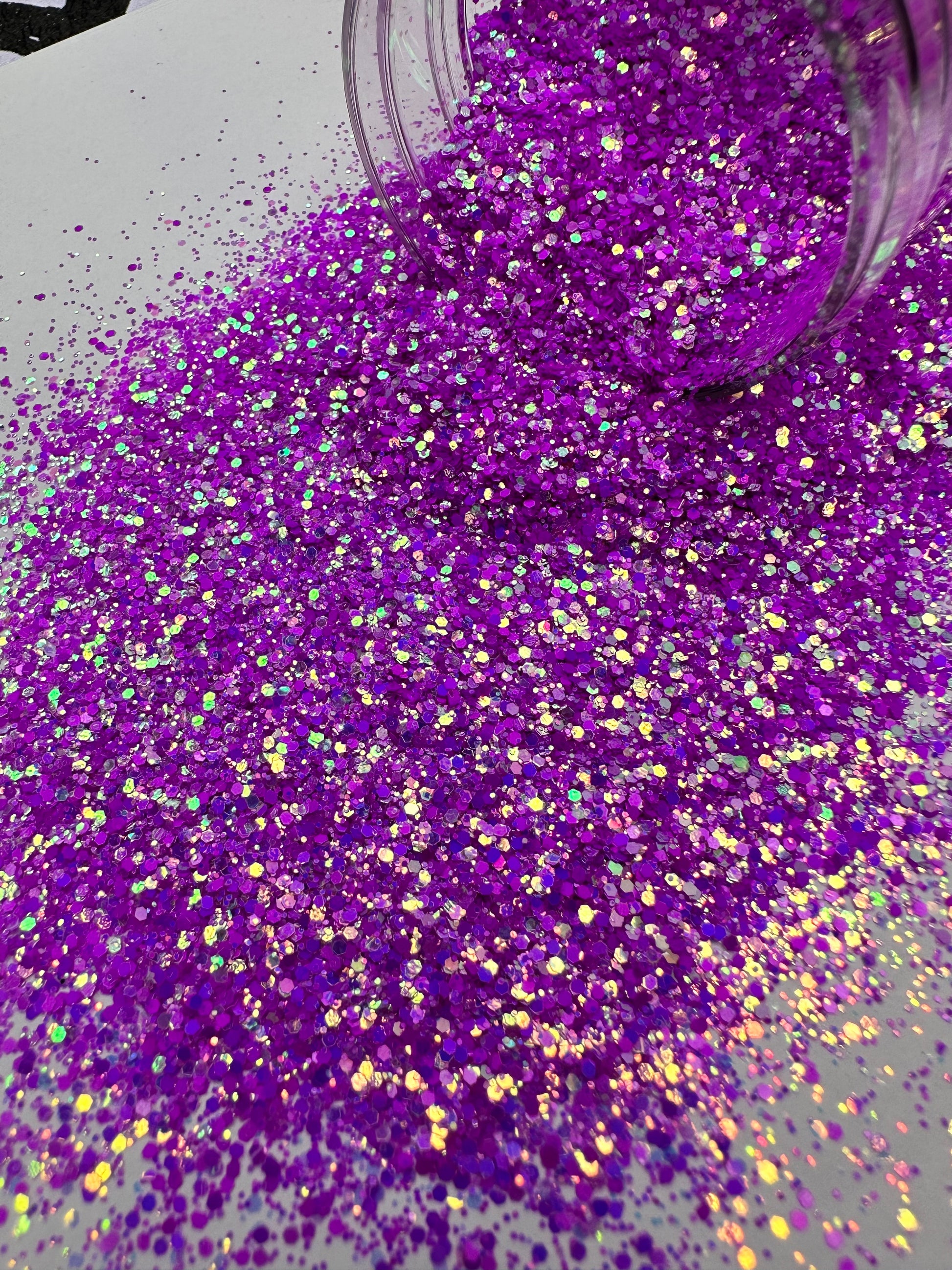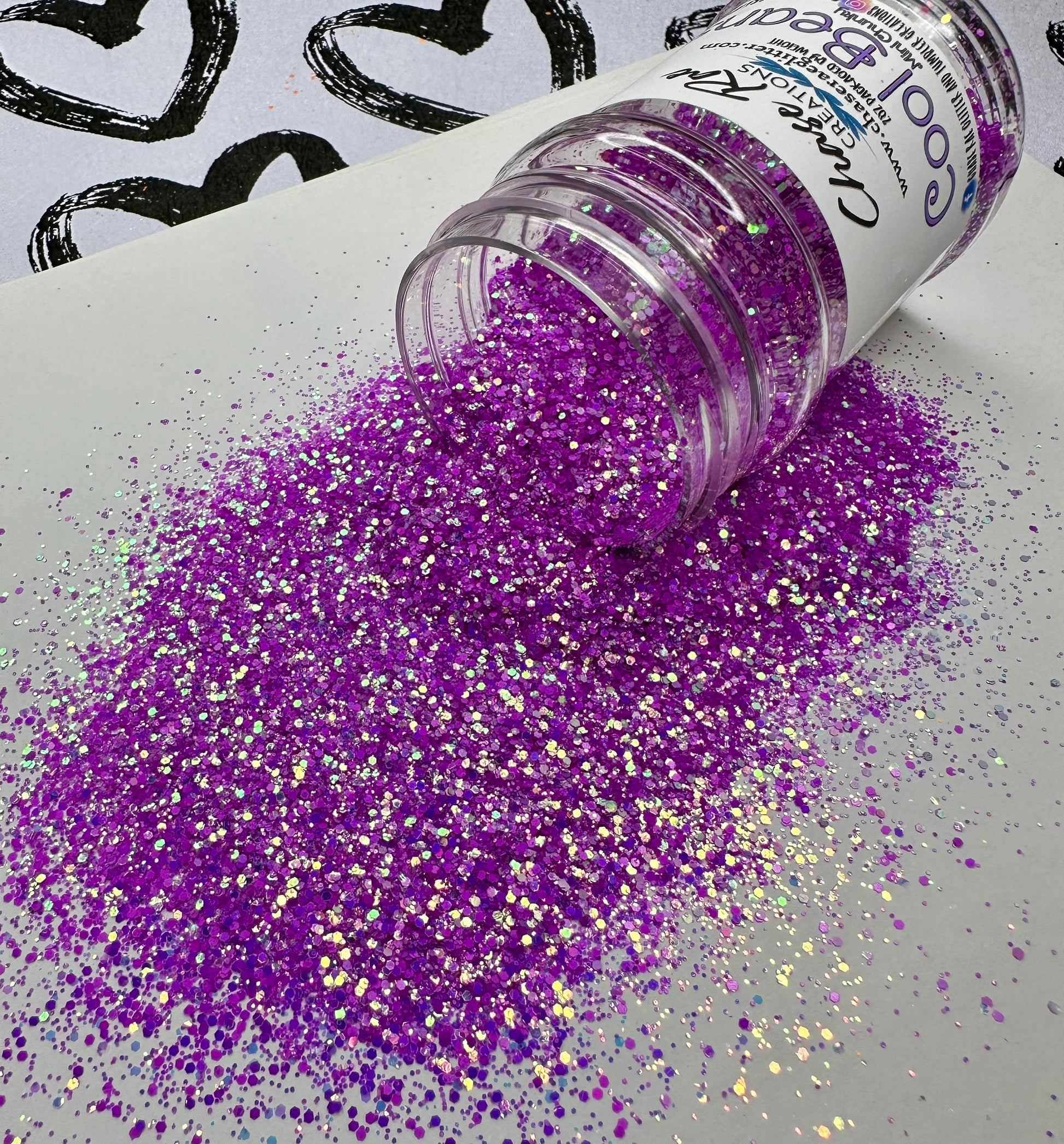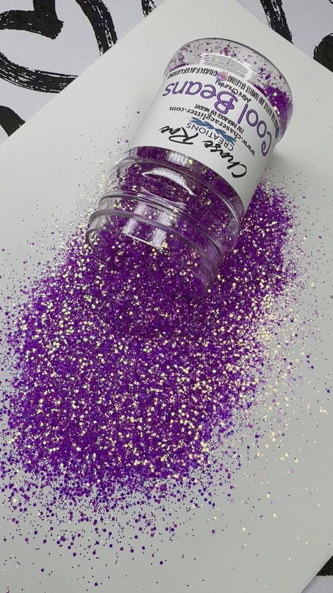 Cool Beans is an amazing iridescent purple. A Bright and fun neon glitter!