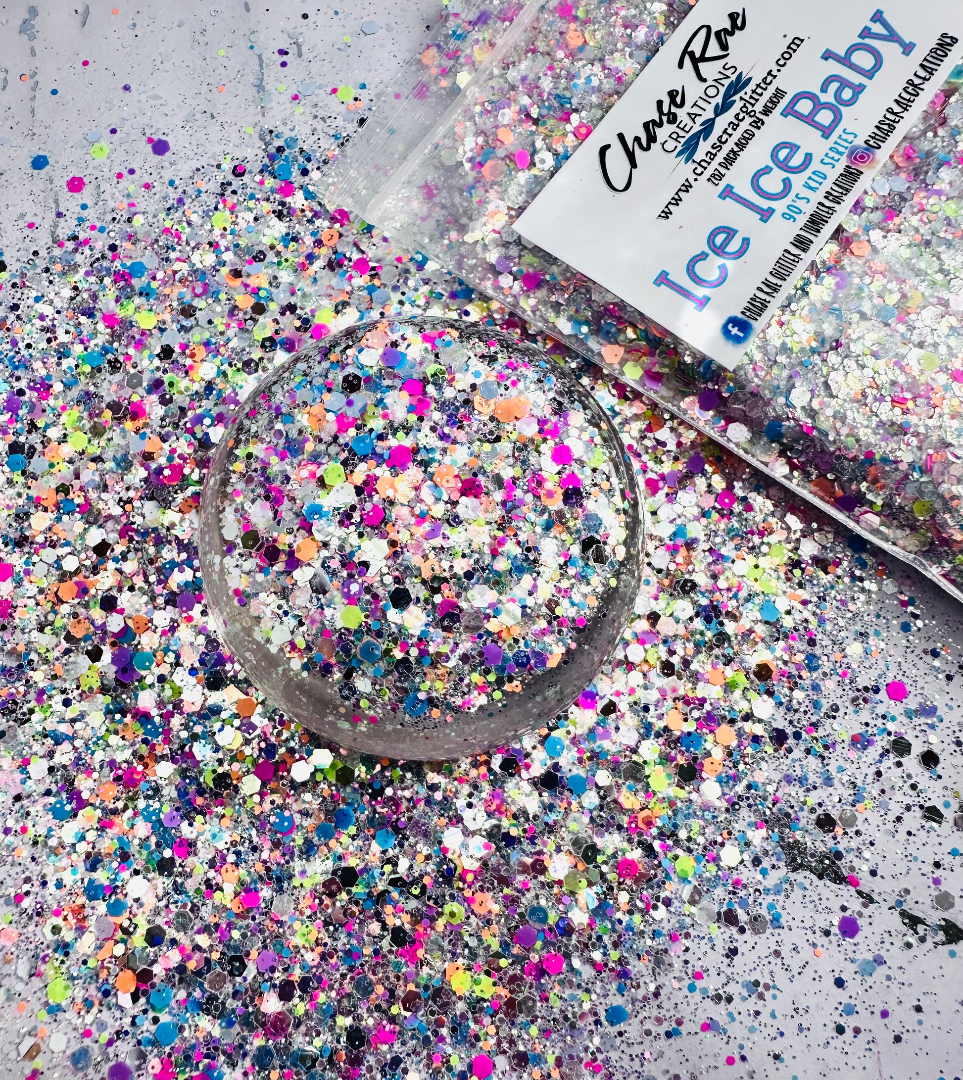 Ice Ice Baby is such a gorgeous mix! Neon colors and mirror pieces make this chunky mix pop!