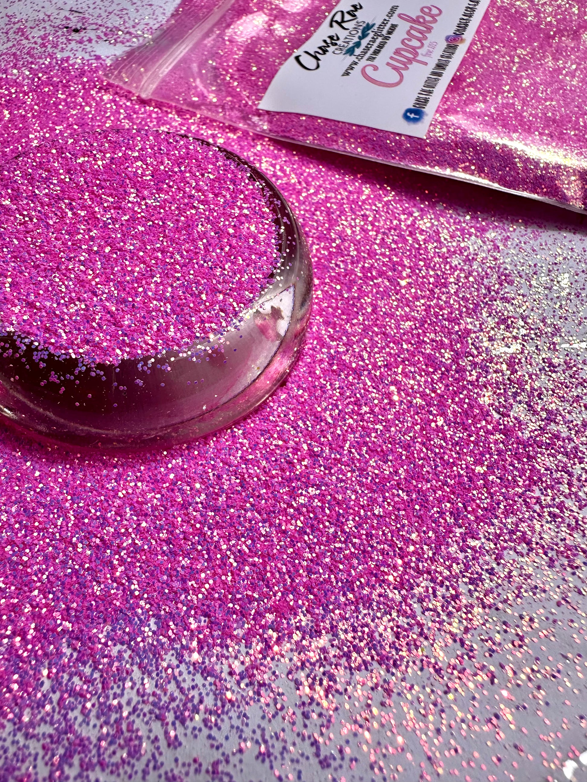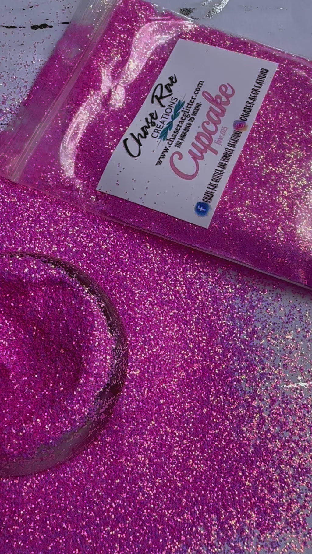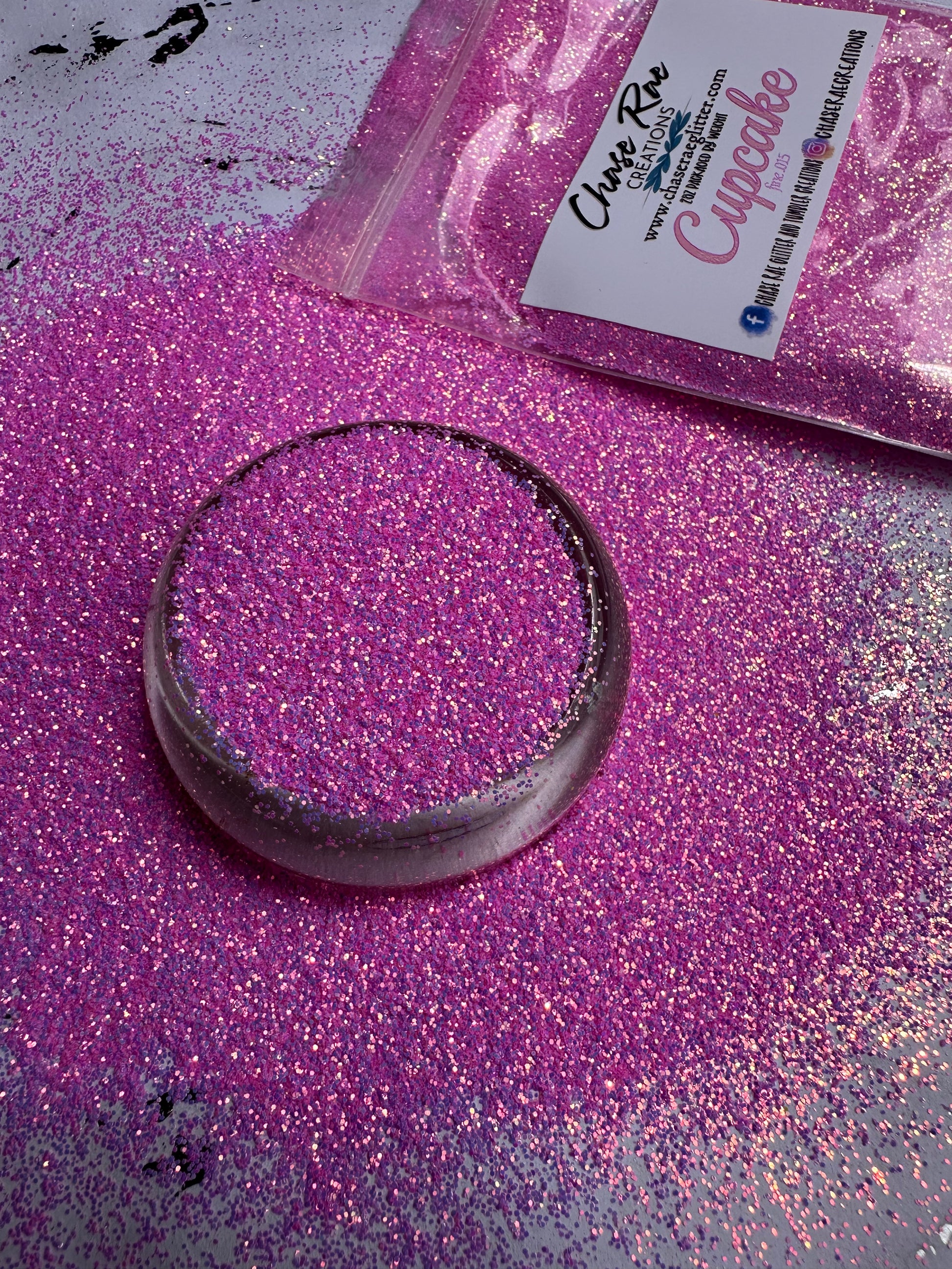 Cupcake is a gorgeous pink glitter. Iridescent, but not translucent.