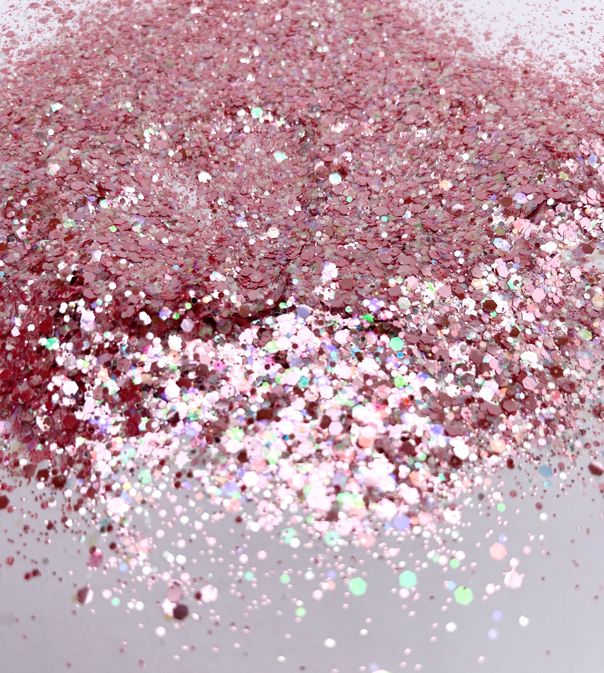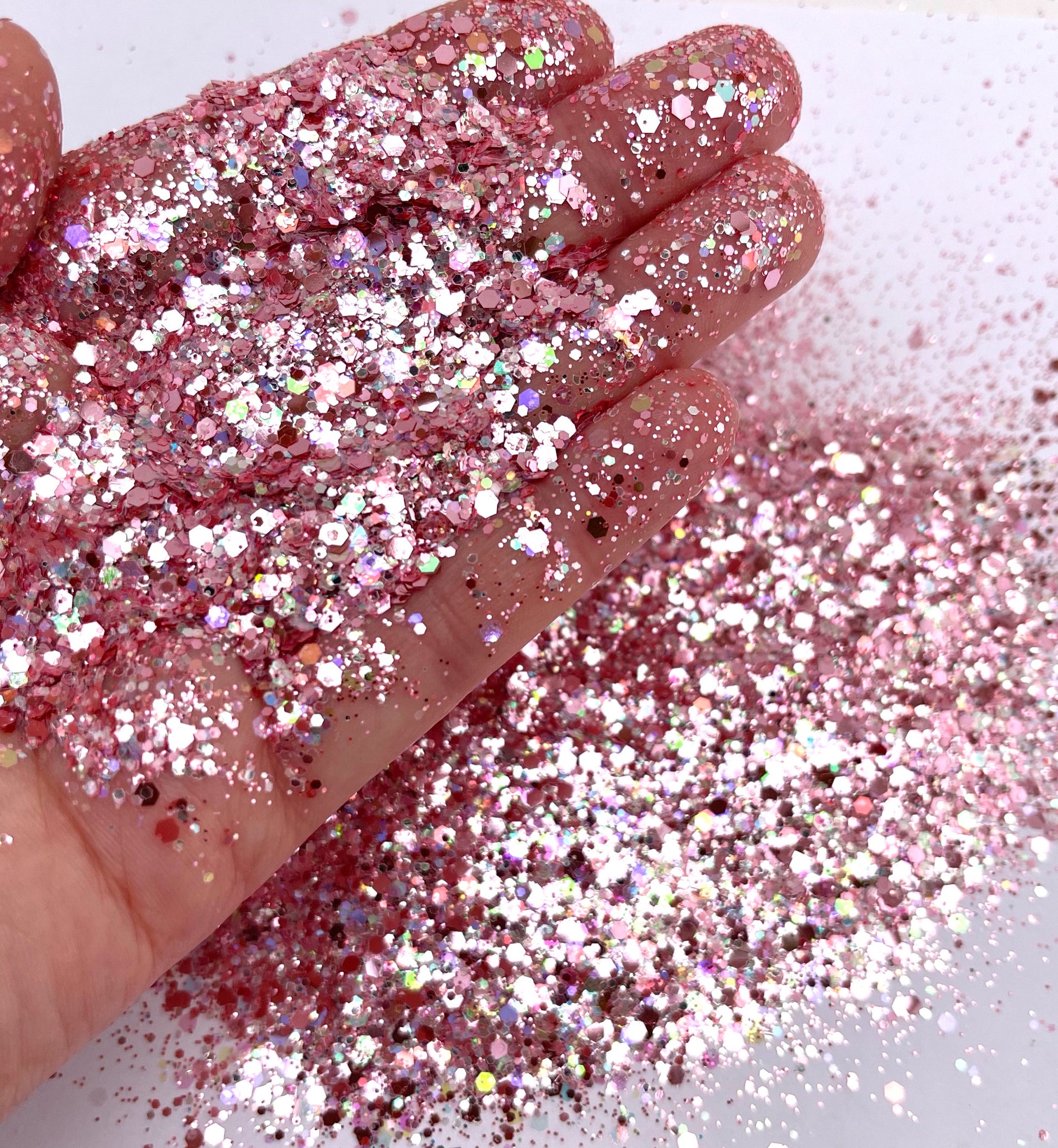 Cupid is stunning pink and opal Chunky mix. All metallic and high sparkle. Pinks, silver and opal. You are sure to love this one!