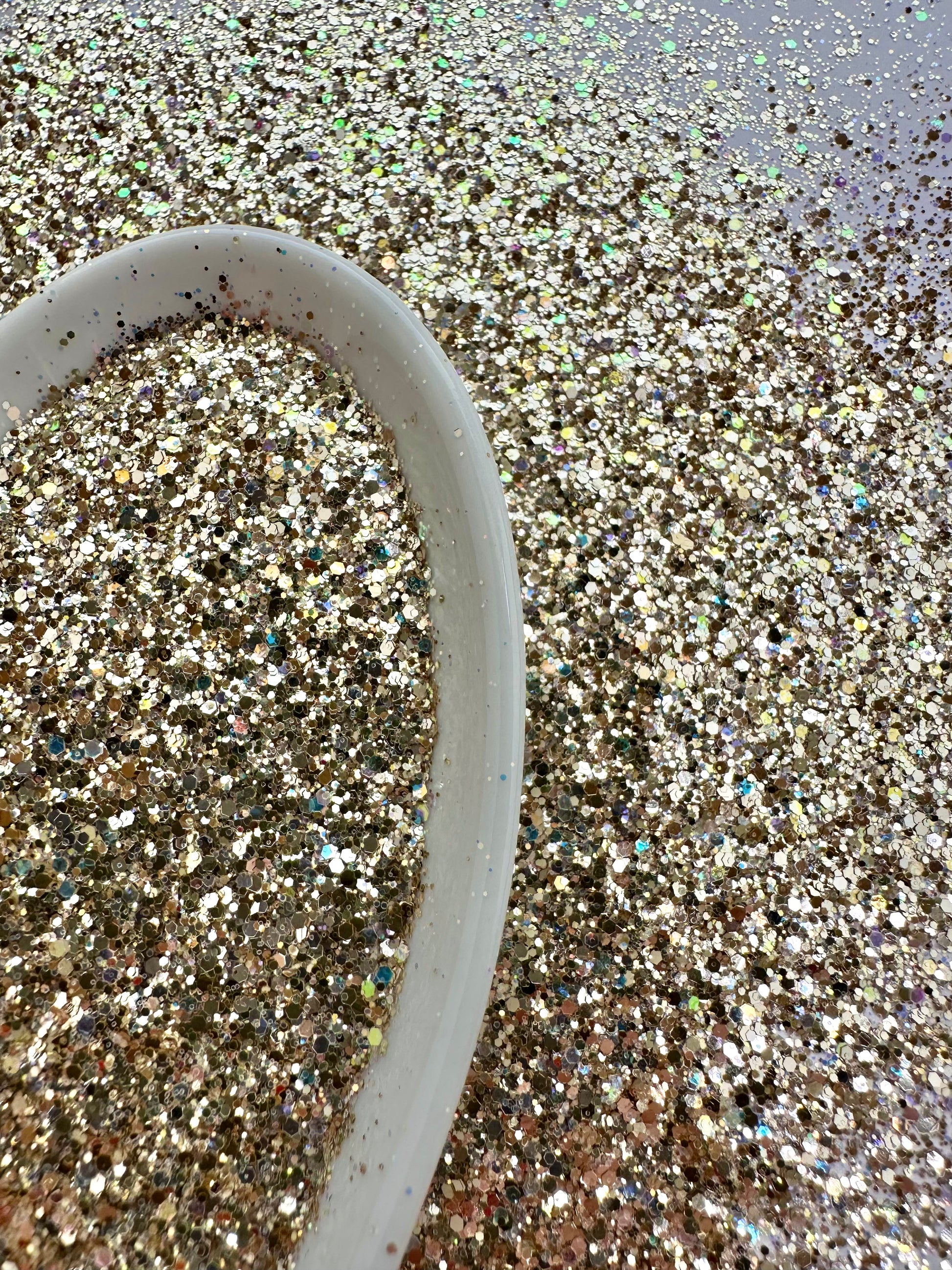 Five Golden Rings is a gorgeous gold mini chunky mix with a bit of silver and opal!