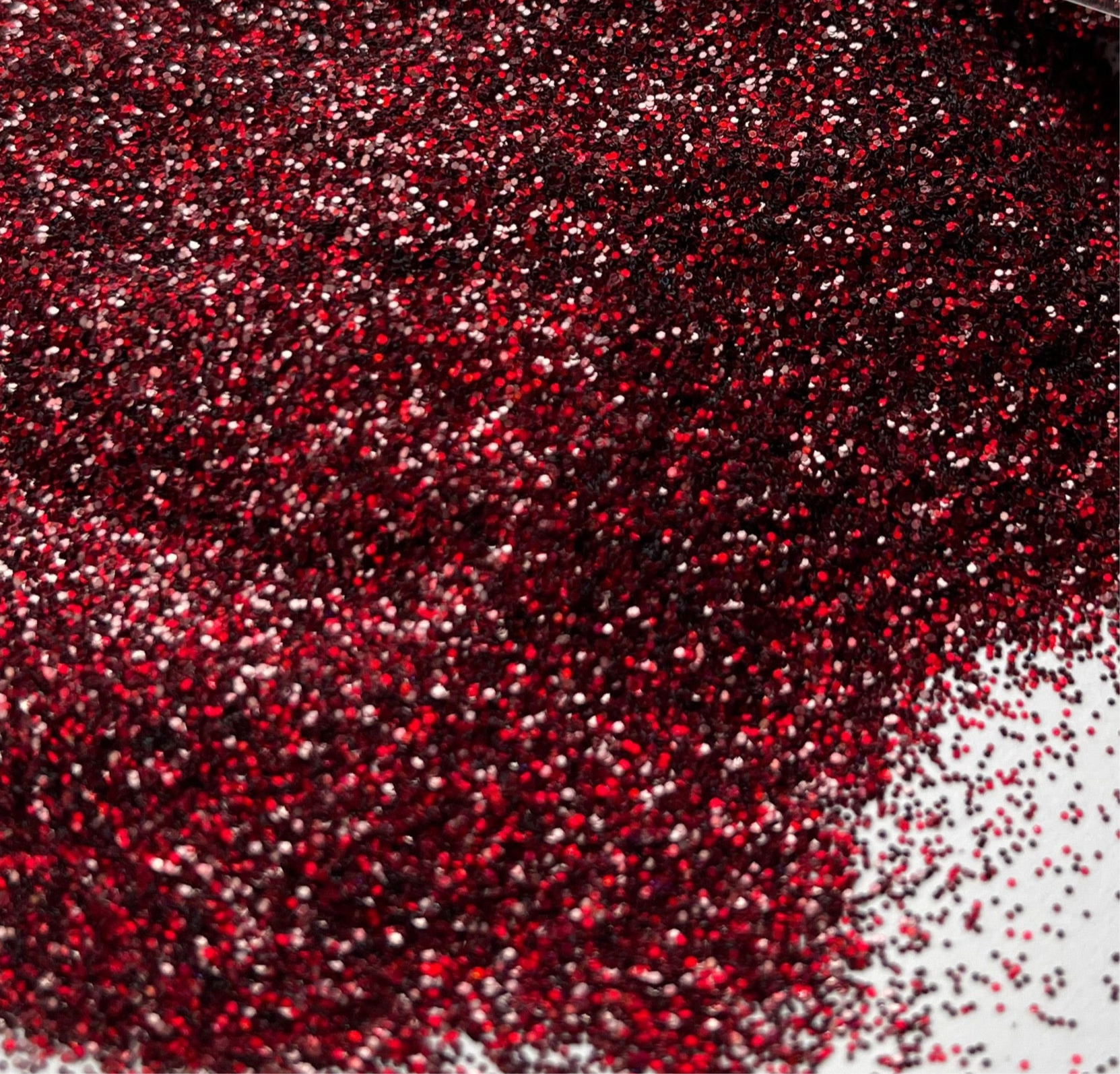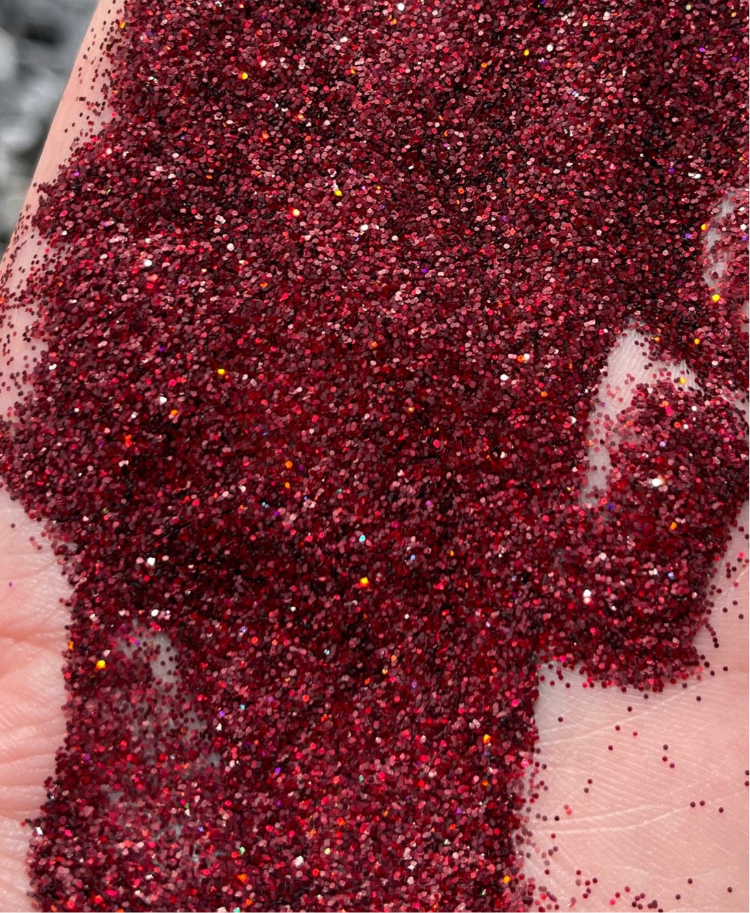 Gash is a holographic deep red fine glitter. All metallic and high sparkle.