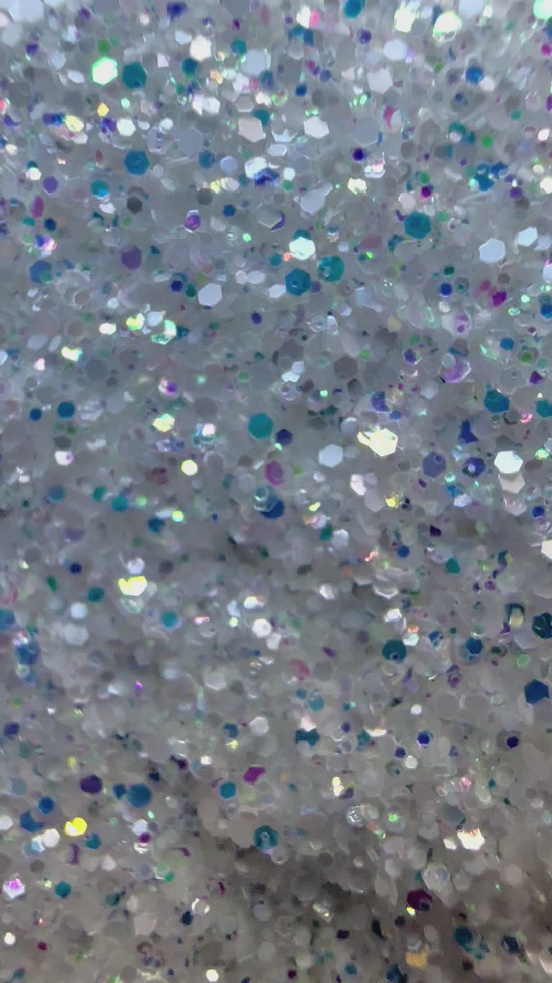 Glisten is a semi-transparent glitter with some mirror pieces to create a great sparkle! Hints of blue make it look like glistening snow!! Also has some pearl shimmer.