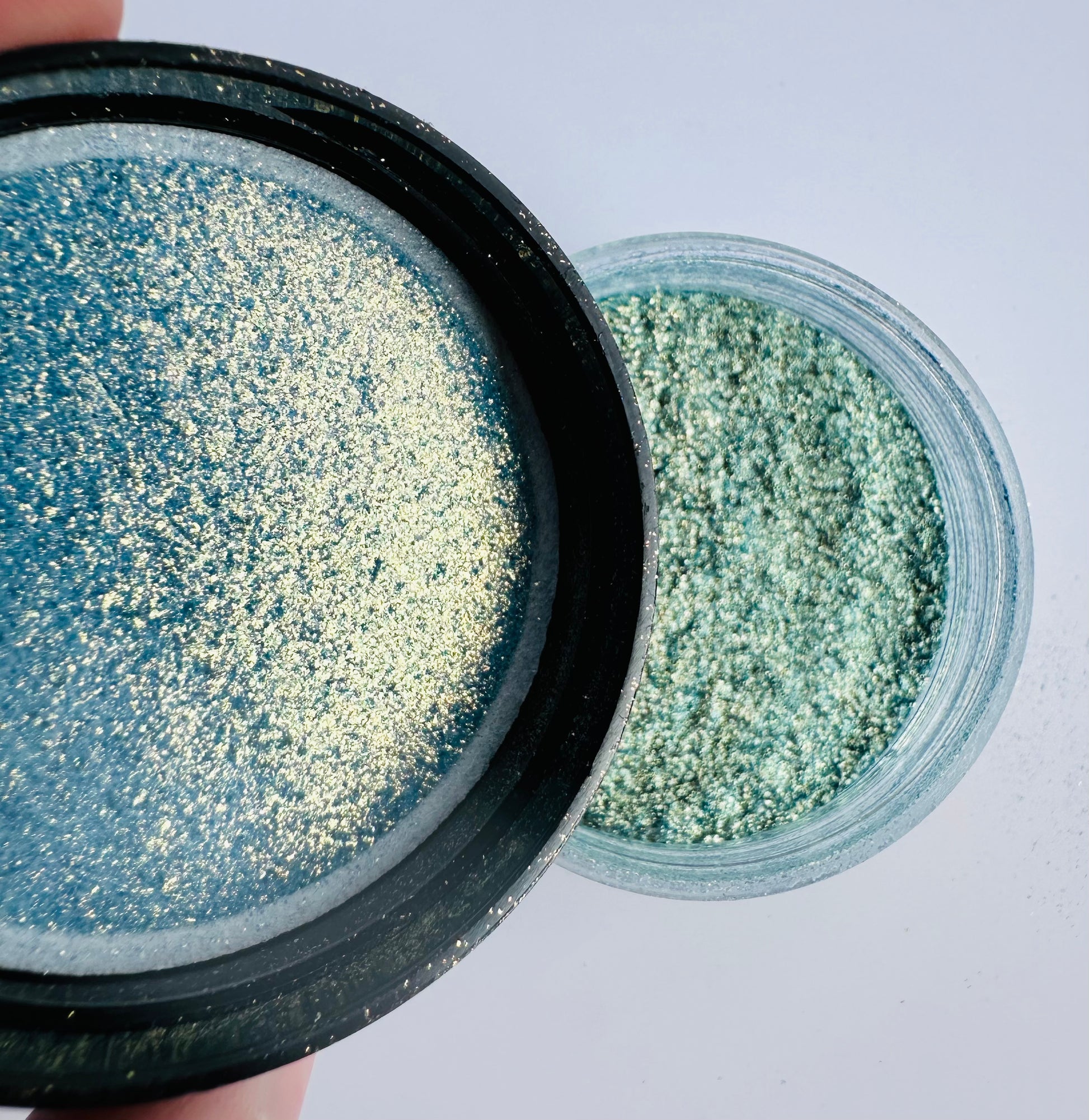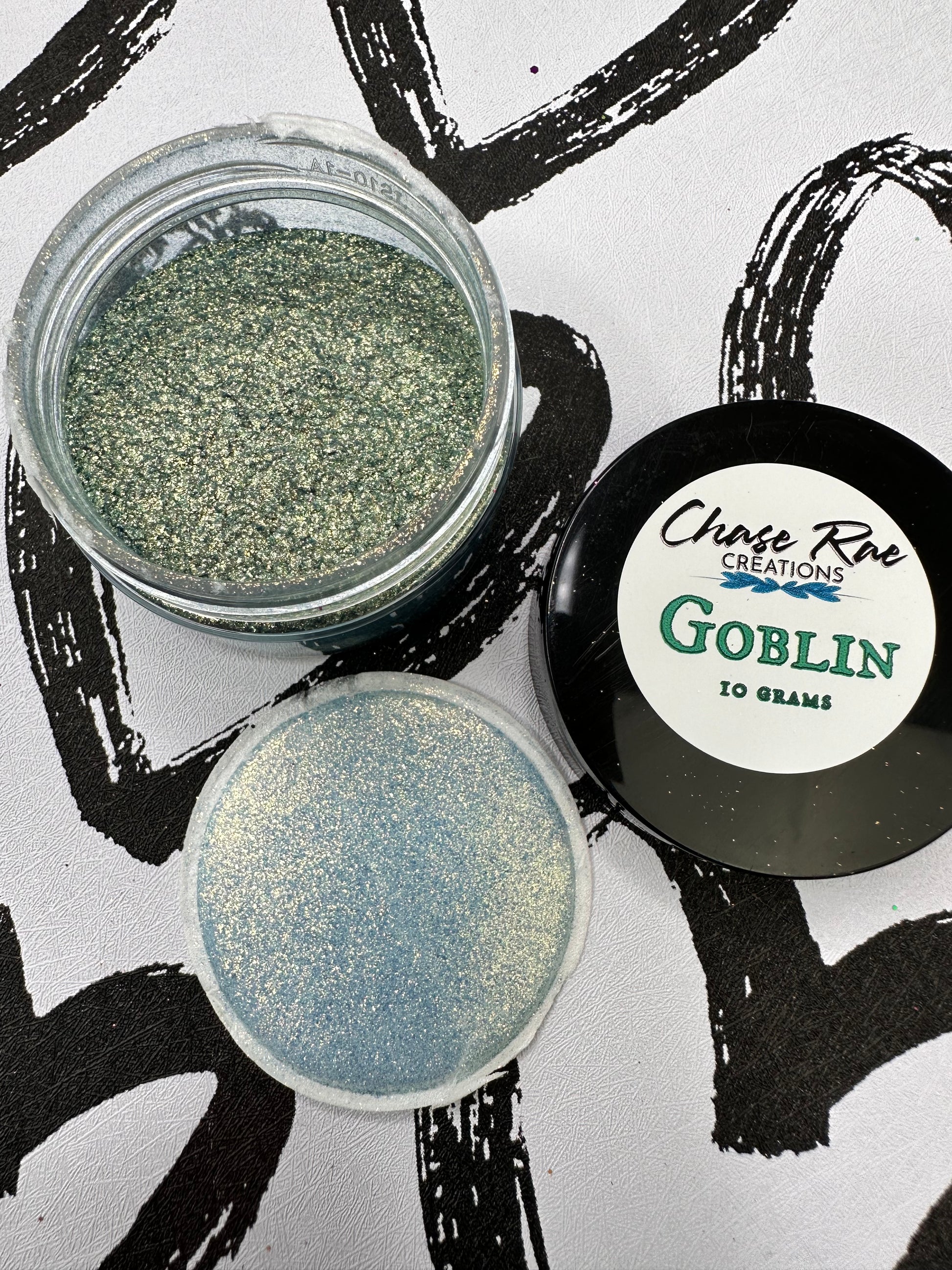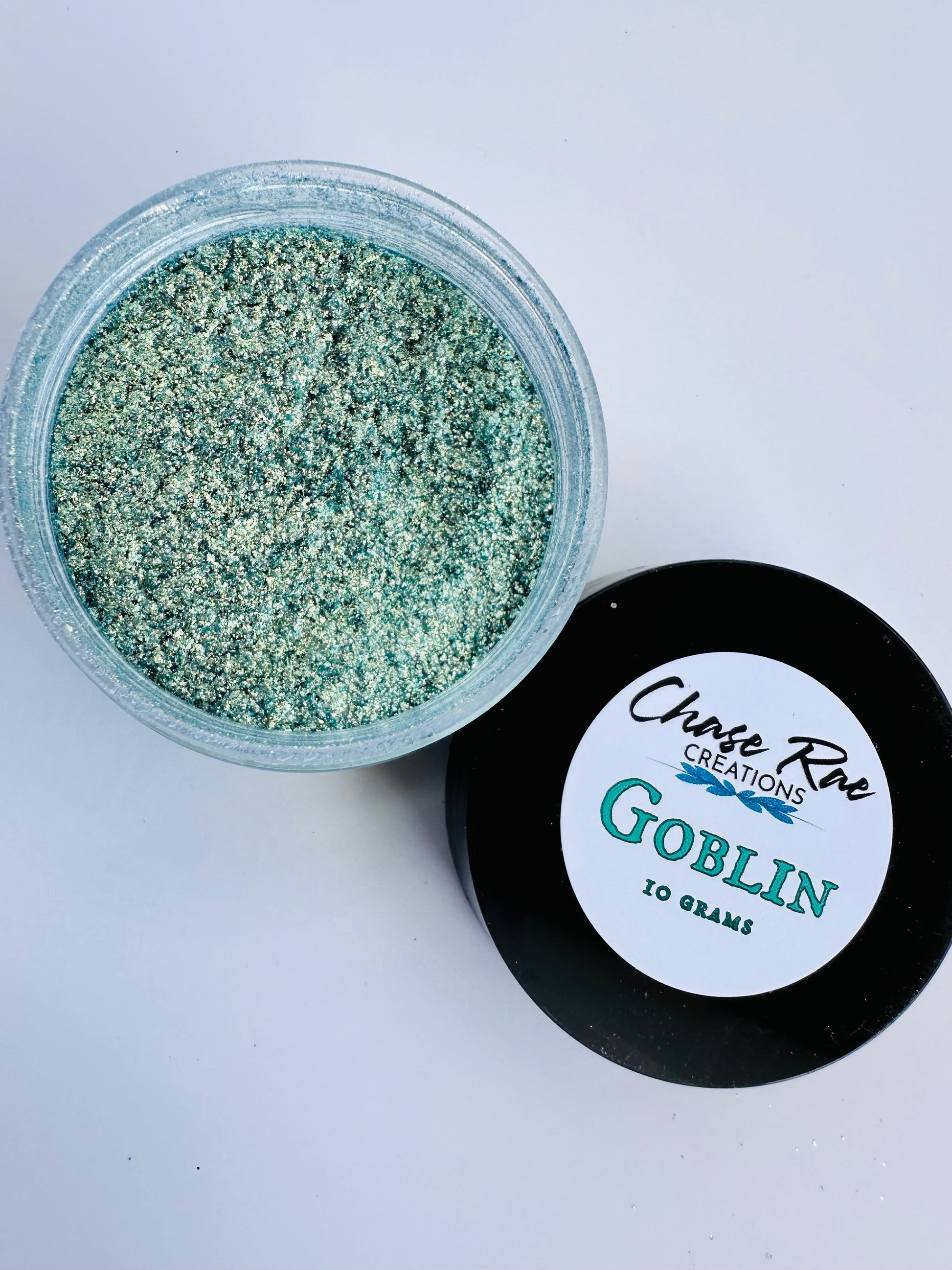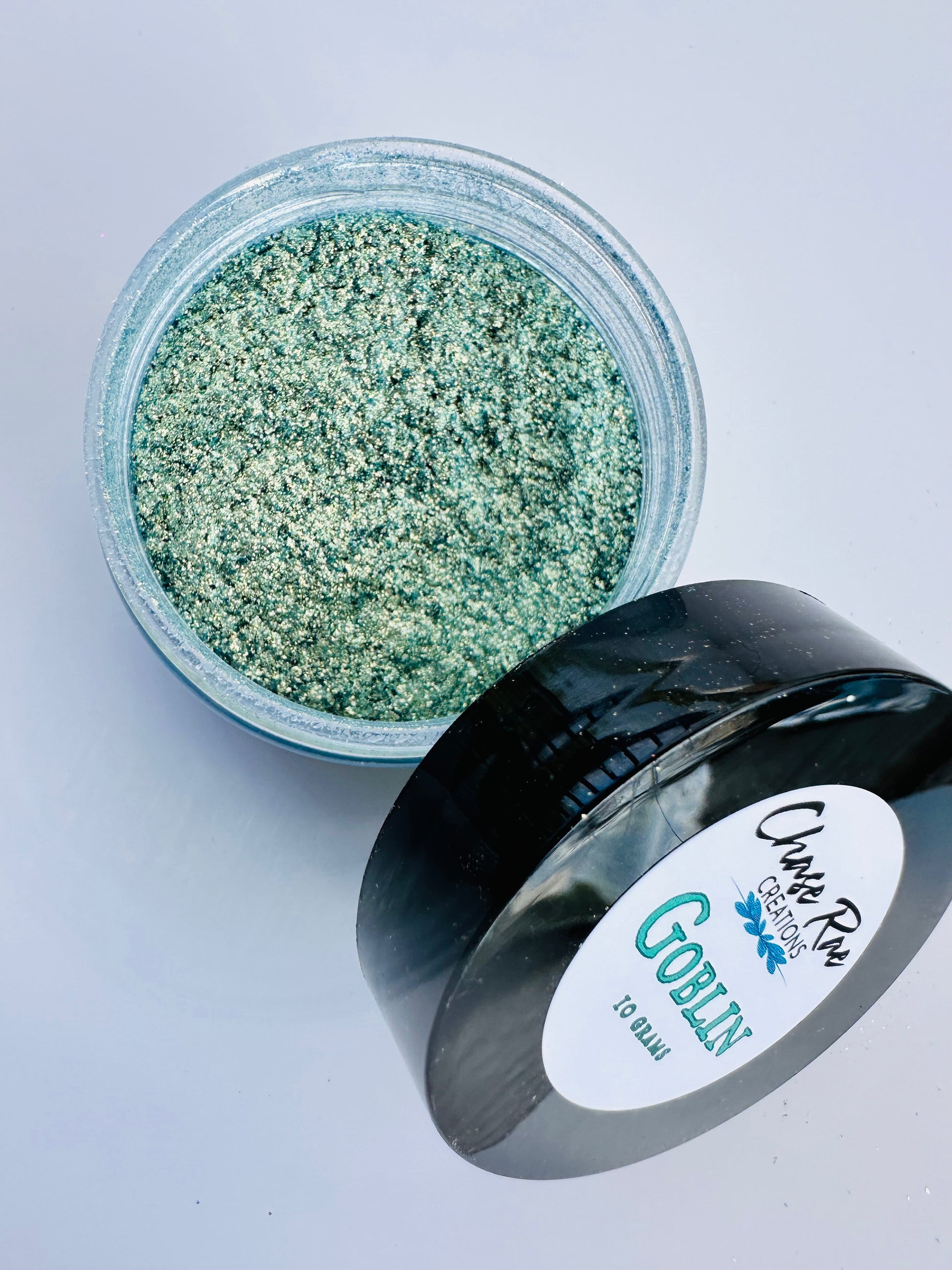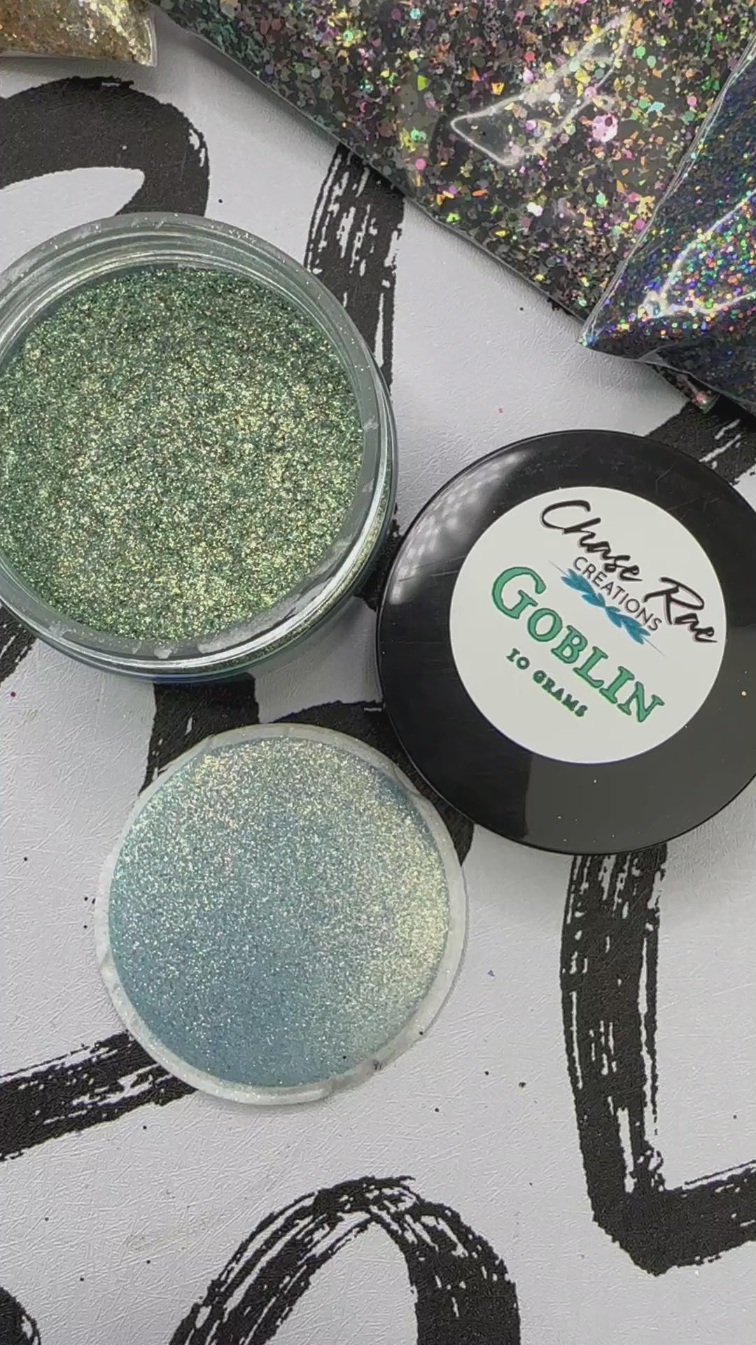 Goblin is a gorgeous, green pearl mica flake with a slight blue undertone. Has an amazing shimmer!