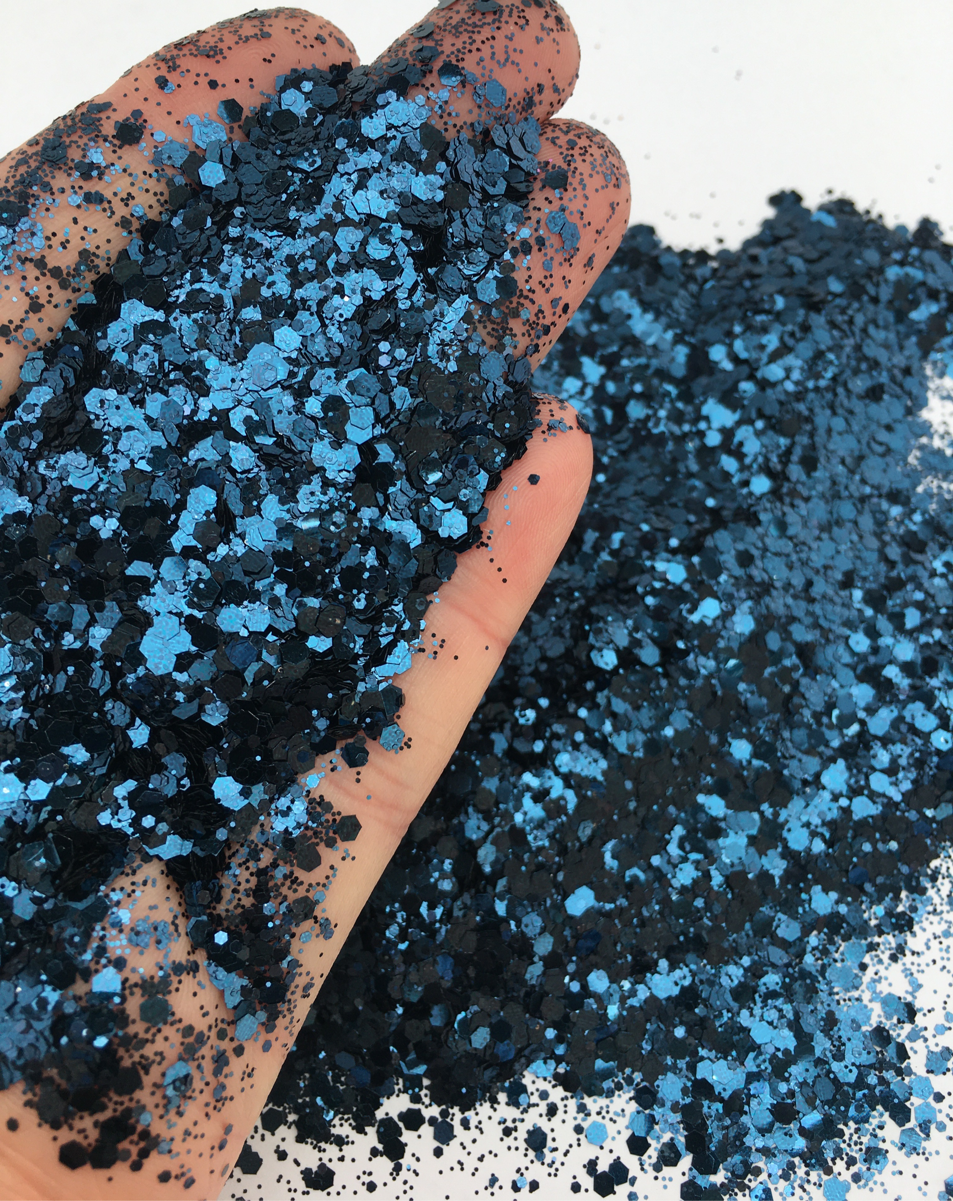 Gravity is a navy / midnight blue chunky mix. All metallic.