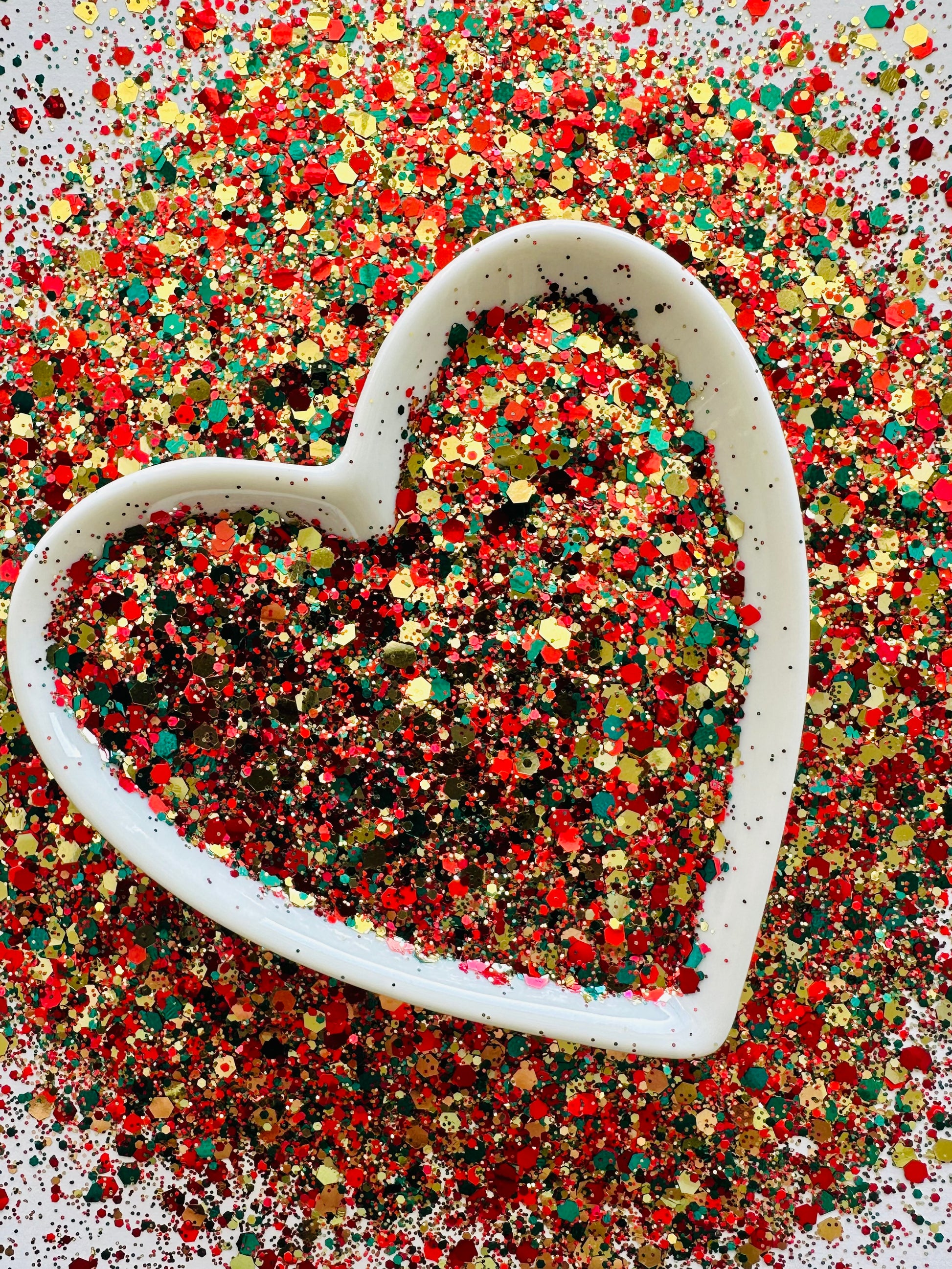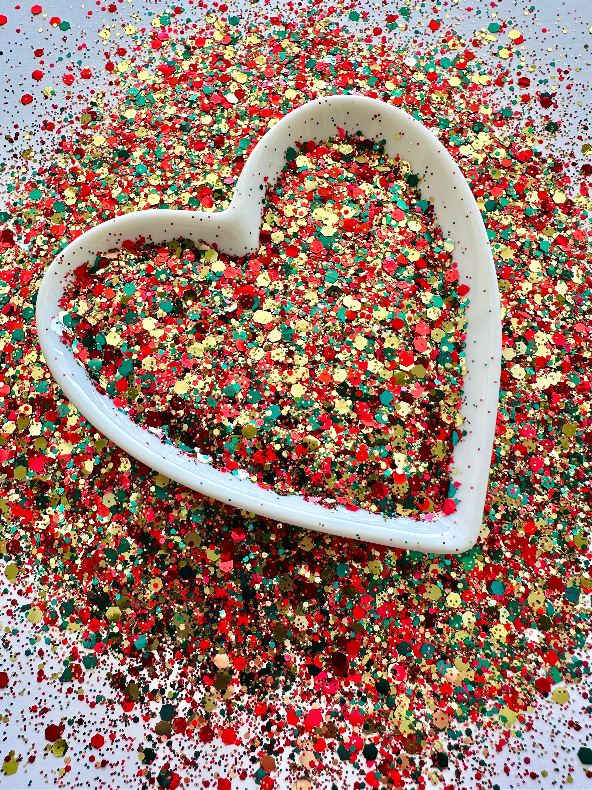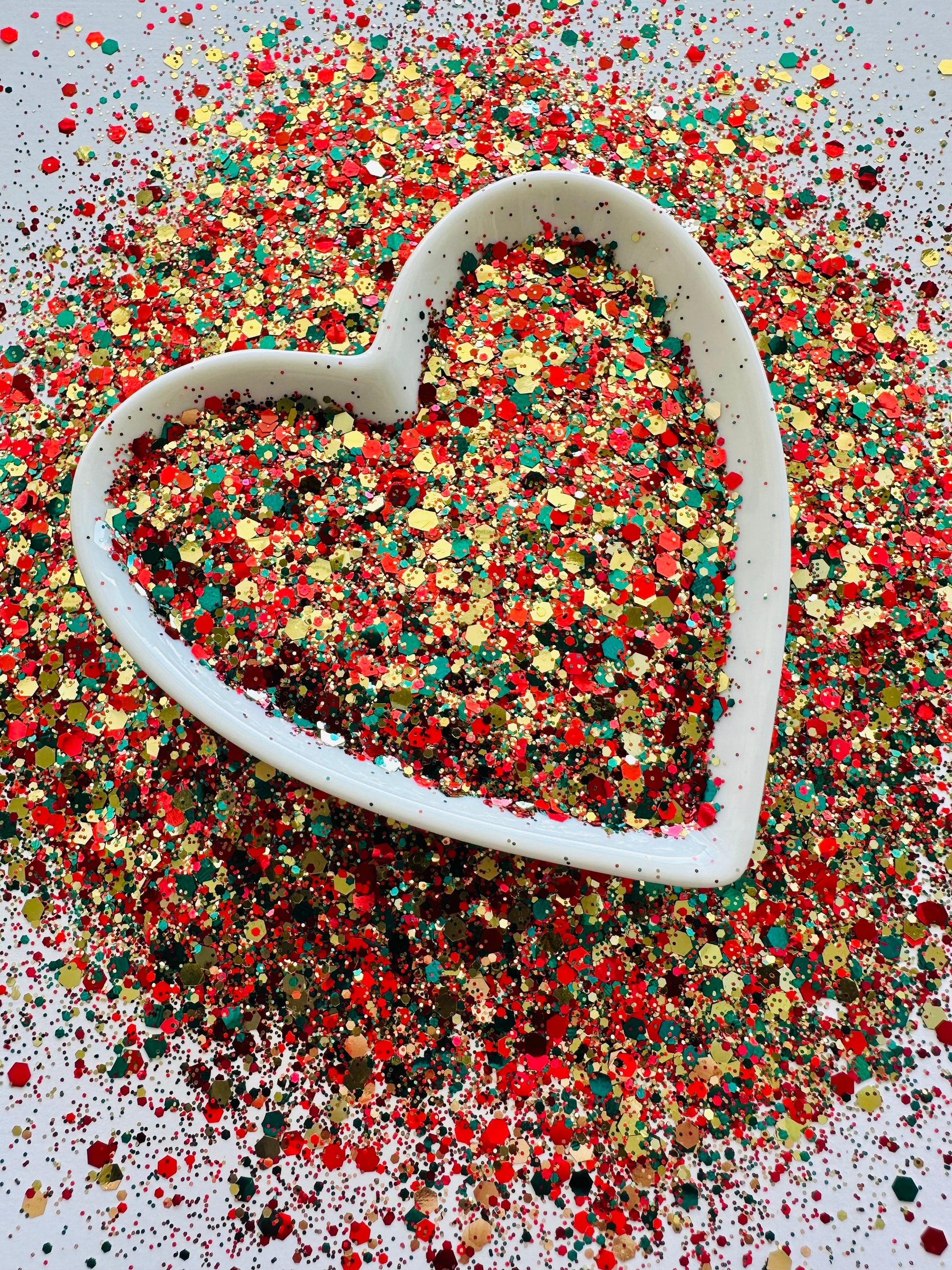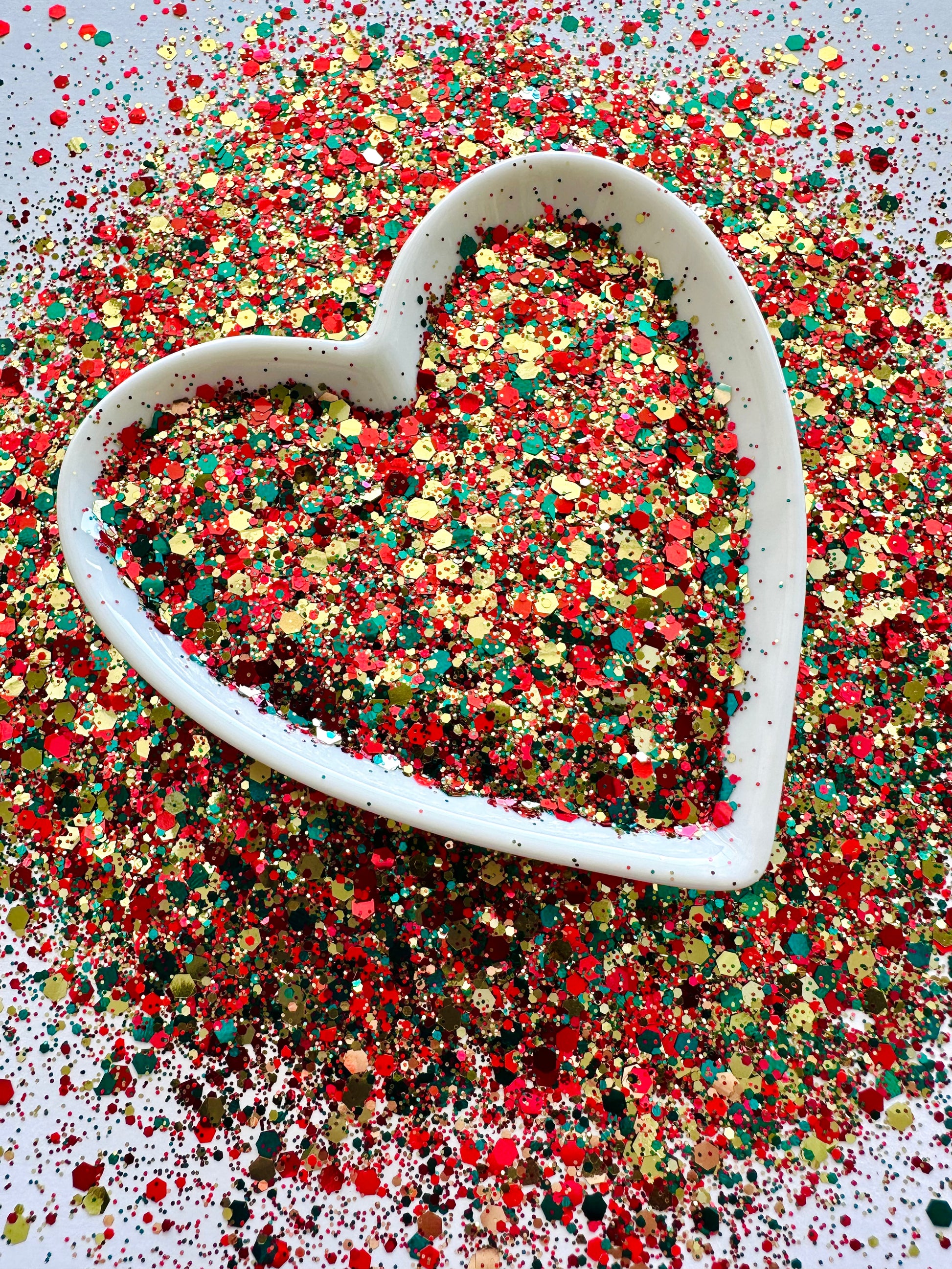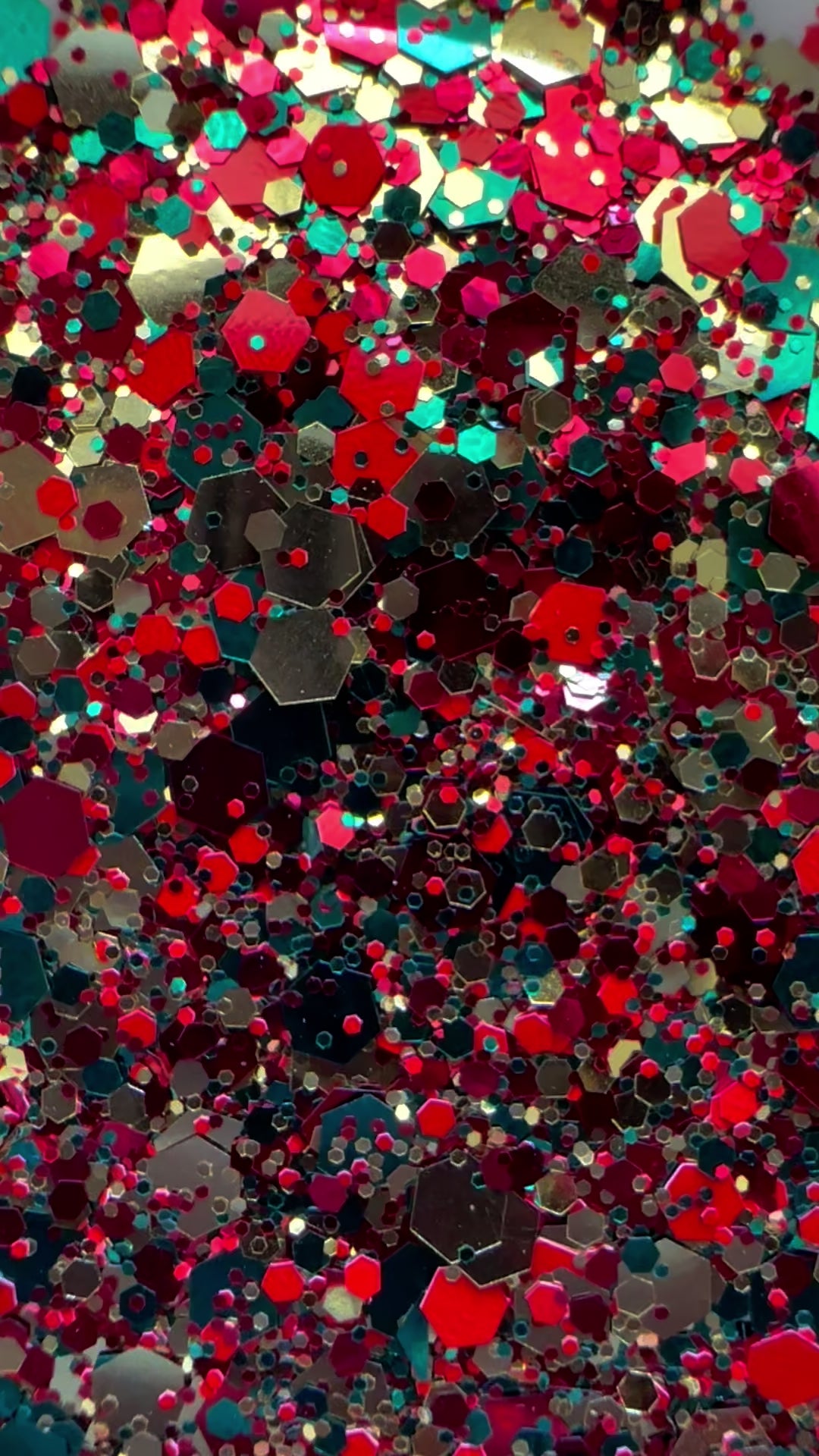 Hallmark Movie is a chunky mix of gold, green and red. Perfect for Christmas!! All metallic.