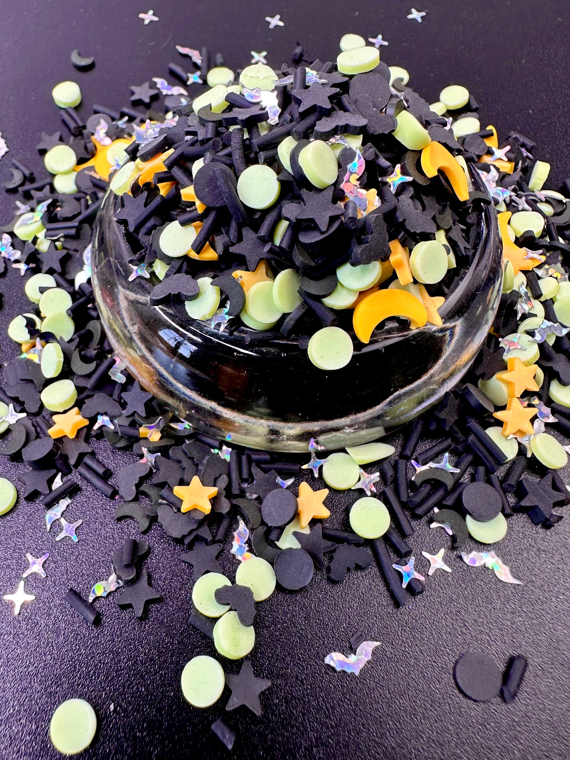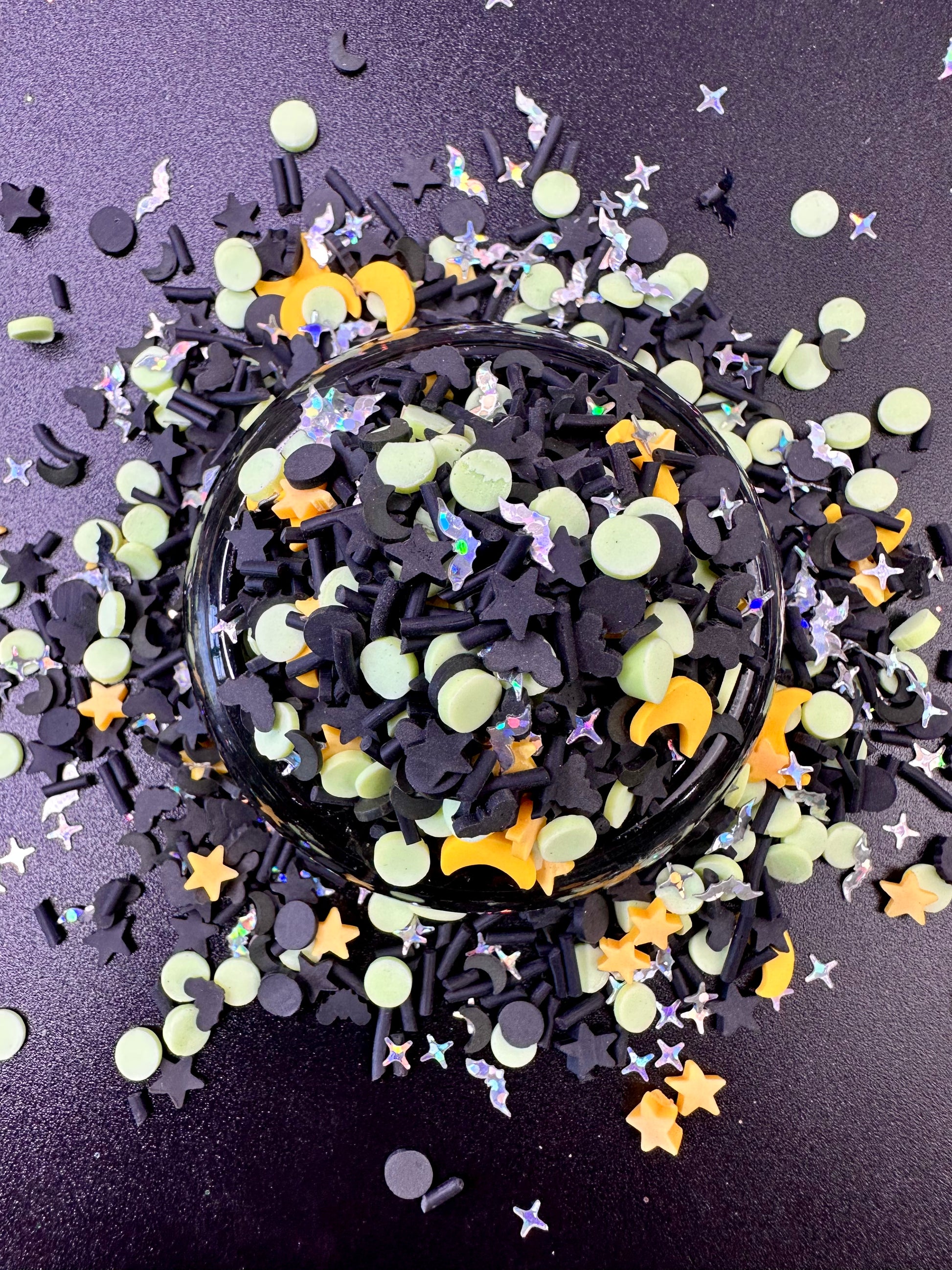 This mix has bats, stars, moons, and circles. Some holographic pieces as well. These are perfect for Halloween projects