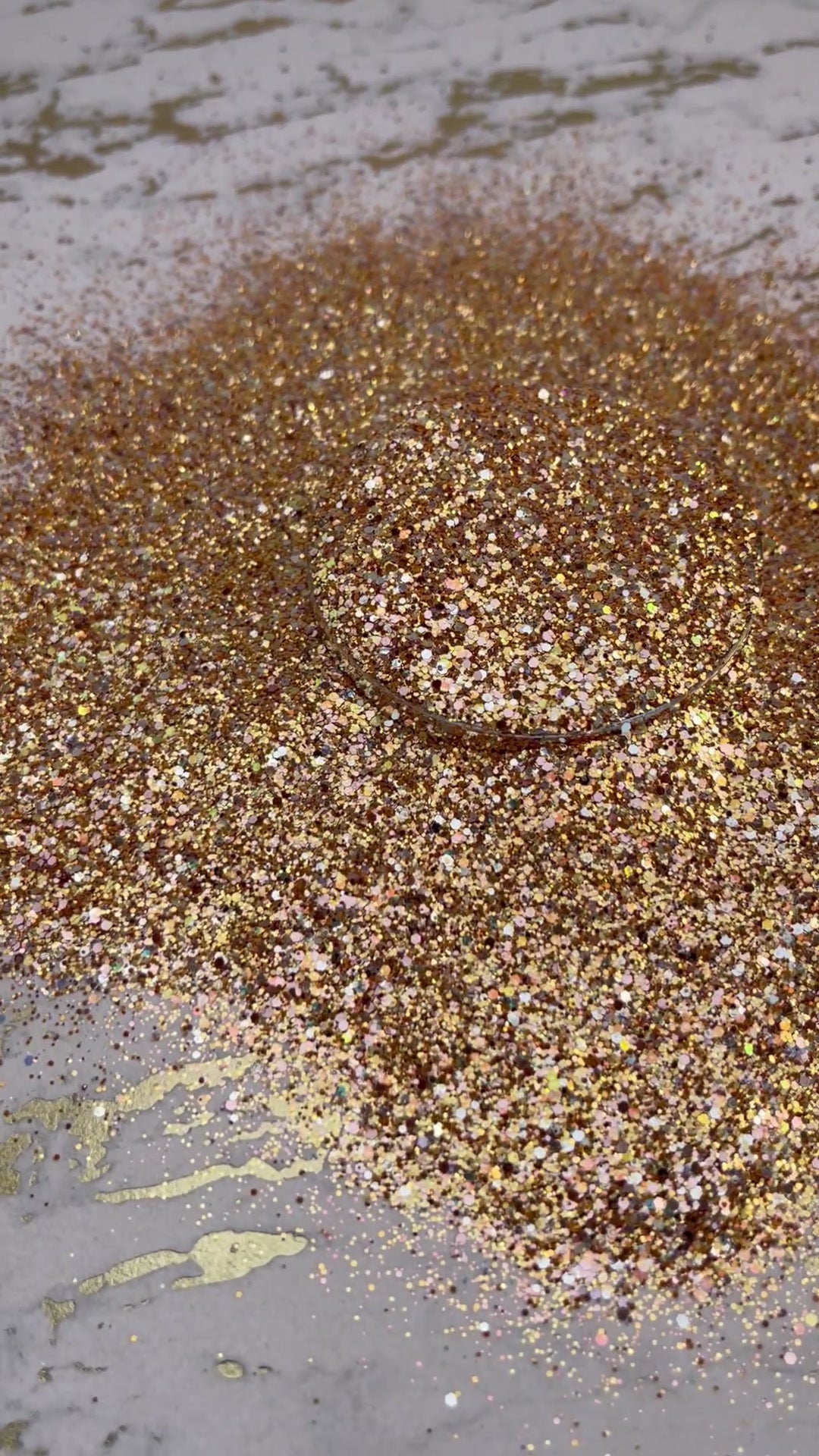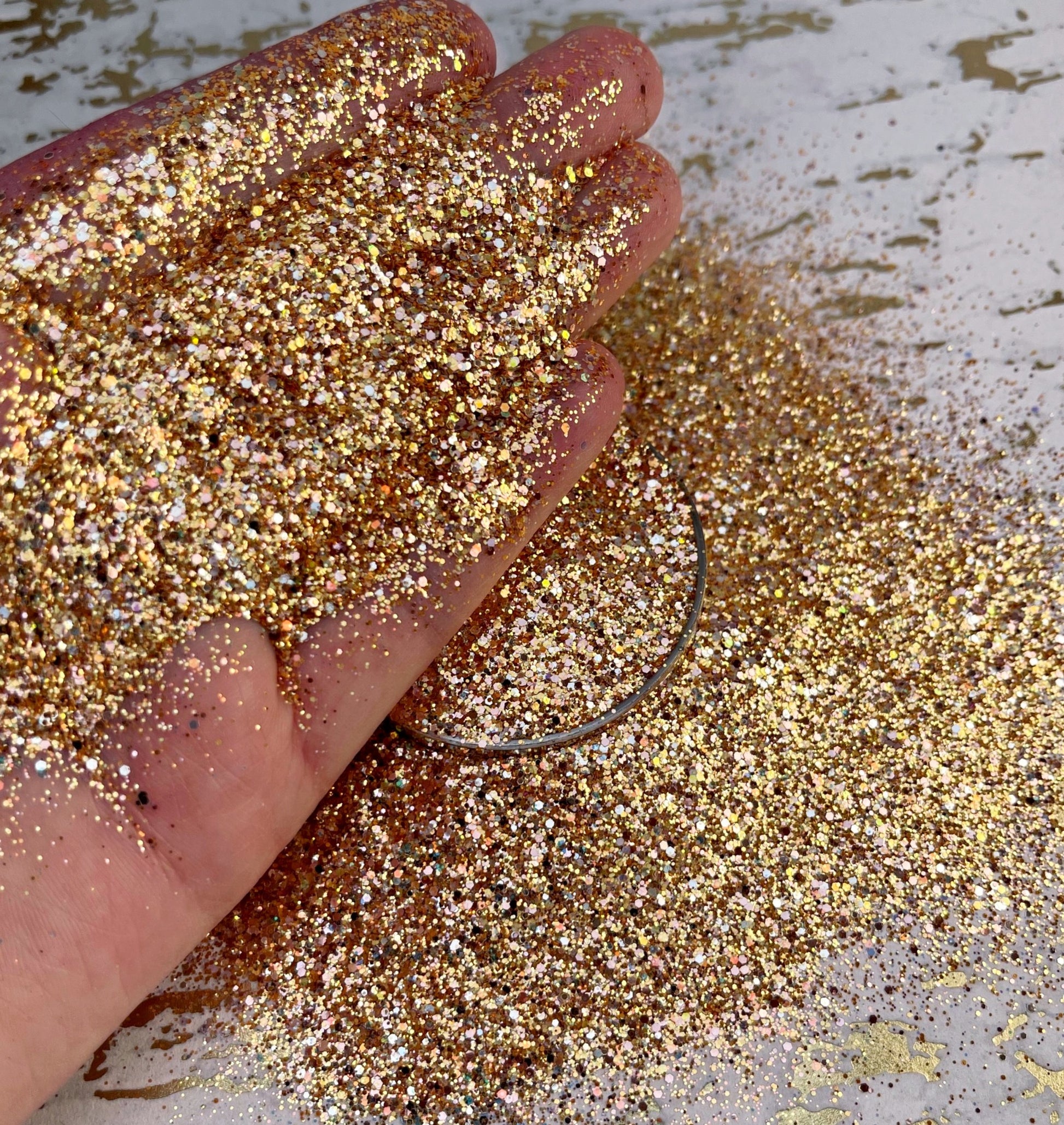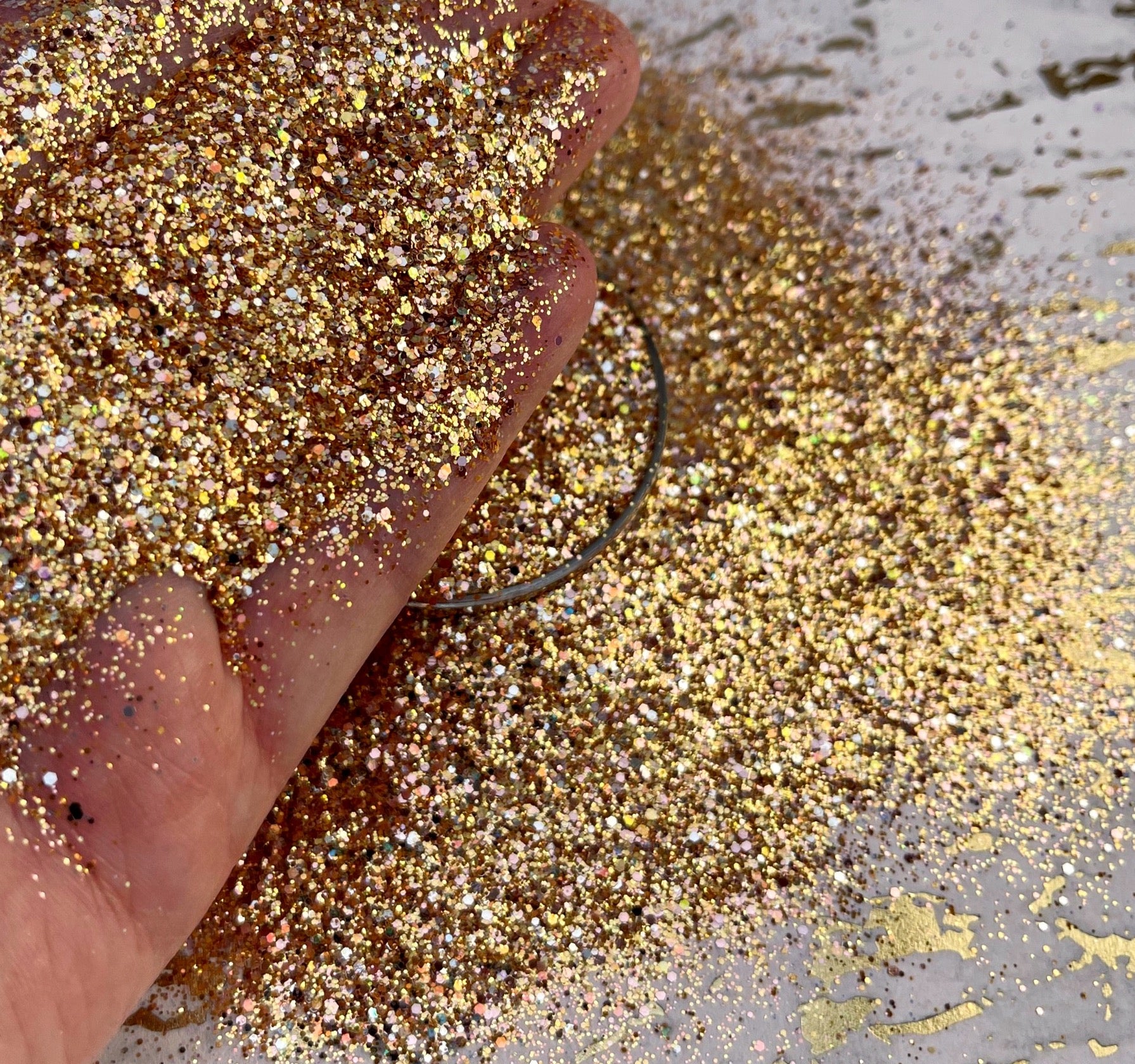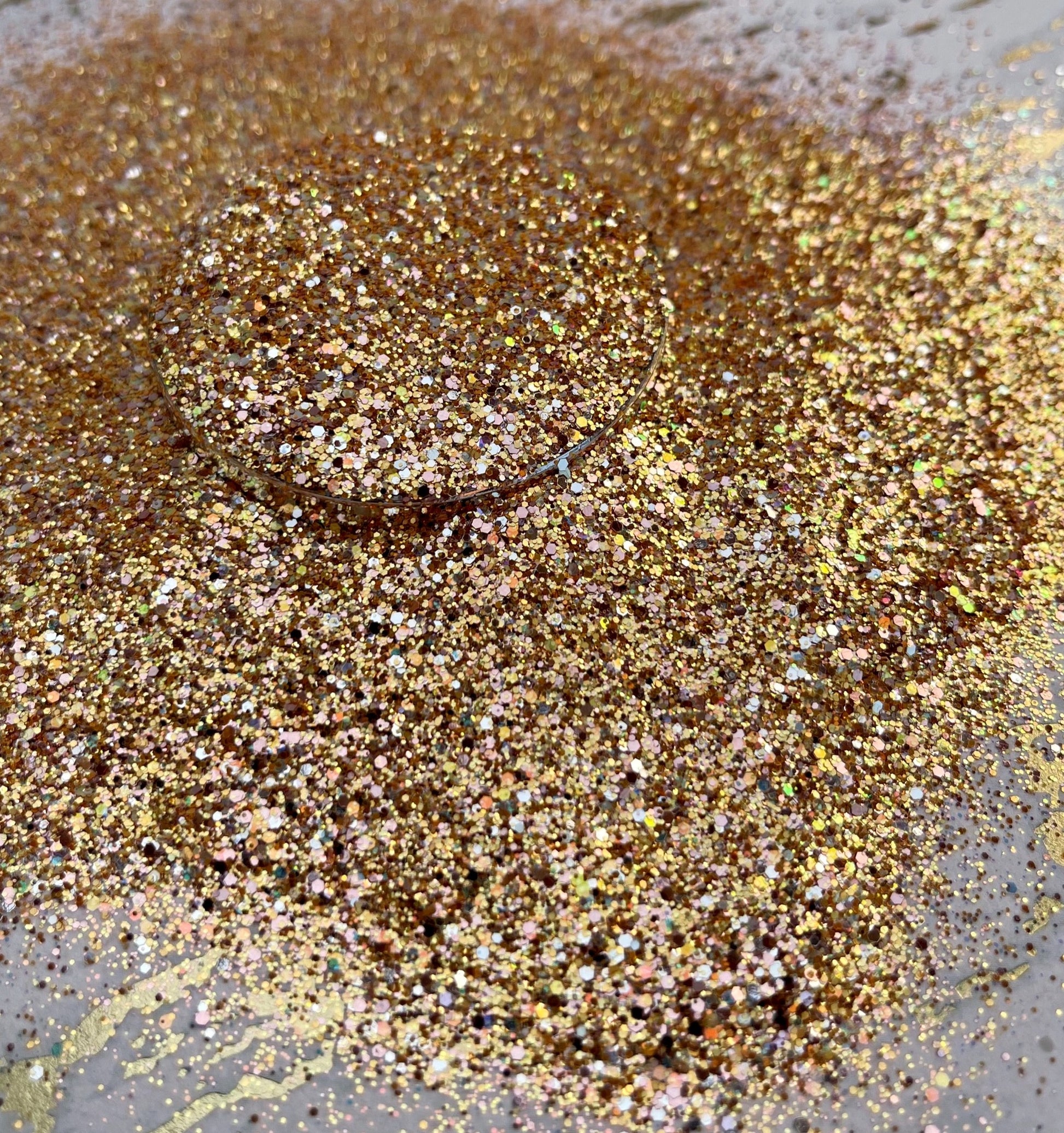 Hayride is a mini chunky mix. Warm gold and a bit of silver and opal make up this gorgeous mix!