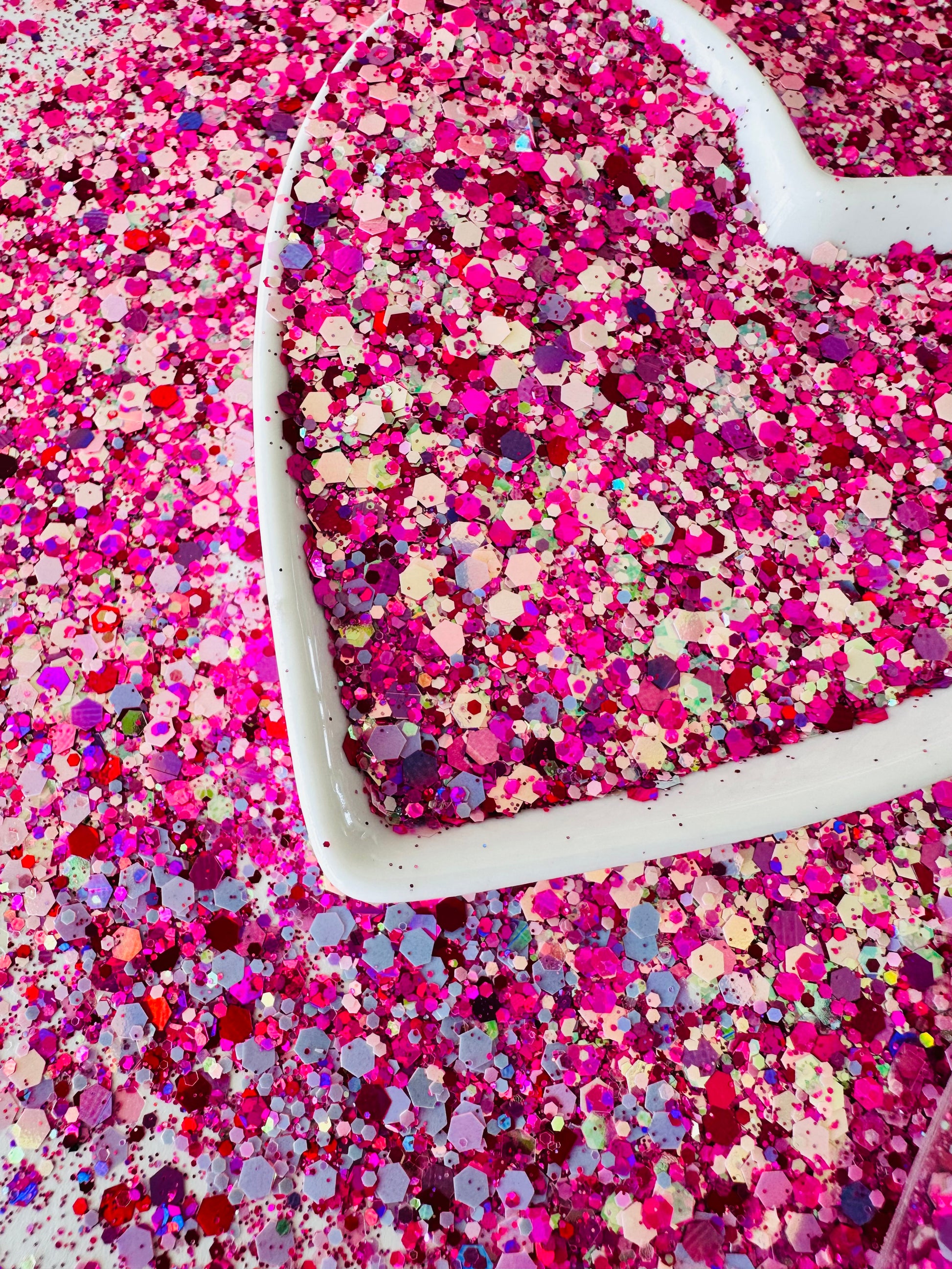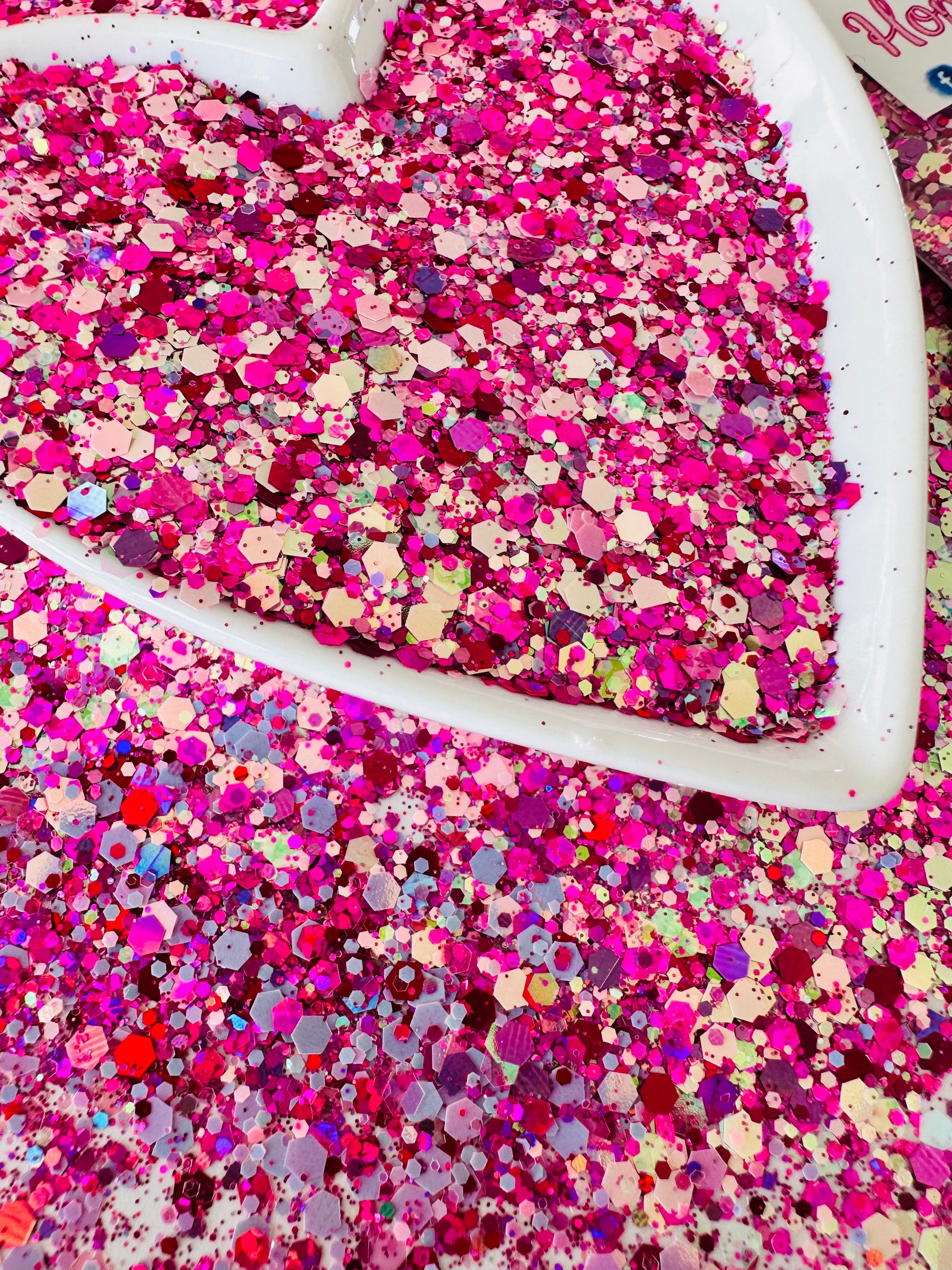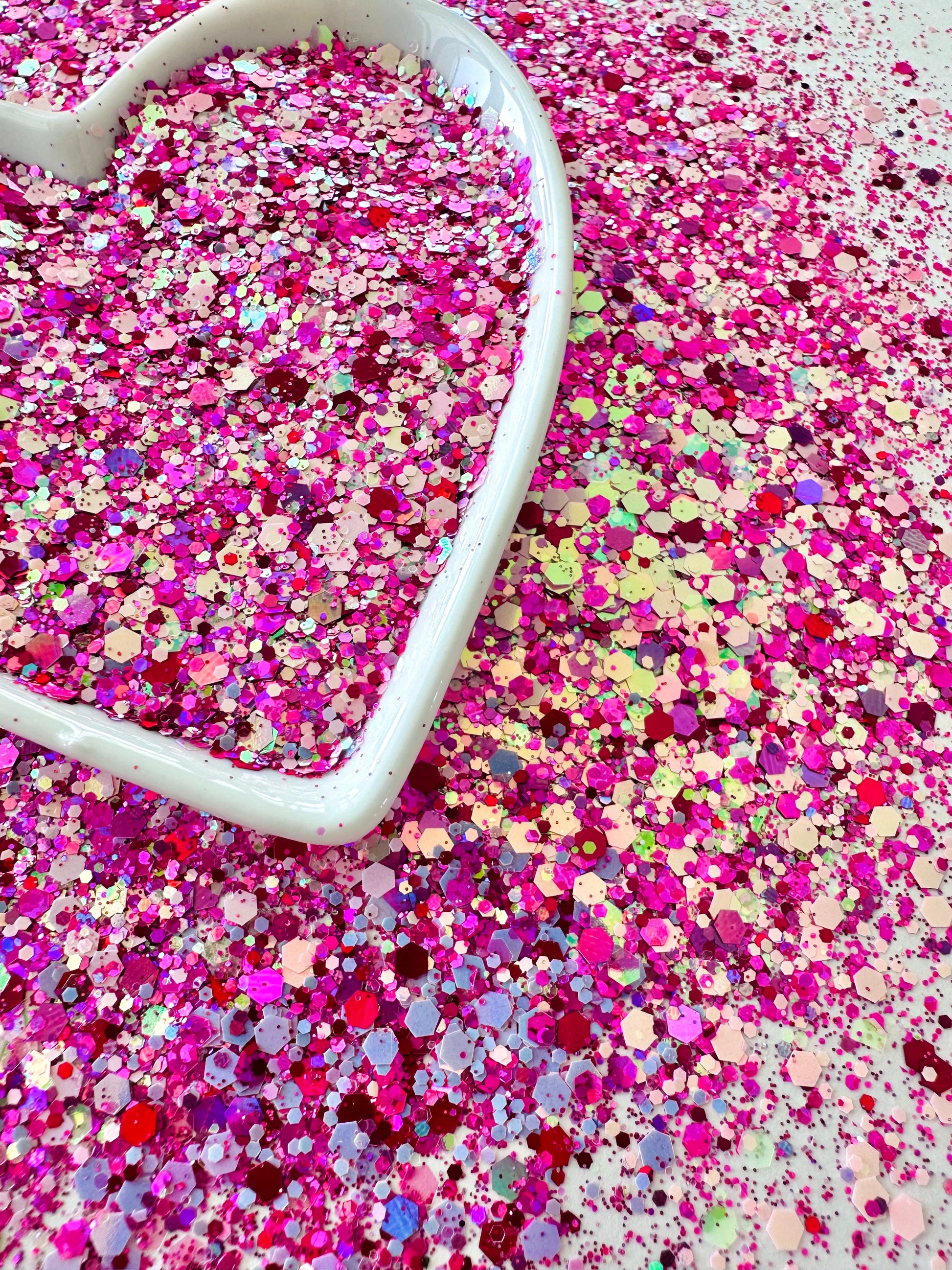 A mix of pinks, magenta, a little holographic and a little opal!