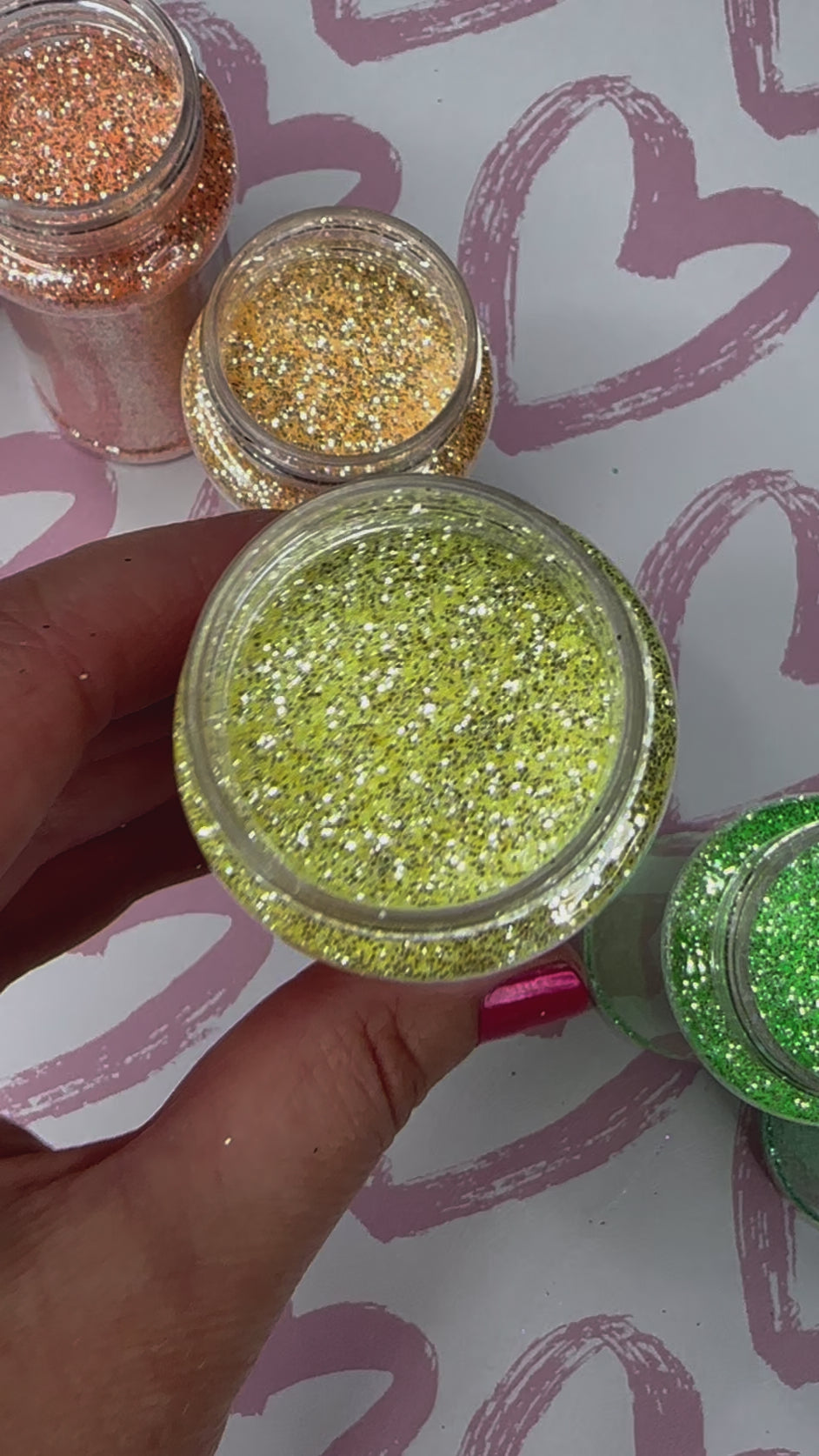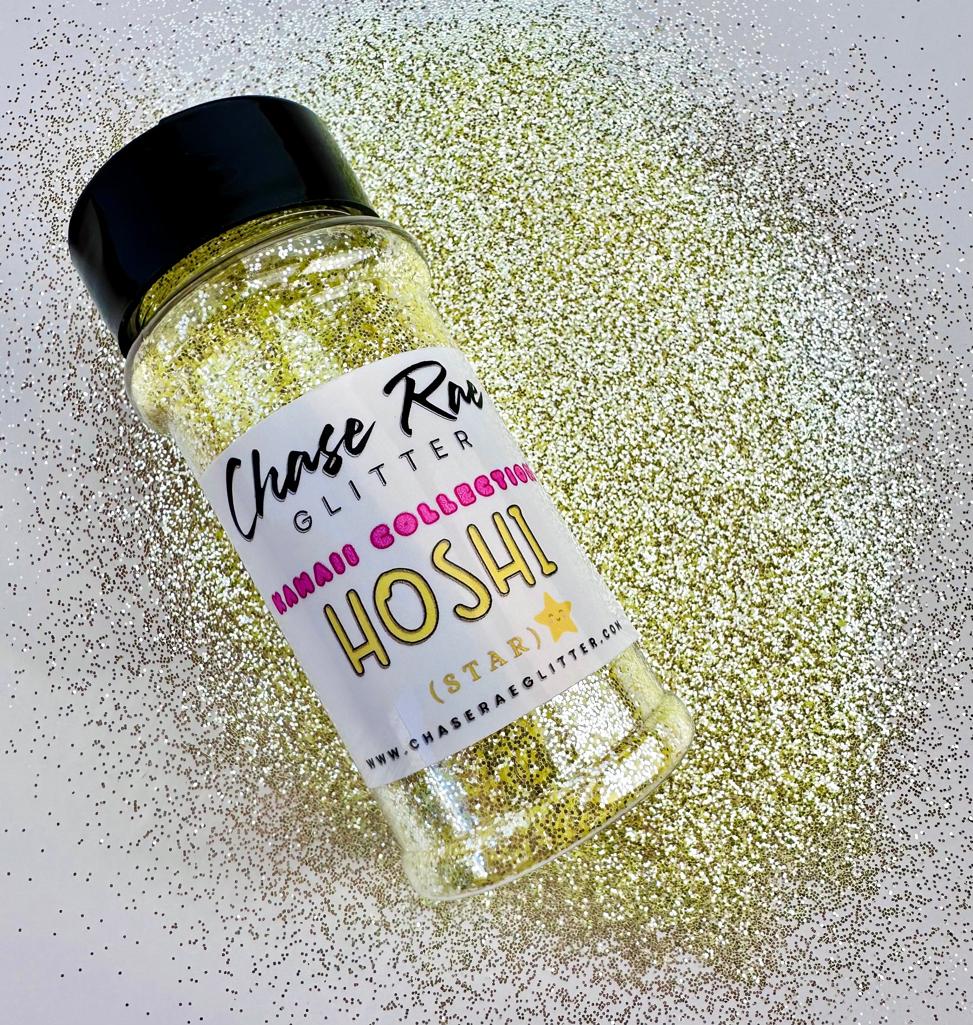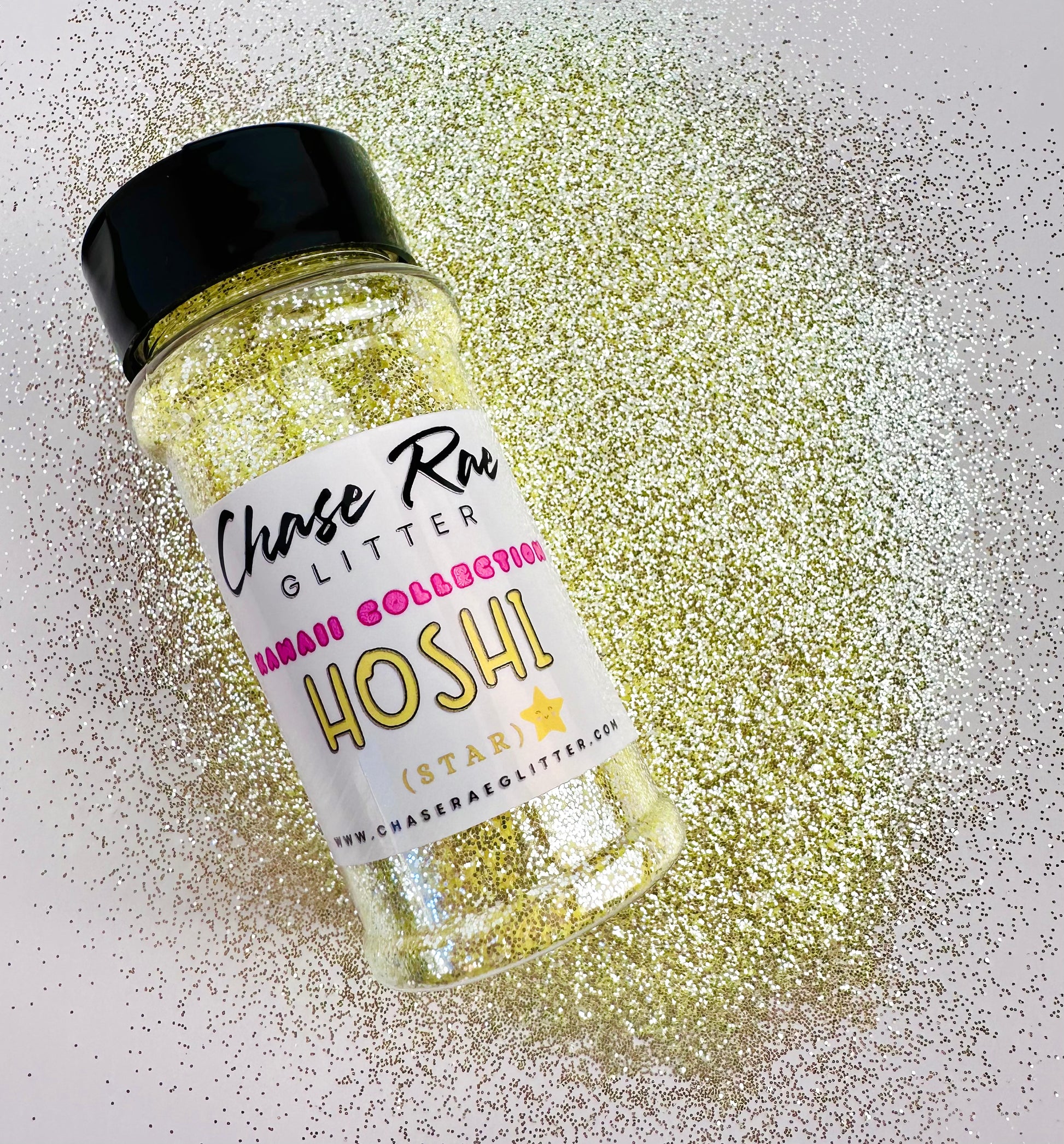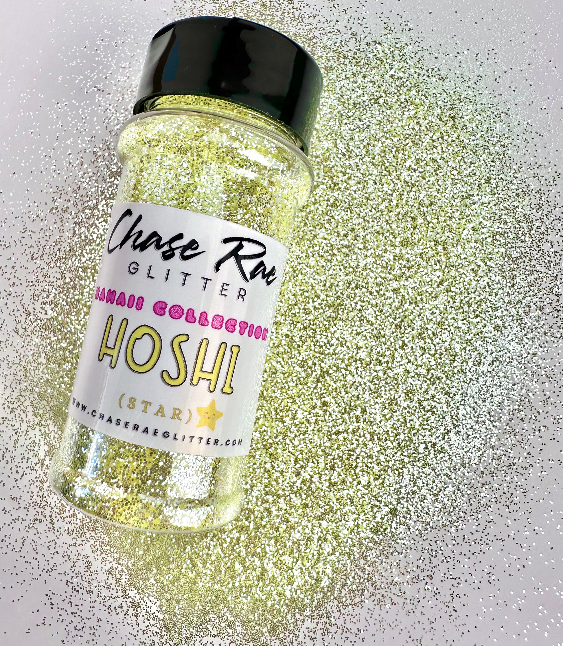 Hoshi is a superior, high sparkle, glitter. The cutest pastel yellow color, and sparkles like specks of diamonds. Has a mirror effect. Part of the Kawaii Collection