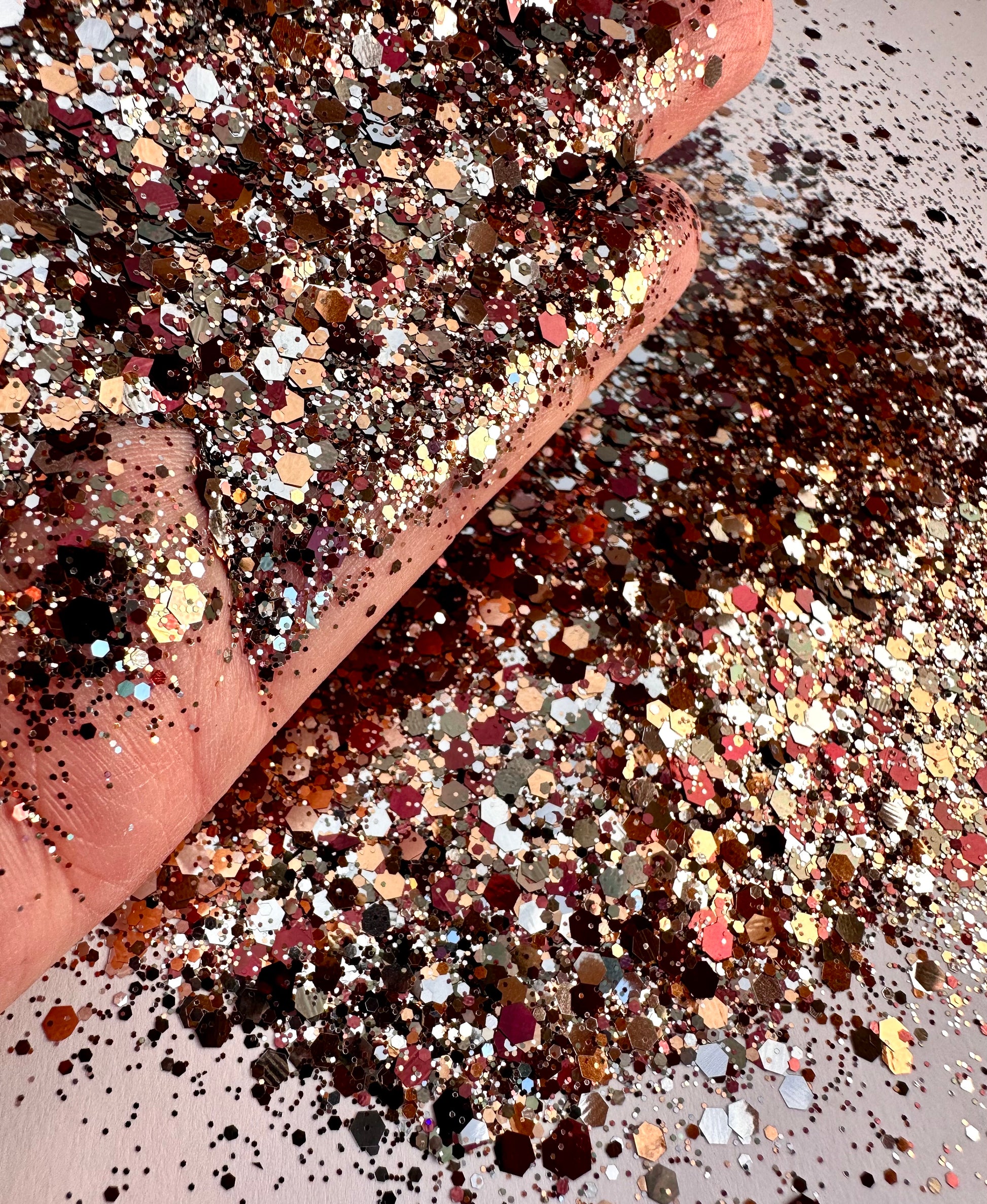 Hot Cocoa is a gorgeous chunky mix with copper, burgundy to Mahagony, and silver. Just the perfect fall mix!