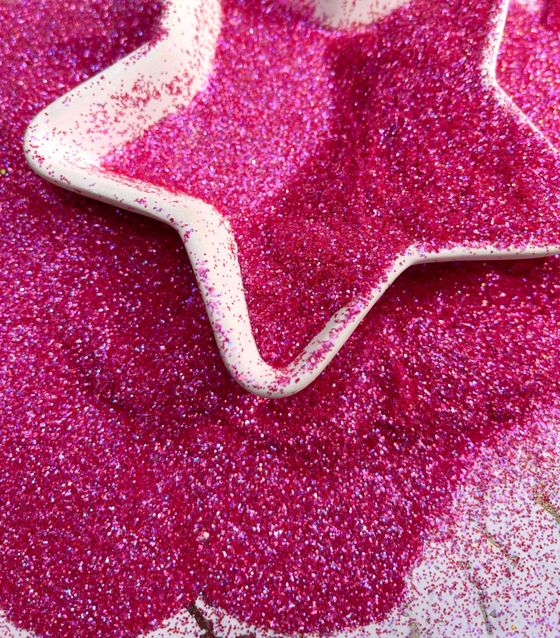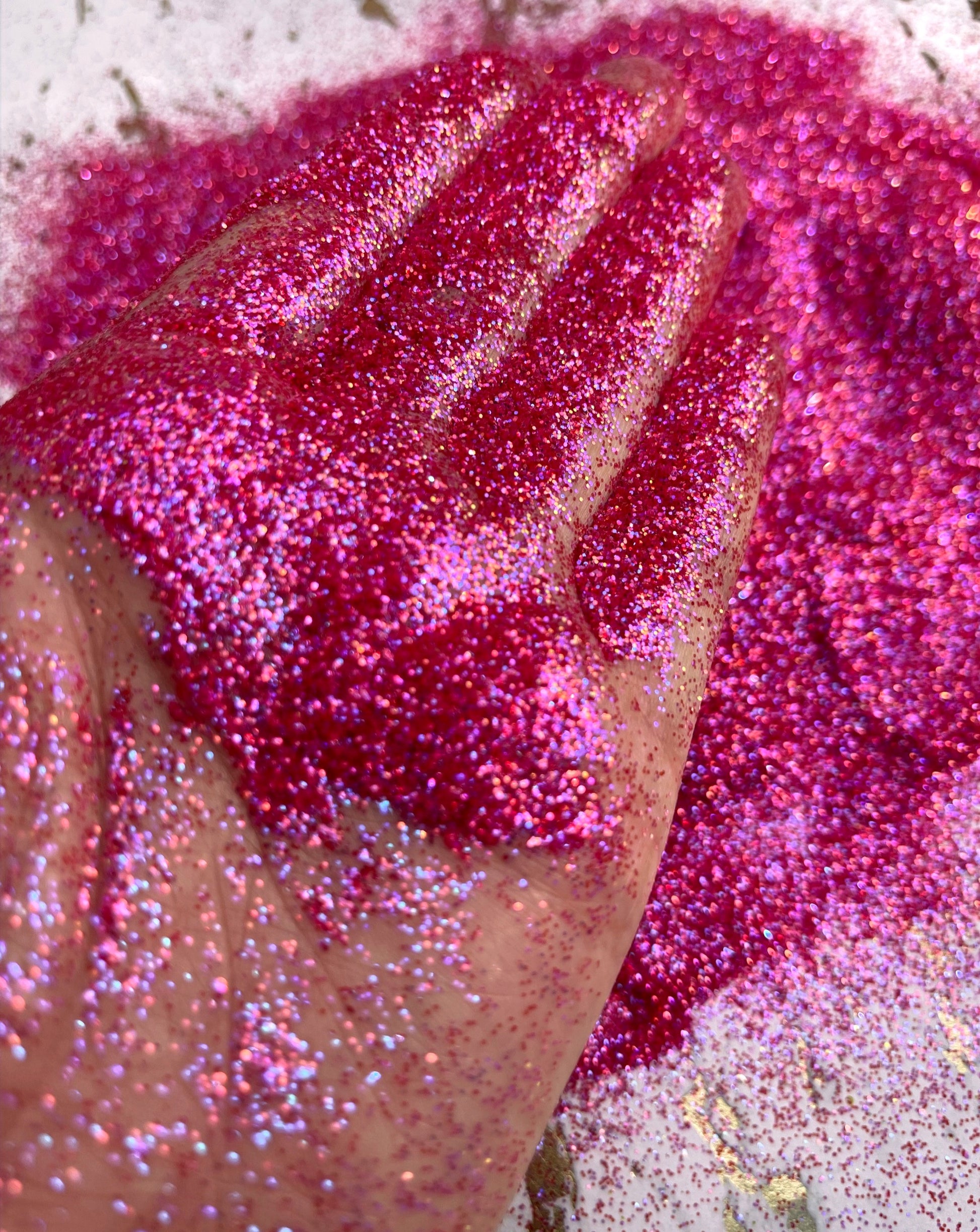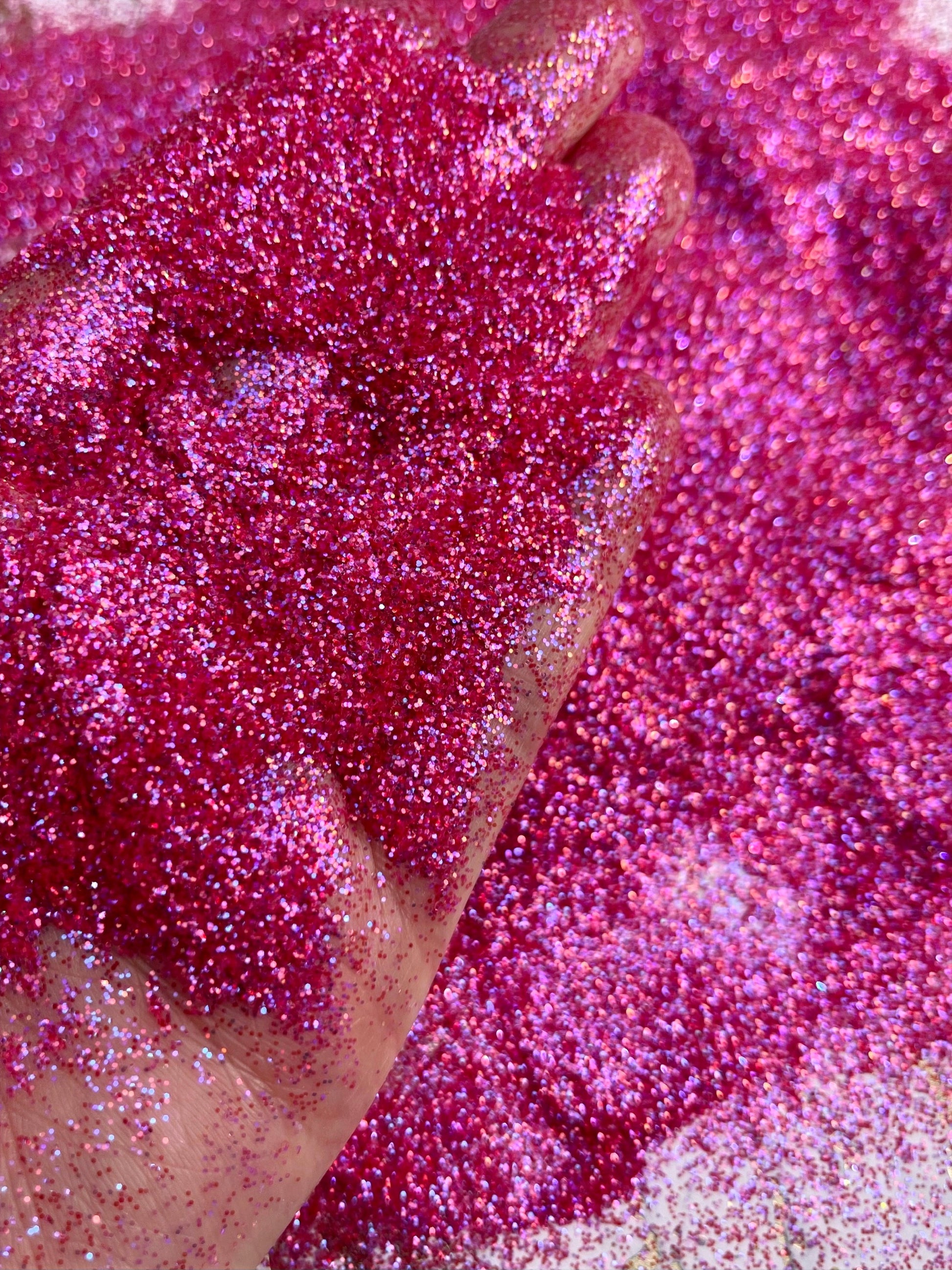 Hot Lips is a gorgeous iridescent fuchsia pink glitter. Hints of purple in the background