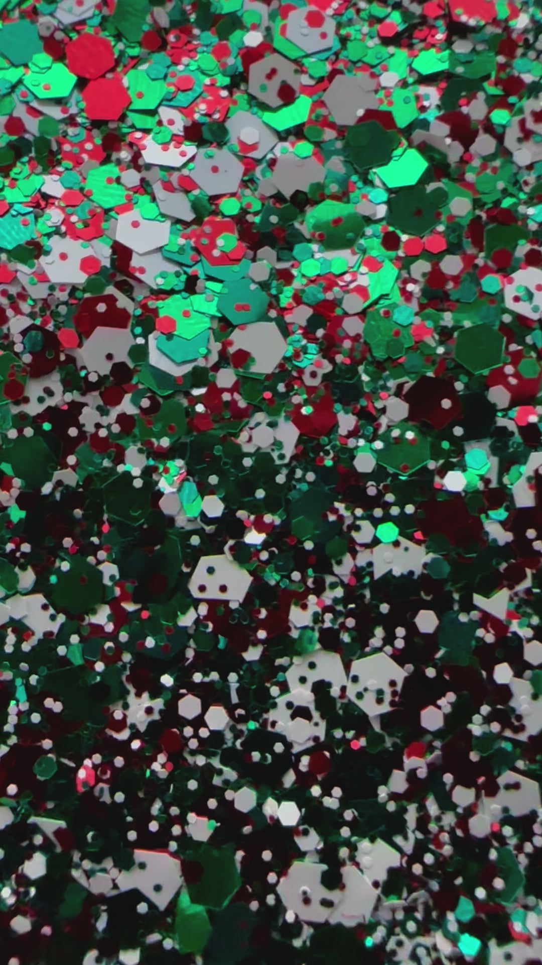 A chunky mix of solid pearl white with red, and green metallic pieces.