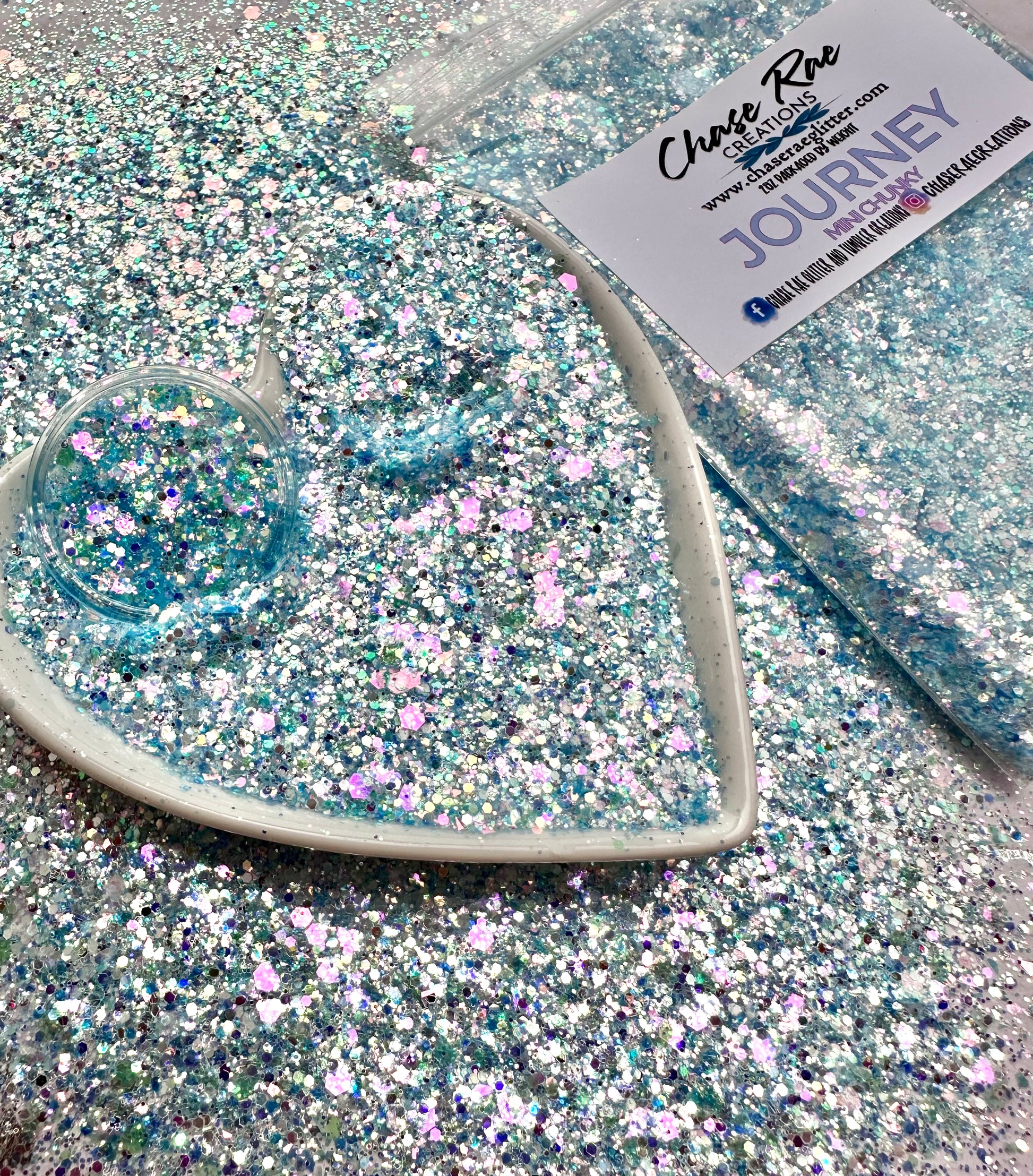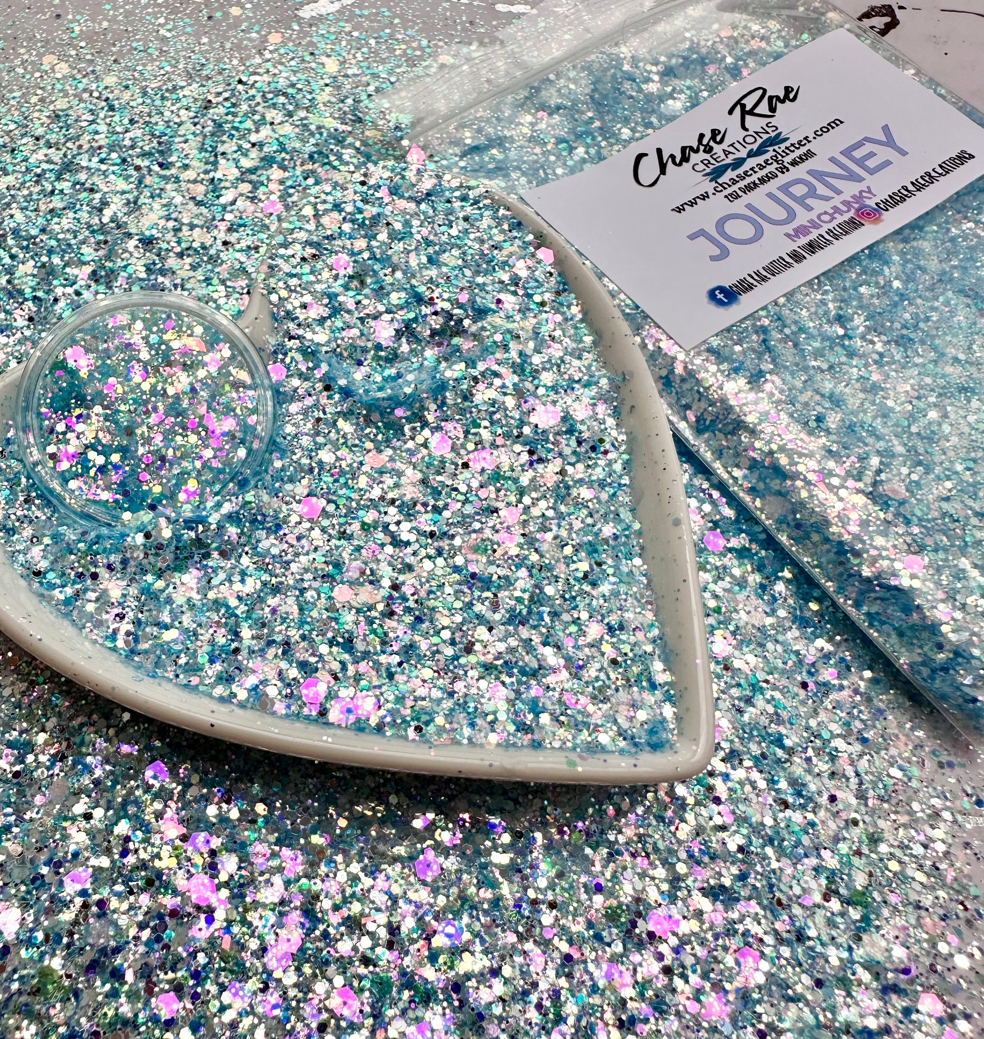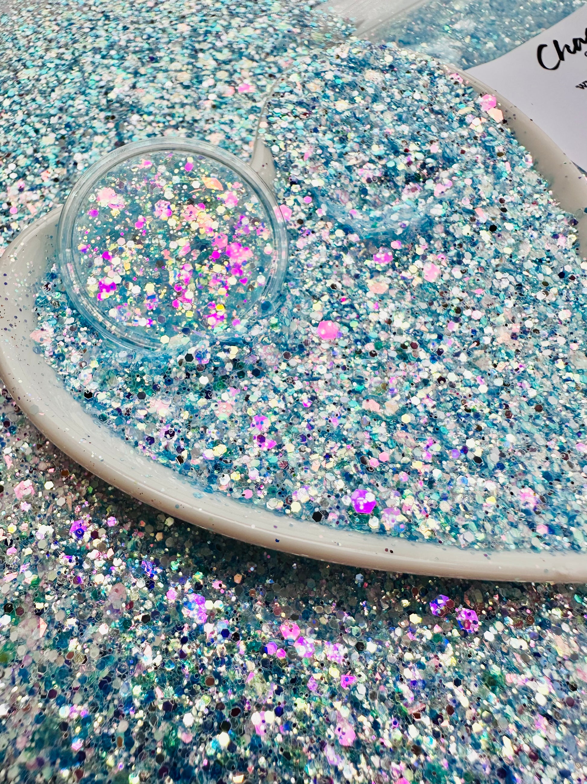 A gorgeous mini chunky mix of light blue and opals. This one also has a beautiful pink shift!