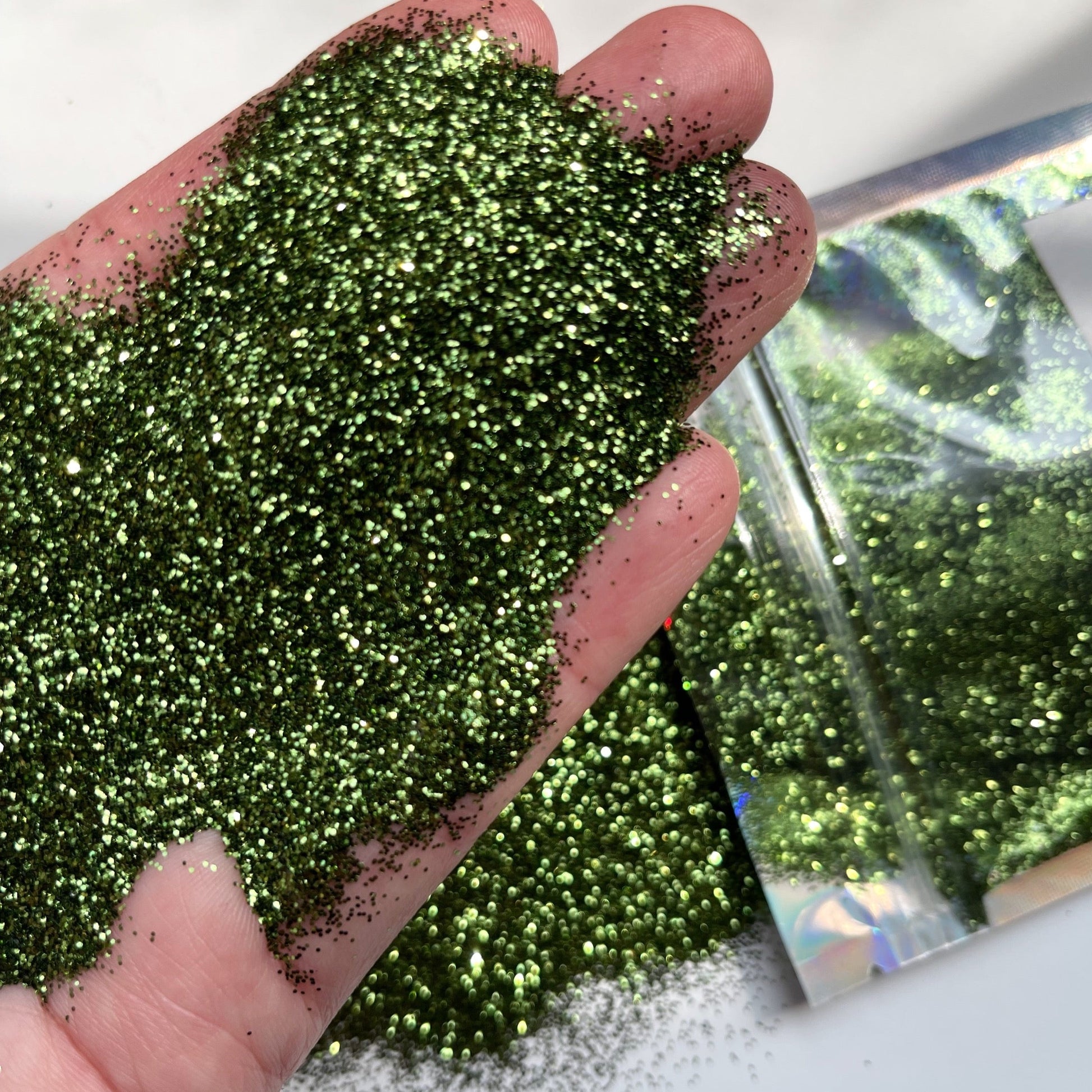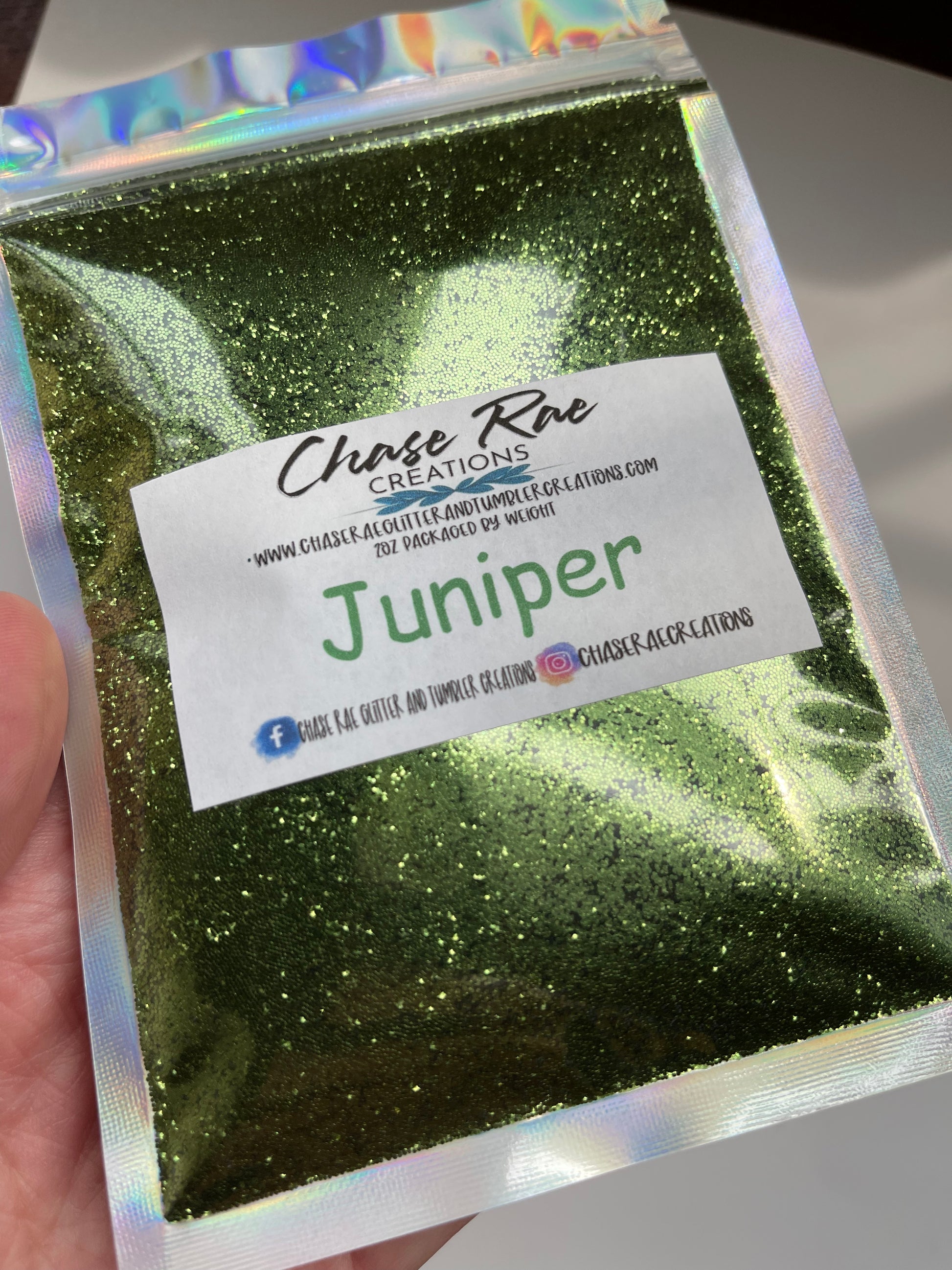 Juniper is a solid color metallic glitter. Rich, warm, forest green in color.