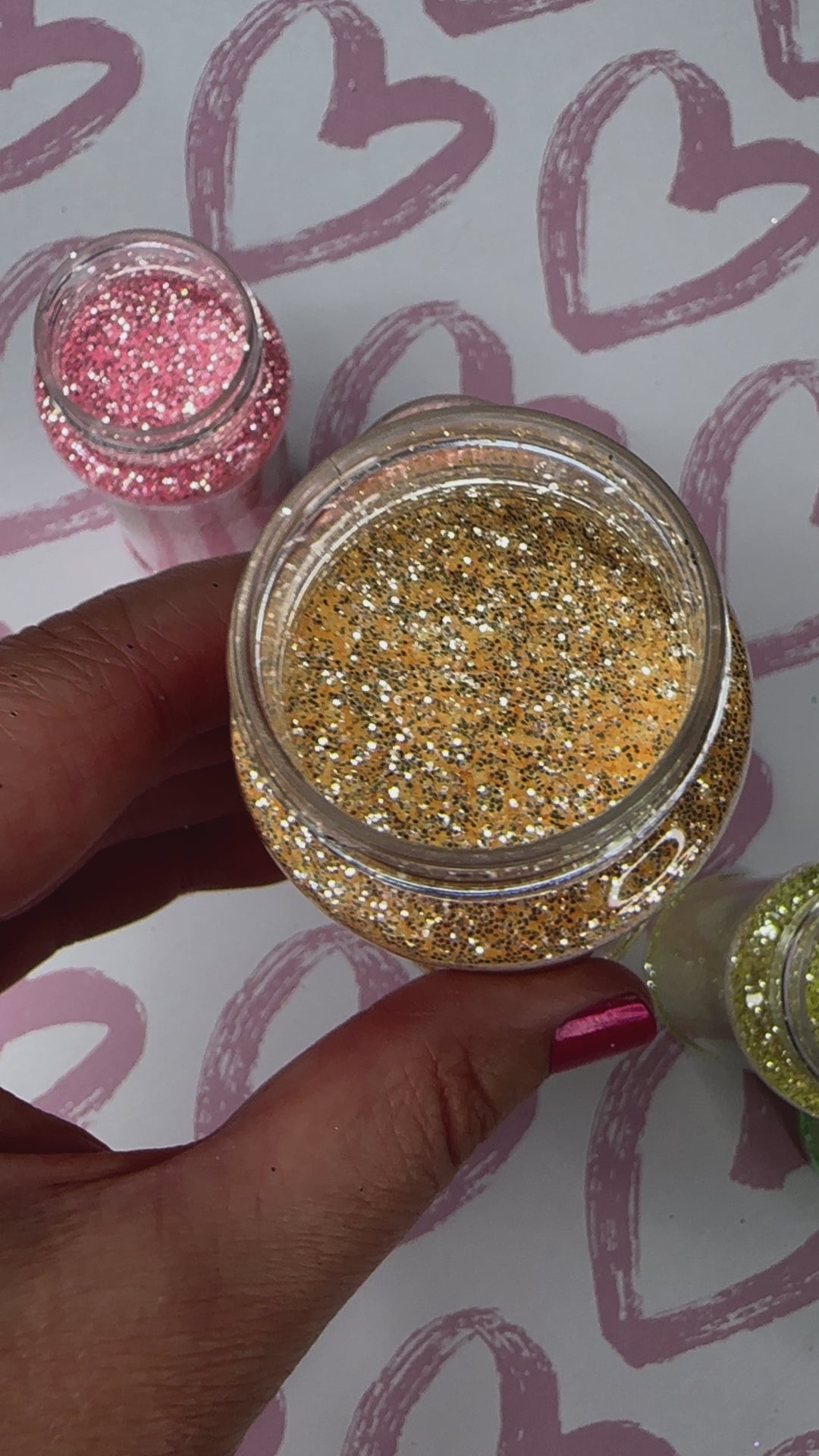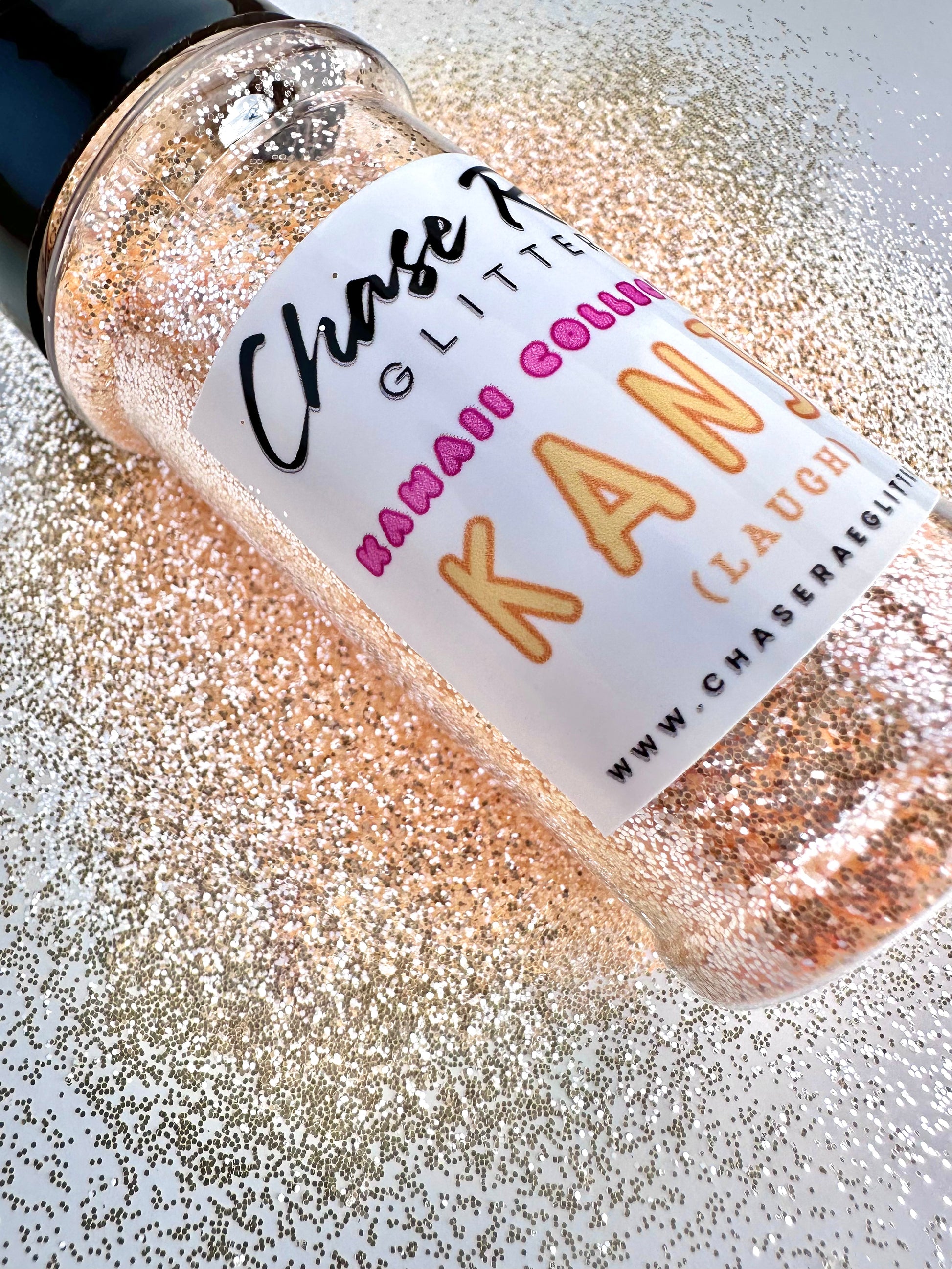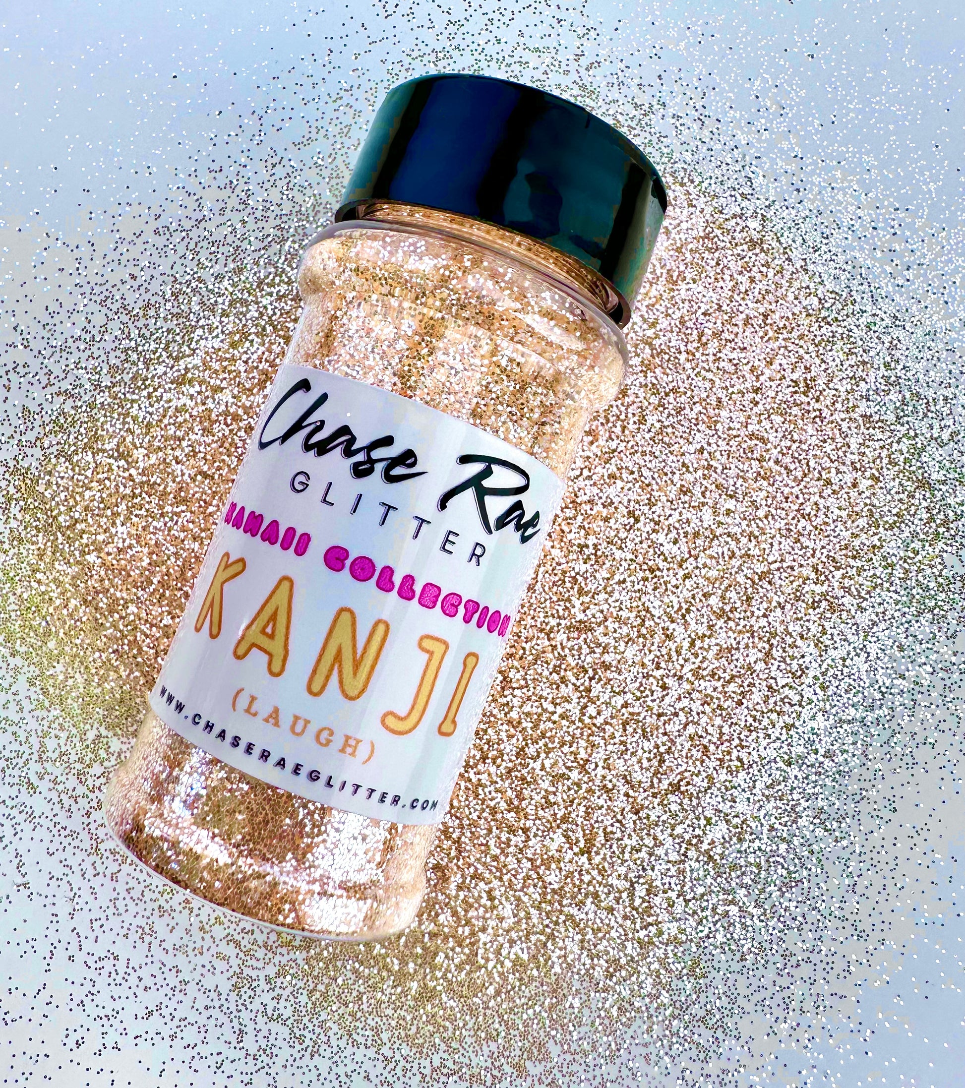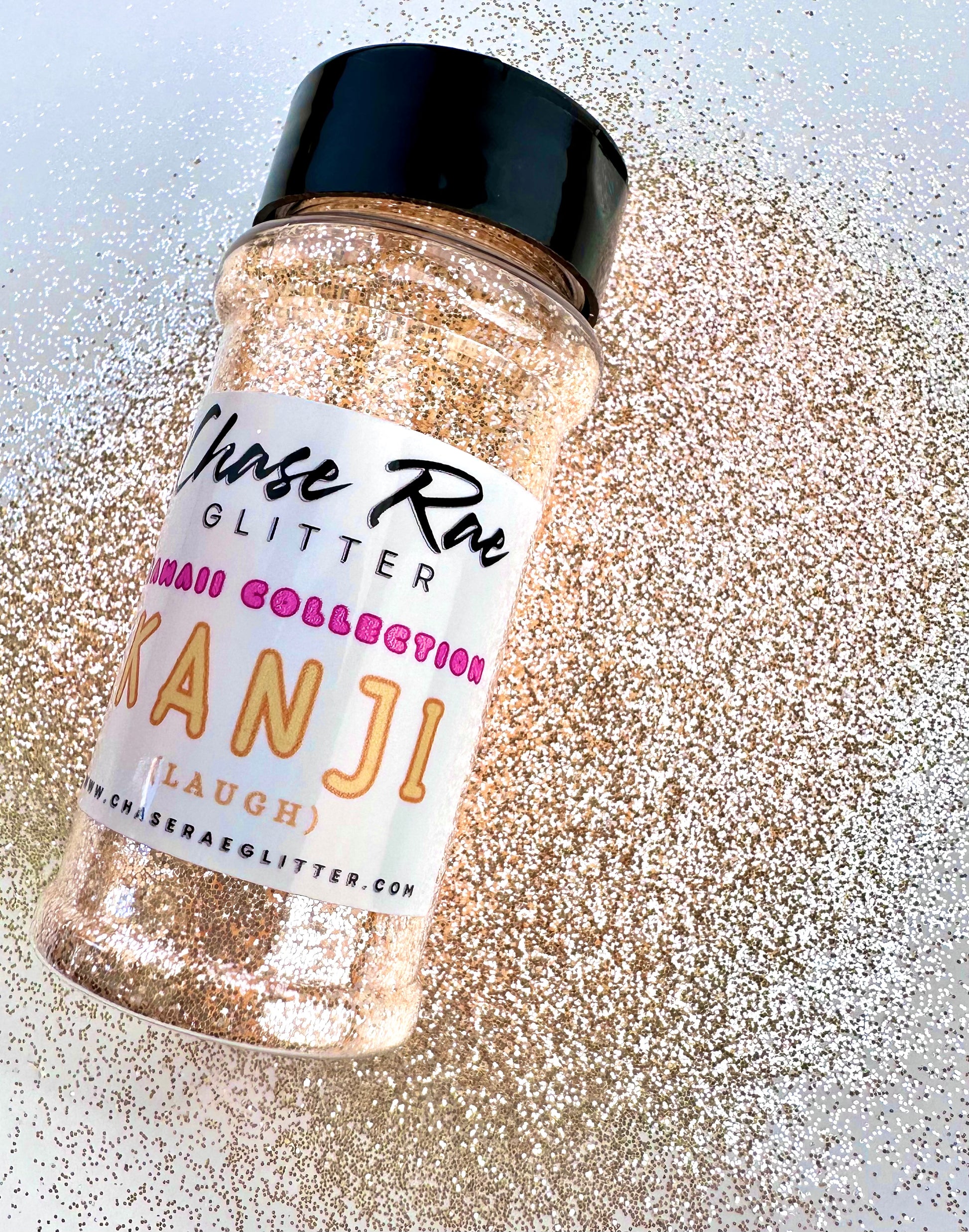 Kanji is a superior, high sparkle, glitter. The cutest pale orange color, and sparkles like specks of diamonds. Has a mirror effect. Part of the Kawaii Collection