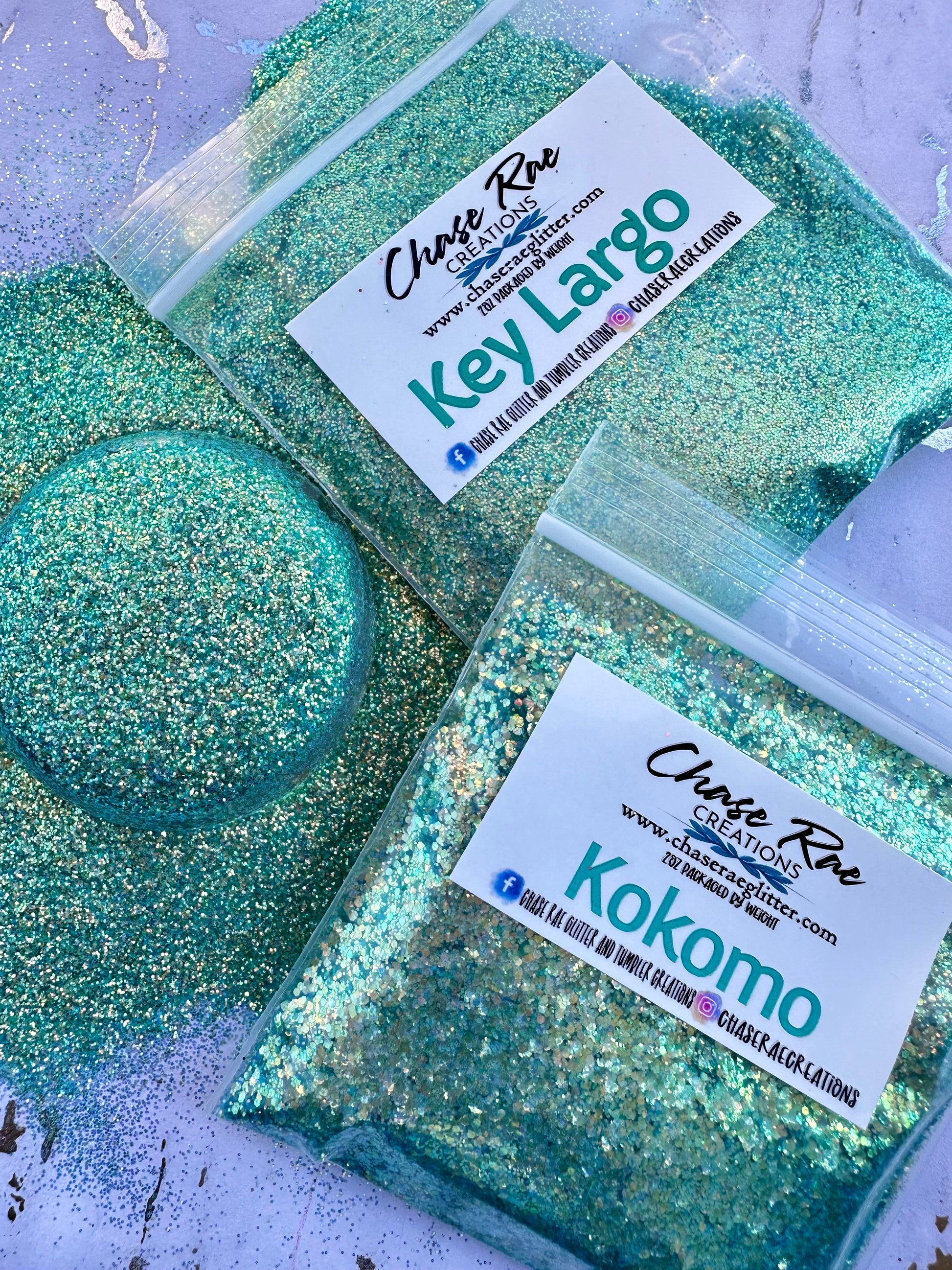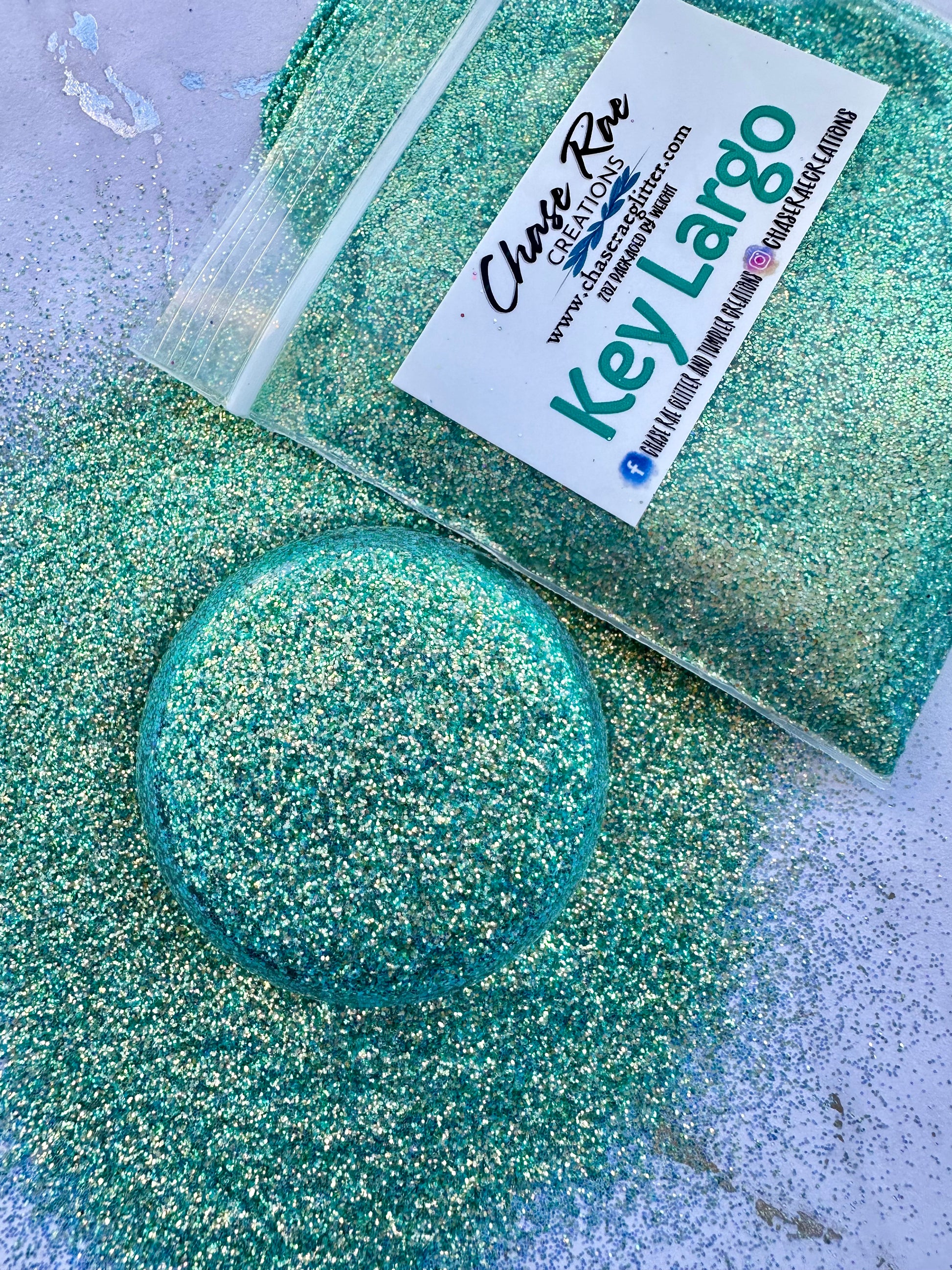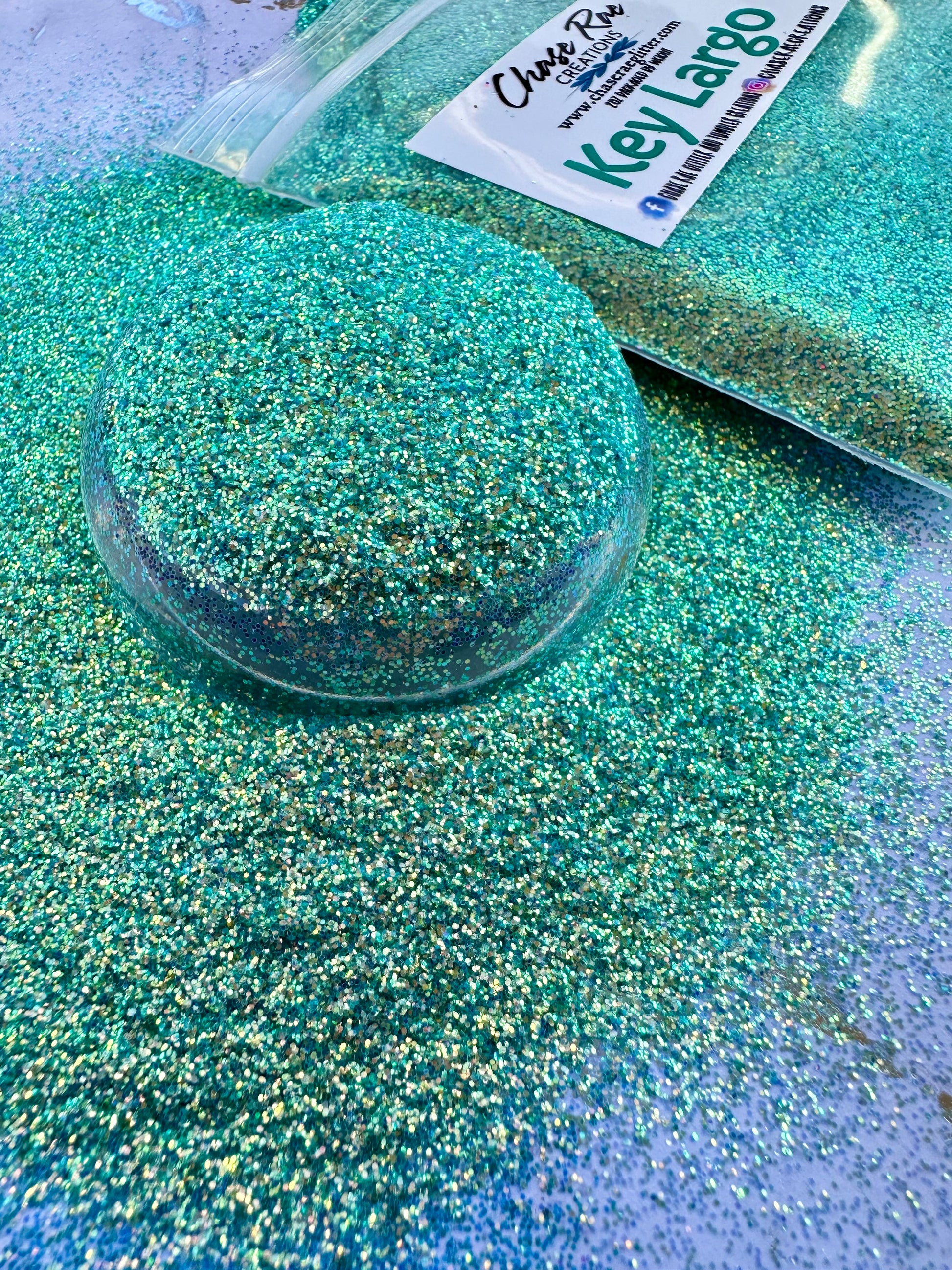 Key Largo is a green-ish blue-ish iridescent glitter. Teal