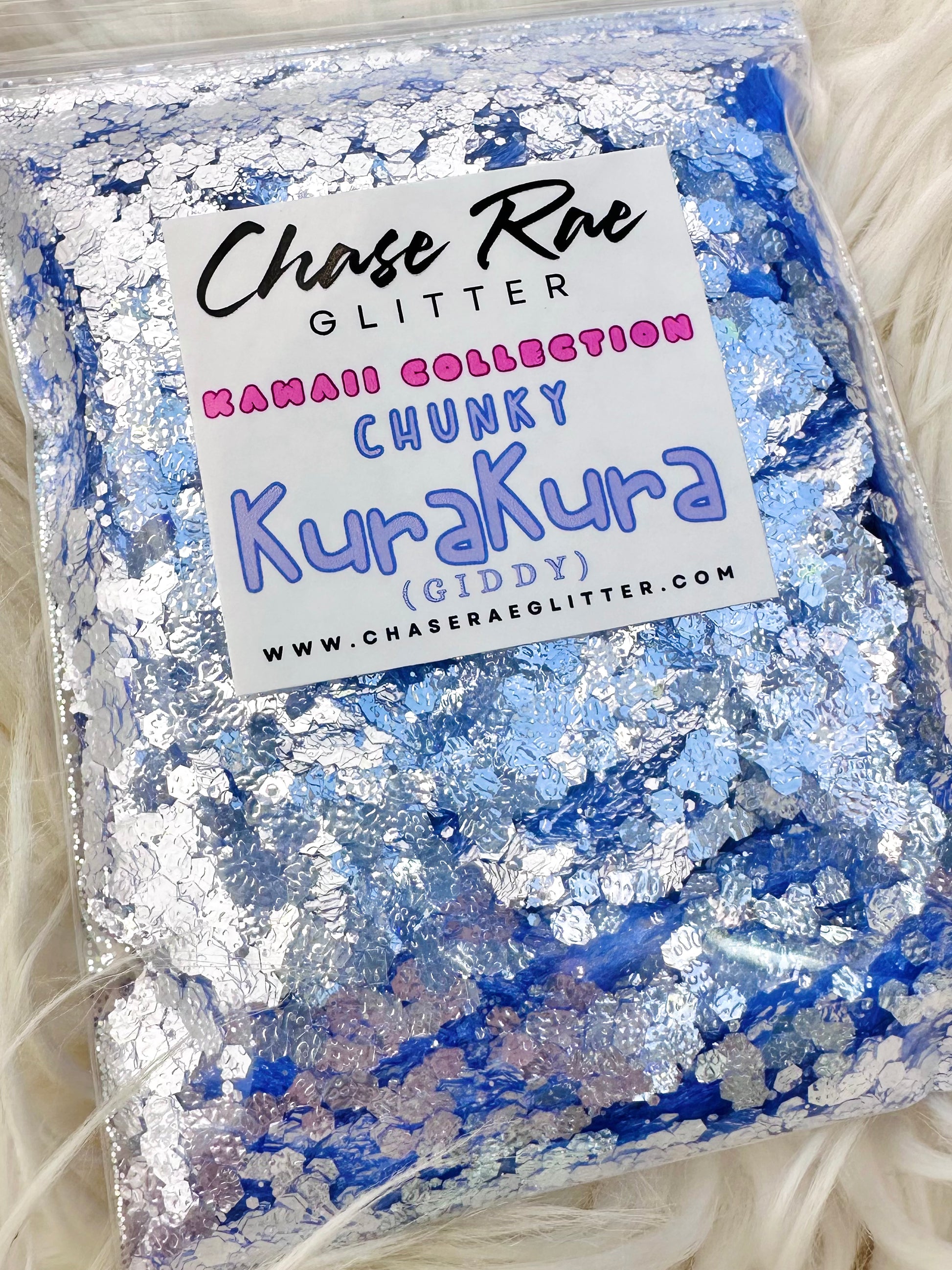 KurKura is a superior, high sparkle, glitter. Periwinkle to Lavender in color, and sparkles like specks of diamonds. Has a mirror effect. Pastel purple. Part of the Kawaii Collection