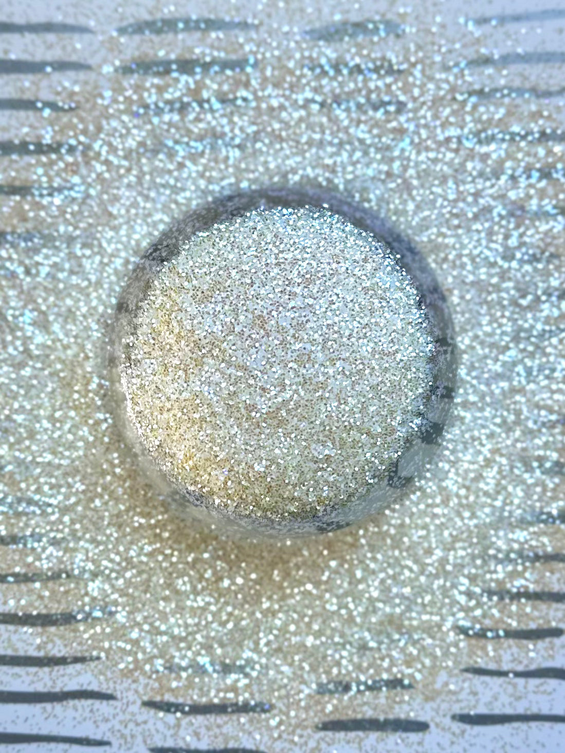 Lace is a gorgeous off white, cream colored glitter. Has a beautiful blue/purple shift on a darker base.