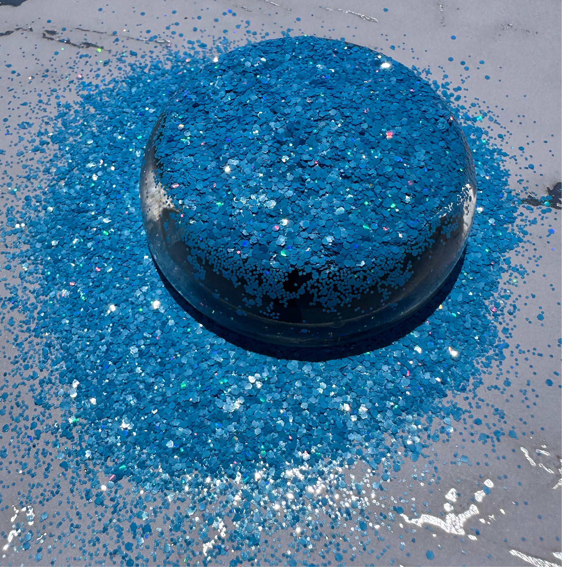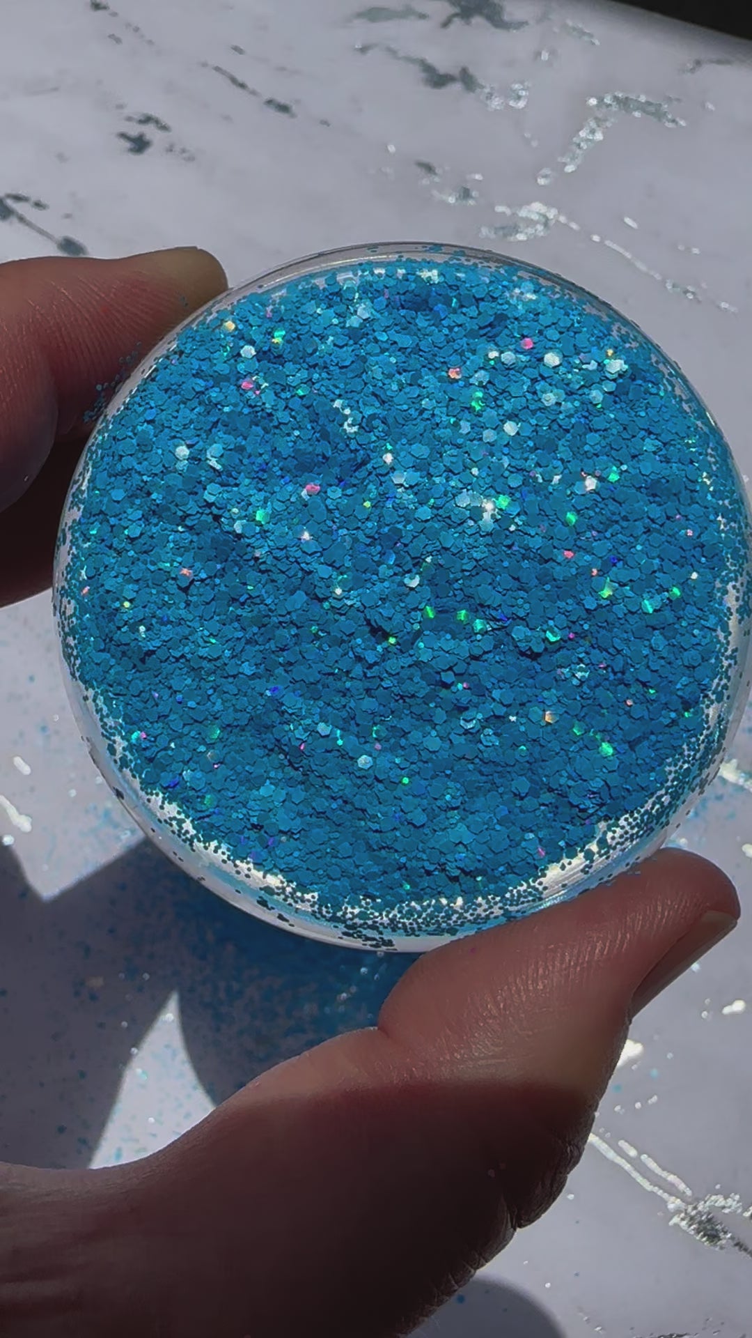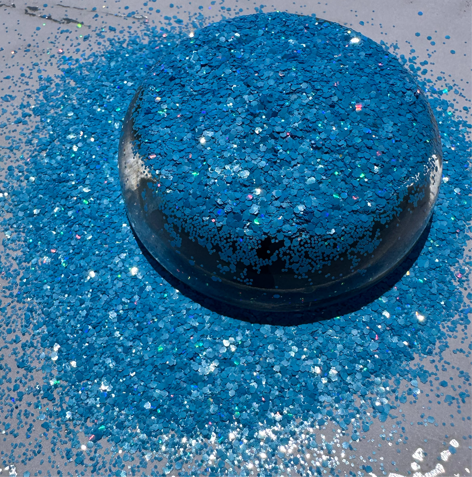Lazy River is a beautiful, holographic pearl glitter. Reminds me of a pool water blue!
